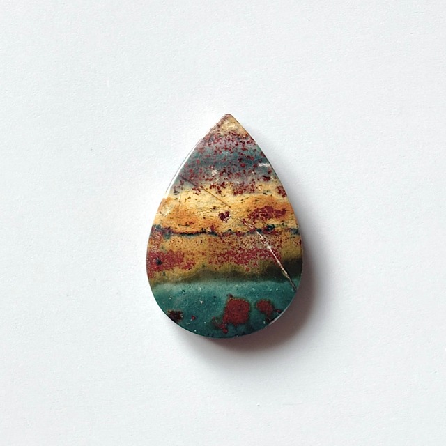 円形のパターンと美しい滲みのあるインペリアルジャスパーです。 変則的な弧やスジ状のかすれが、落ちてしまった花びらの質感を思わせます。 サイズ:18.0*13.1*4.4mm 産地:メキシコ 備考:背面の縁は整っていません ※ご購入後のトラブルを防ぎたいので、下記必ずご確認ください。 ・サイズや重さはおおよそになります。 ・キズやカケ、ヒビ、内包物 (インクルージョン) は画像や説明文でお知らせしていますが、微細なものは見落としがあるかもしれません。 ・非加熱、ノンオイルなど、処理が施されていないものは別途記載しています。仕入先、鑑別機関からの情報を記載しており、全てを保証できないことをご理解くださいませ。 ・カットが歪なものが多数ありますので画像にてご確認くださいませ。 ・商品名は仕入れ先の流通名をもとにしており、誤解を招くことがありそうな場合は説明で補足します。 ・お客さまの照明、光源の角度、お使いのモニター環境により、印象が異なる場合があります。 ※その他のご留意事項はショップ情報をご確認ください。