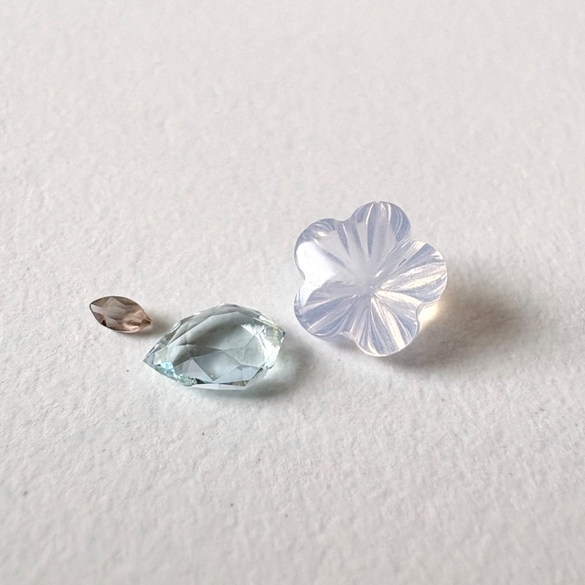 白とアイスブルーの爽やかな色合いに、シャリっとした質感のスミソナイトです。 扇のように広がる繊維状の結晶が表面に見られ、やや透け感もありますが全体的にミルキーで甘そうです。 動画:下の方にあります サイズ:8.1×6×3.4 mm 重さ:1.85 ct 産地:メキシコ 備考:最後の画像の宝石クリップ付き ※※認識の齟齬やご購入後のトラブルを防ぎたいので、下記必ずご確認の上、ご購入くださいませ※※ ・キズやカケ、ヒビ、内包物 (インクルージョン) は画像や説明文でお知らせしていますが、微細なものは見落としがあったり、画像にはっきり写らないかもしれません。ご不明点ありましたらご連絡くださいませ。 ・安価なものはカットや研磨が甘いです。画像にてご確認くださいませ。 ・正面から見た際に致命的な瑕疵があるものは訳あり品としてお出ししてます。天然石特有の仕方ない凹み、ヒビで許容範囲と判断したものは商品説明や画像にてお知らせし、通常出品しています。 ・石への処理については仕入先や鑑別機関からの情報を記載しておりますが、全てを保証できないことをご理解くださいませ。石の価値を左右する処理(非加熱、ノンオイル、スタビライズド、透明材等)は記載しており、一般的にされている処理に関しては省いております。 ・商品名は仕入先の流通名をもとにしており、誤解を招くことがありそうな場合は説明文にて補足しています。 ・お客さまの照明、光源の角度、お使いのモニター環境により、印象が異なる場合があります。 ・サイズや重さはおおよそです。 ※この他、撮影方法、配送や包装、販売についてのご留意事項はショップ情報に記載していますので、お手数ですがそちらにてご確認ください。