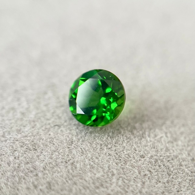 クロムを多く含むダイオプサイト。グリーン以外の何ものでもない潔い発色です。 このほかの緑の石に全く引けを取らない濃く澄んだ色彩がお手頃価格で楽しめます。 サイズ:φ4.5×2.9 mm 重さ:0.4 ct 産地:ロシア ※ご購入後のトラブルを防ぎたいので、下記必ずご確認ください。 ・サイズや重さはおおよそになります。 ・キズやカケ、ヒビ、内包物 (インクルージョン) など、微細なものは見落としがあるかもしれません。天然石の特性としてご了承くださいませ。 ・非加熱、ノンオイルなど、処理が施されていないものは別途記載しています。仕入先や鑑別機関からの情報を記載していますが、全てを保証できないことをご理解くださいませ。 ・お客さまの照明、光源の角度、お使いのモニター環境により、印象が異なる場合があります。 ※その他ご留意事項はショップ情報をご確認ください。