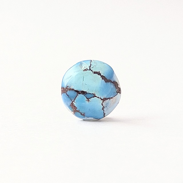 マットなスカイブルーにローズカットが施されてキラっと光るターコイズです。 スパイダー模様もしっかりとあるターコイズらしい一石です。 サイズ:Φ12.0mm × 5.5mm 重さ:5.15ct 産地:フーベイ(湖北省) ※ご購入後のトラブルを防ぎたいので、下記必ずご確認ください。 ・サイズや重さはおおよそになります。 ・キズやカケ、ヒビ、内包物 (インクルージョン) など、微細なものは見落としがあるかもしれません。天然石の特性としてご了承くださいませ。 ・発掘後に色味や透明度を改善するための処理(加熱・オイル含浸・照射など)が施されていることがあります。仕入先や鑑別機関からの情報を記載していますが、全てを保証できないことをご理解くださいませ。 ・お客さまの照明、光源の角度、お使いのモニター環境により、印象が異なる場合があります。 ※その他ご留意事項はショップ情報をご確認ください。