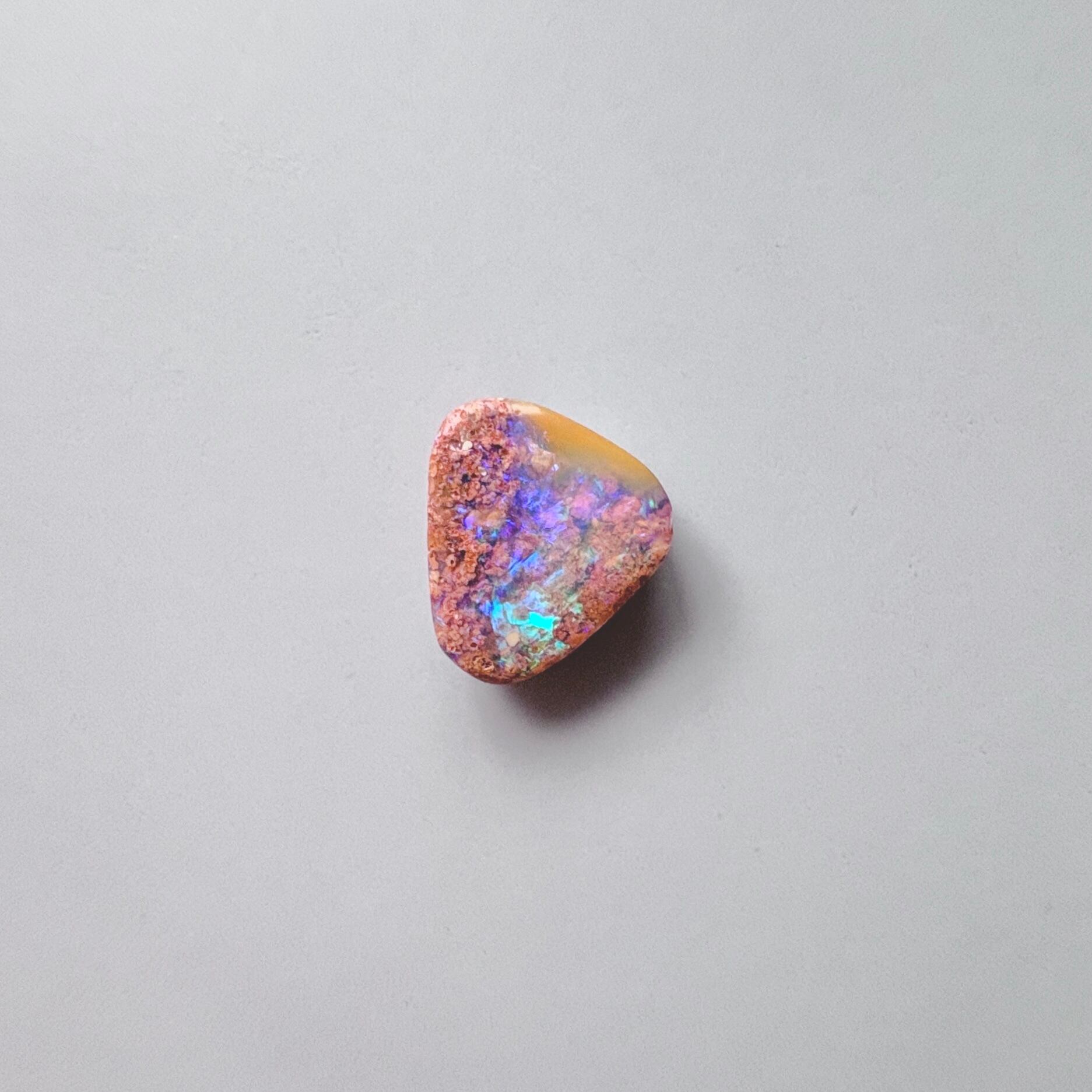 管状の母岩の隙間に形成されたオパールです。透明感と厚みのあるオパールと砂岩で構成されているものは、遊色効果の海を切りとったような景色が見られます。