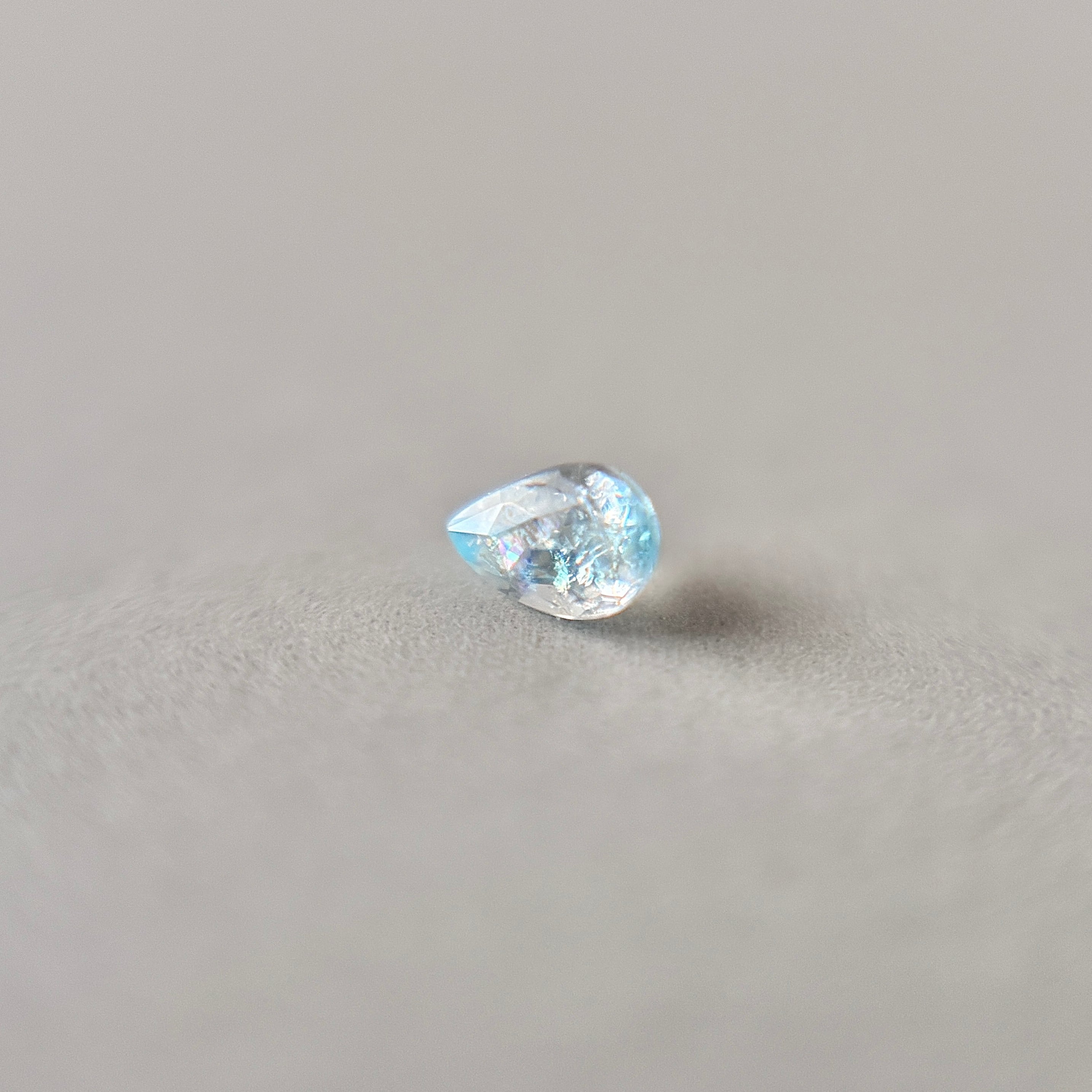 先端とお尻には軽やかな水色。気泡の入った氷のように光が散乱する中央には虹も少し見え、ファンシーな色合いです。