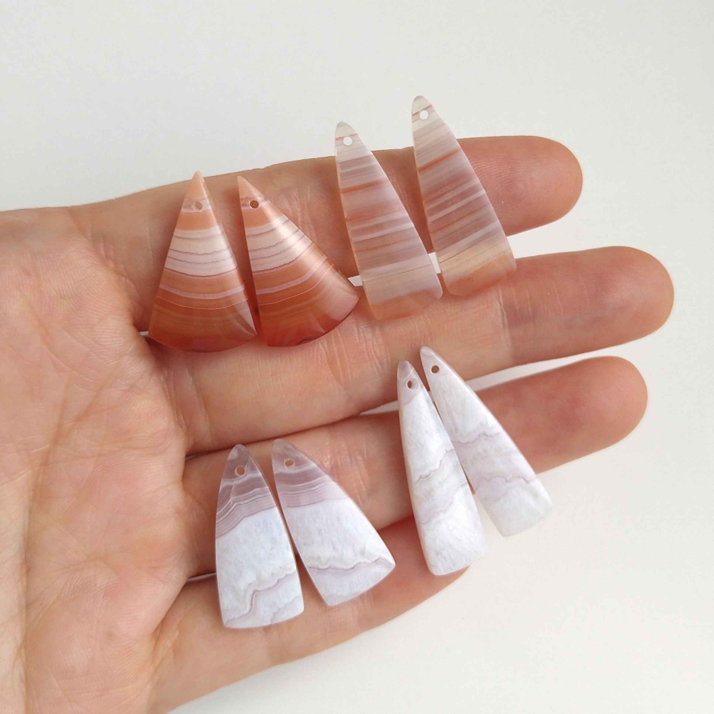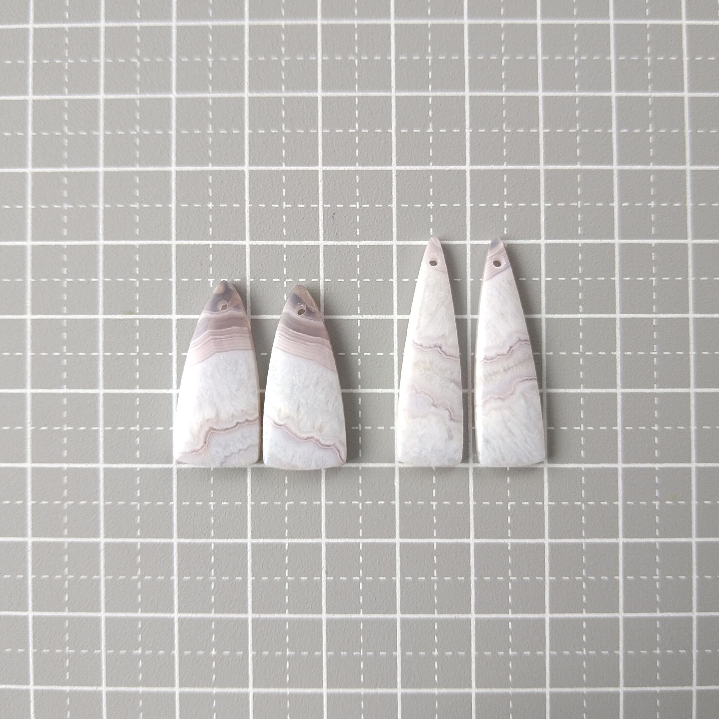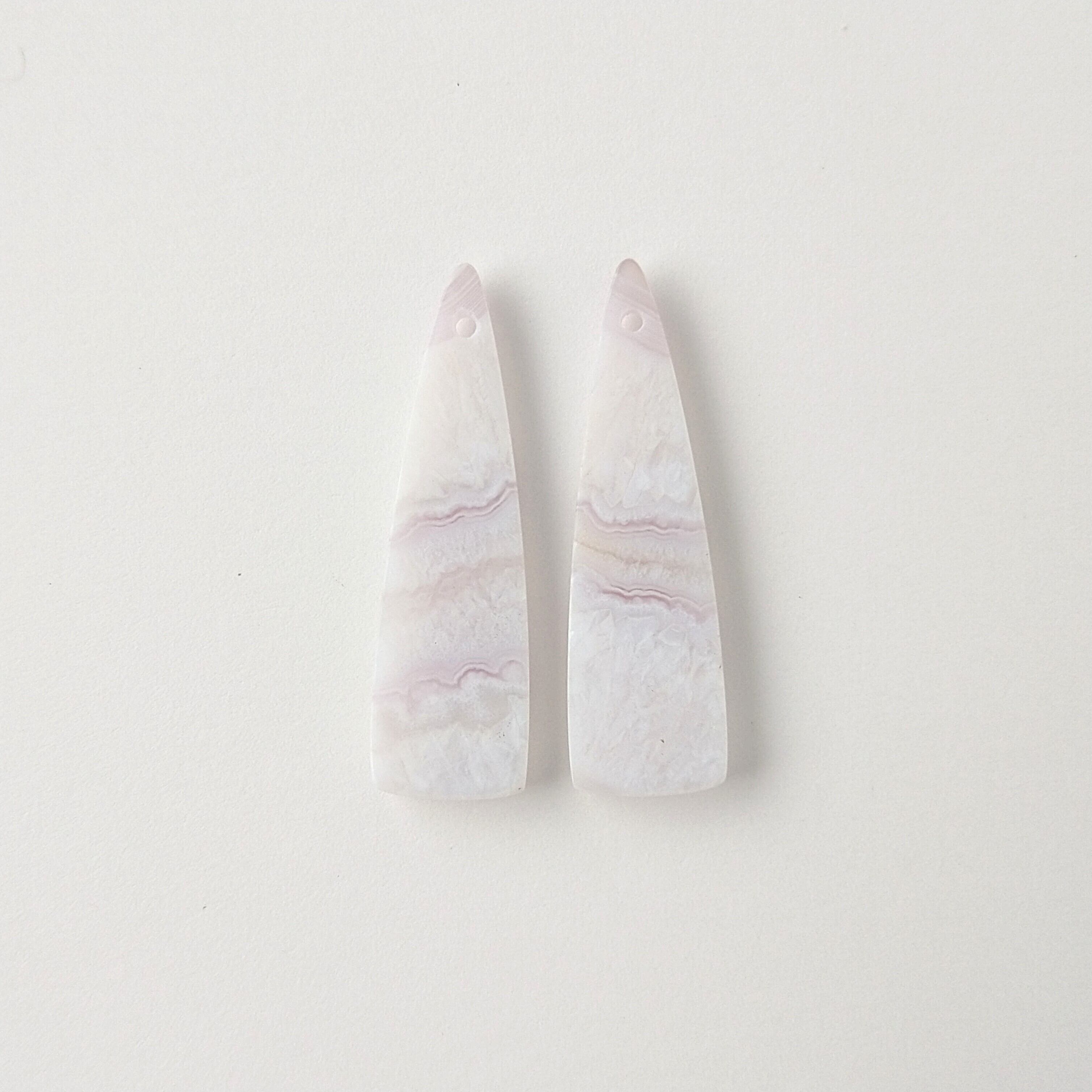 淡い紫と白の繊細な縞模様からなるアゲート。白い結晶部分はふわふわのプルーム状になっています。