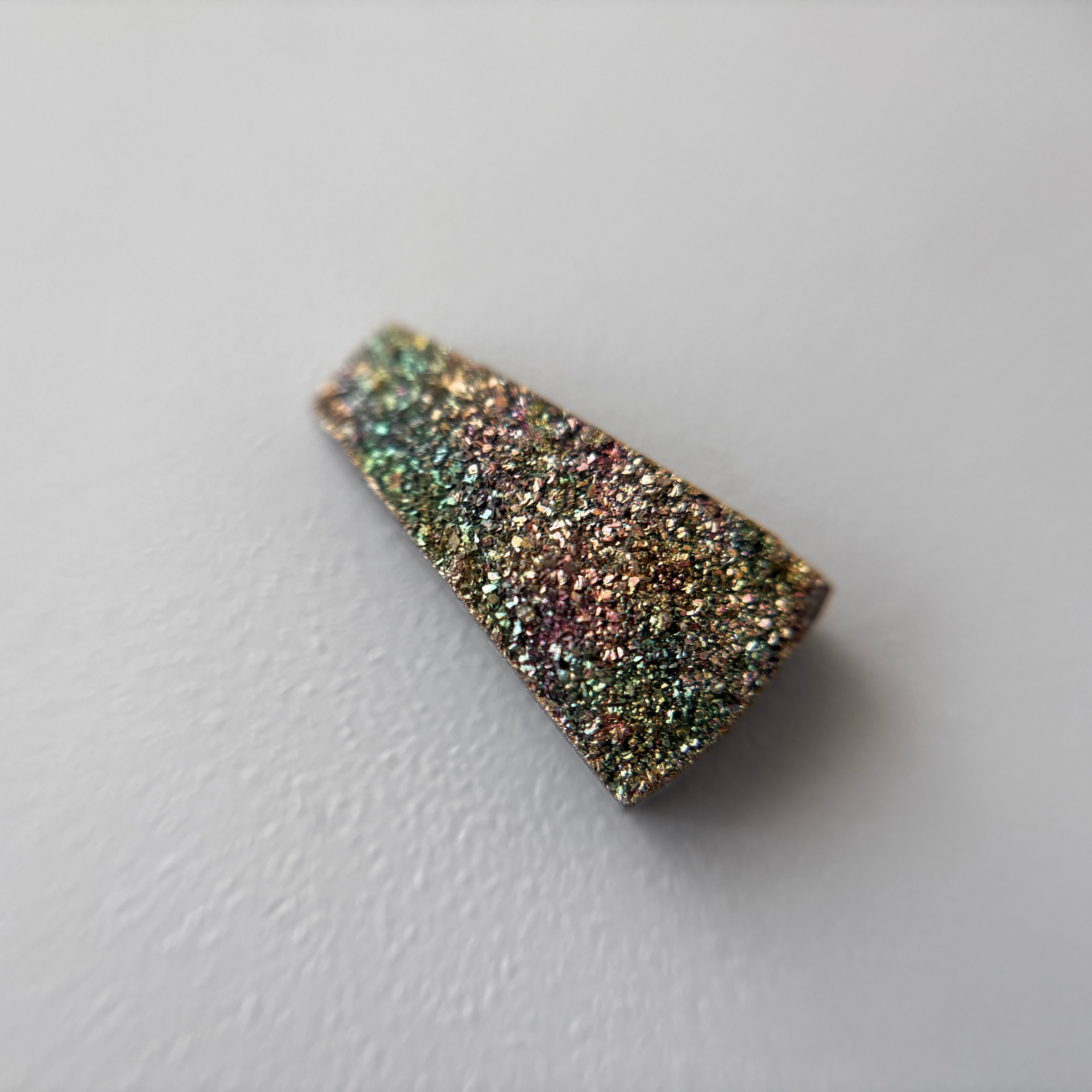 酸化によって表面に虹色の層が形成されたパイライトです。