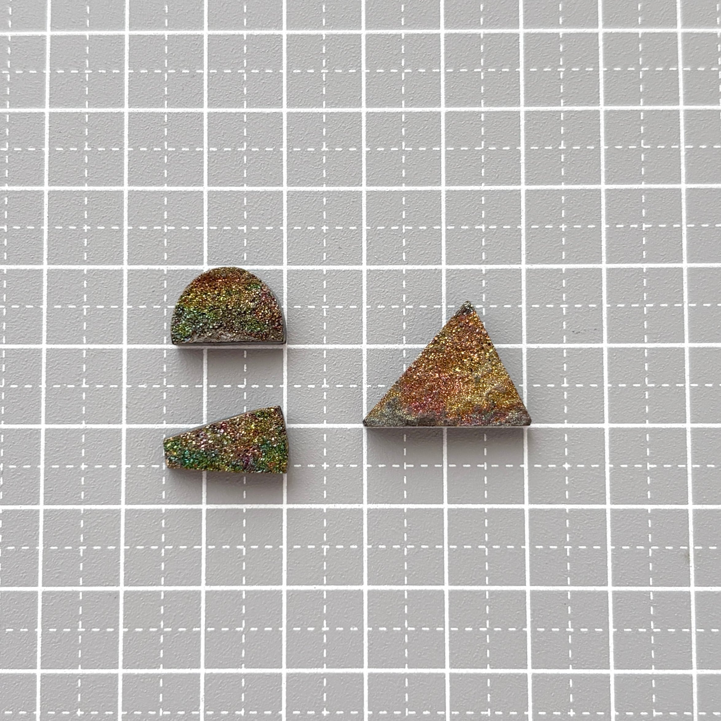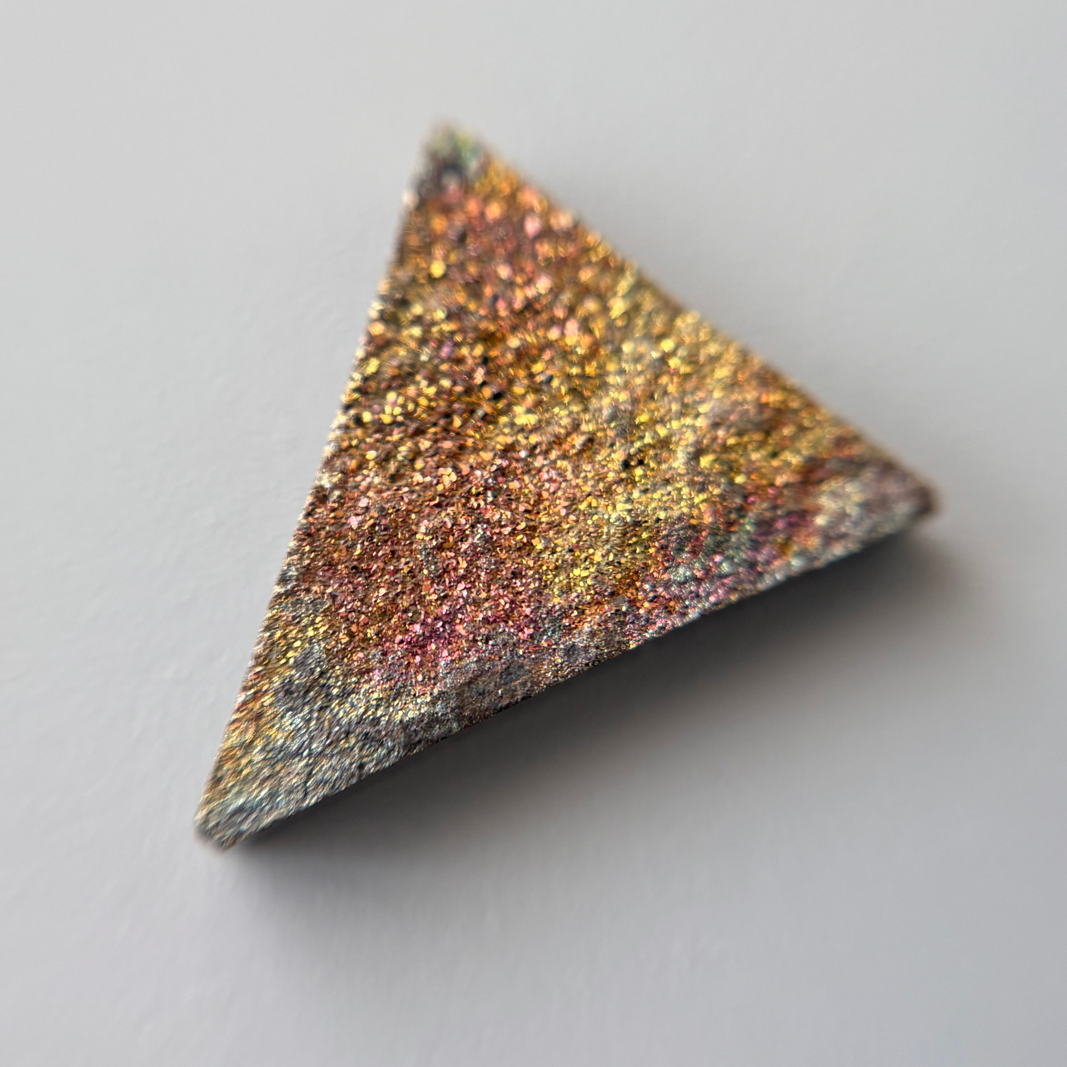 酸化によって表面に虹色の層が形成されたパイライトです。
