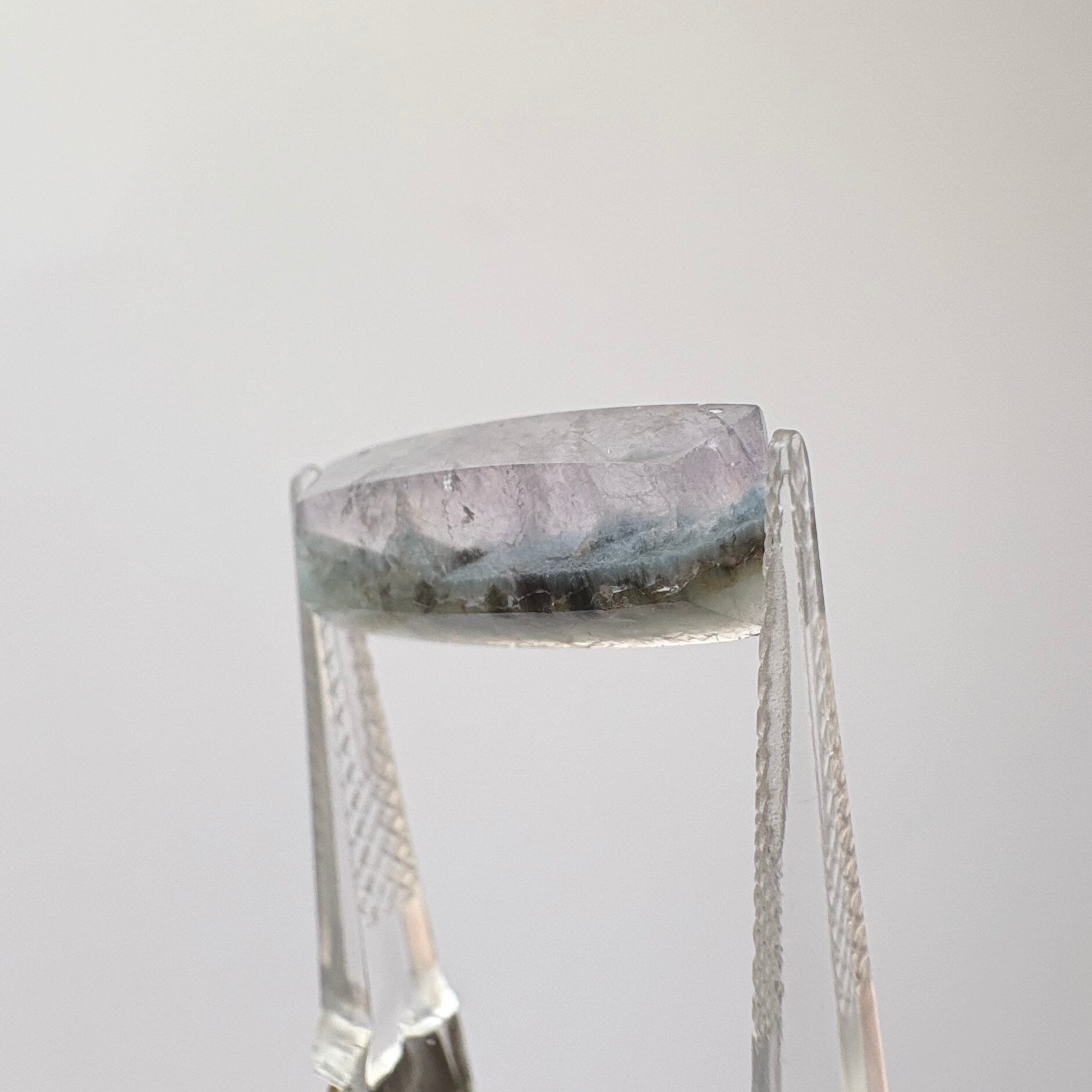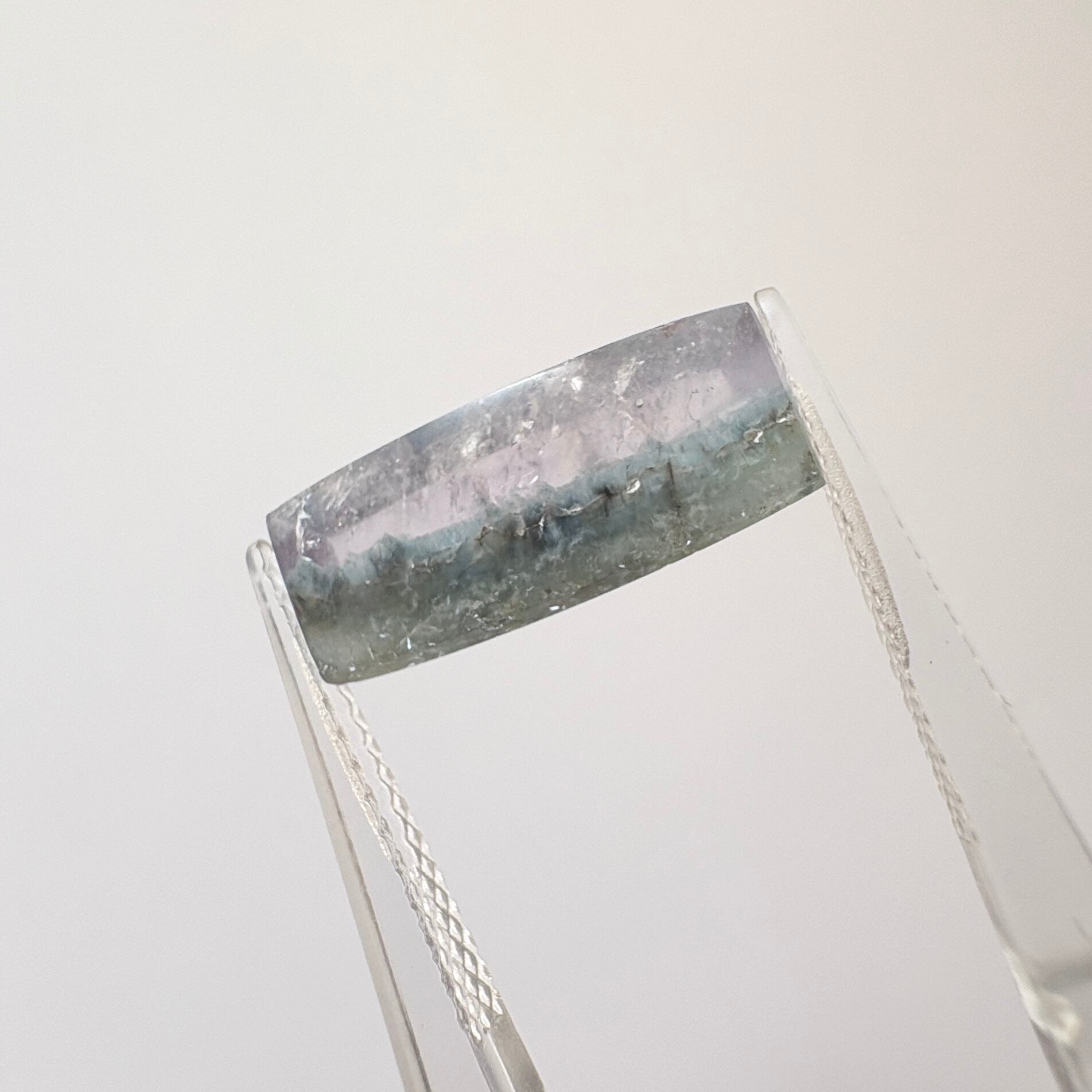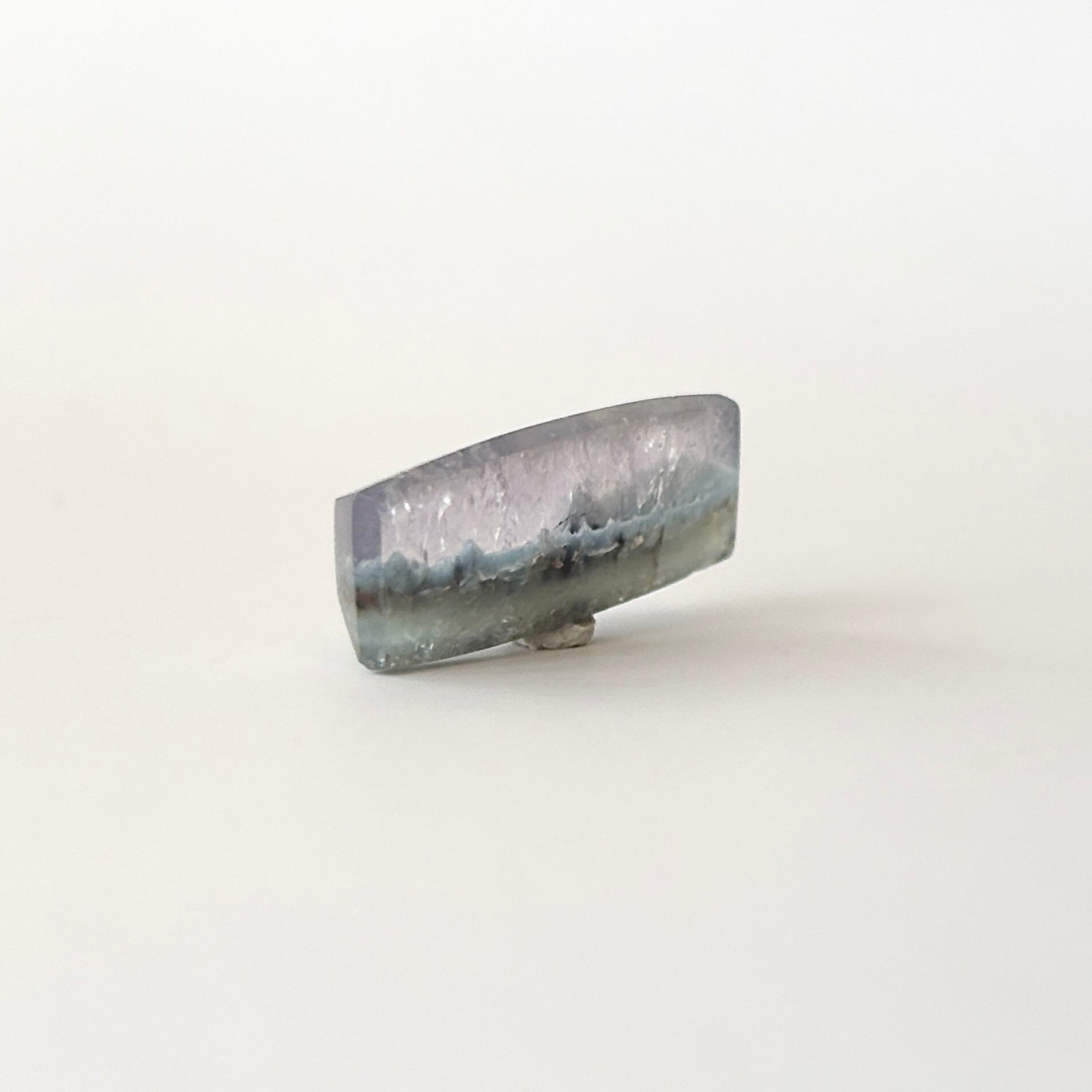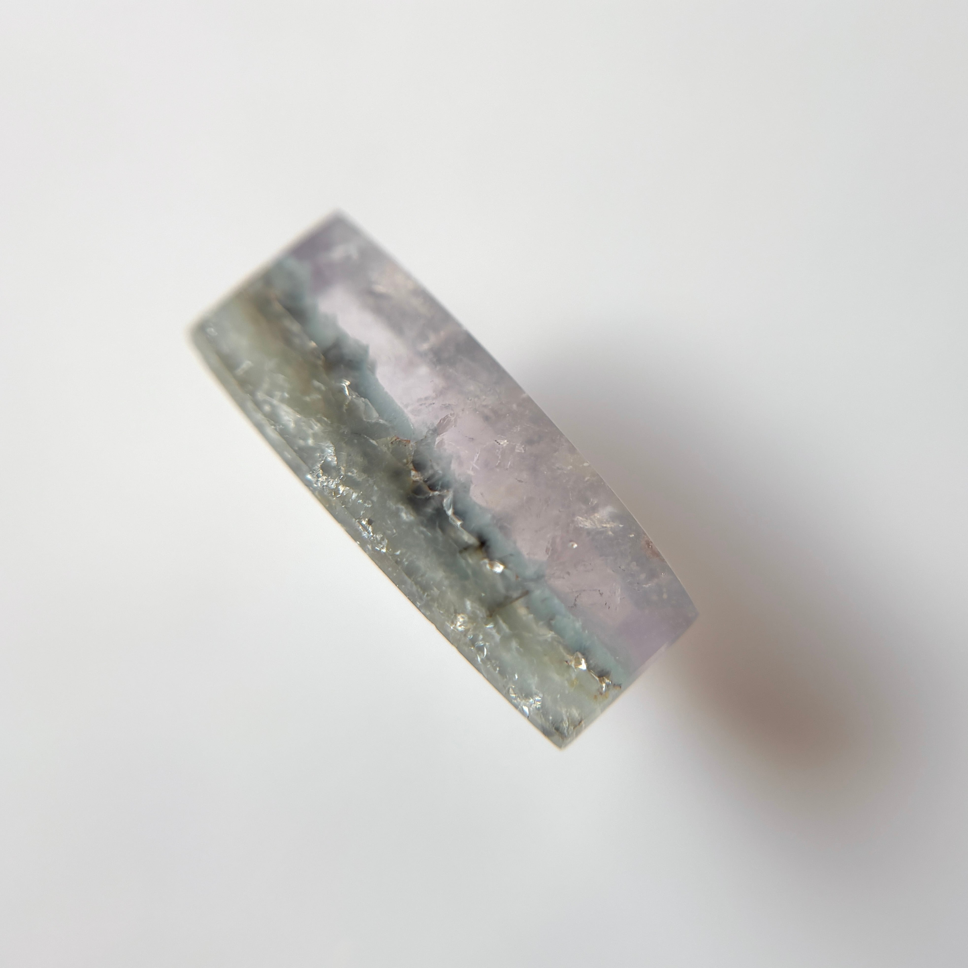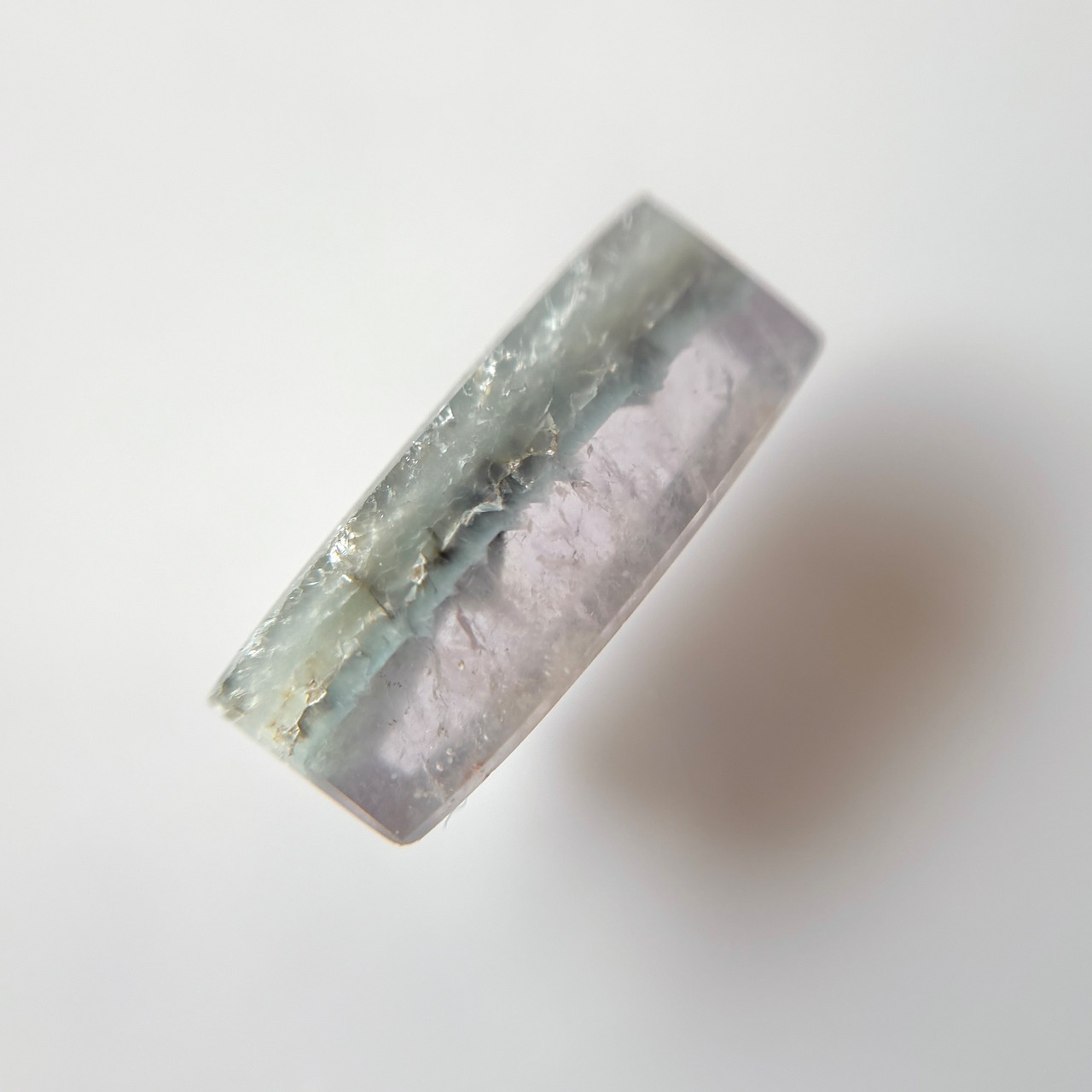 中央を通るふわっとしたギラライトは草原、上部の紫みを帯びたクォーツ部分は雨降る空。ヨーロッパの山あいにある野原の夕立に見えます。