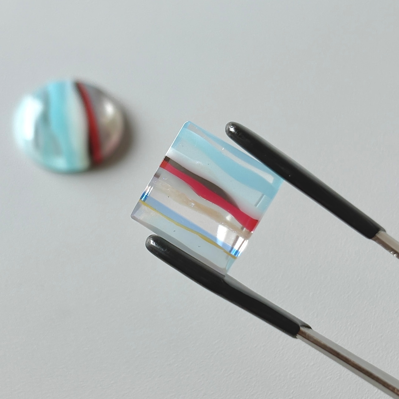 こちらは穴なしで、2種類の型 (⚪︎◻︎) のセットです。両方とも透明な箇所はラメっぽく煌めきます。