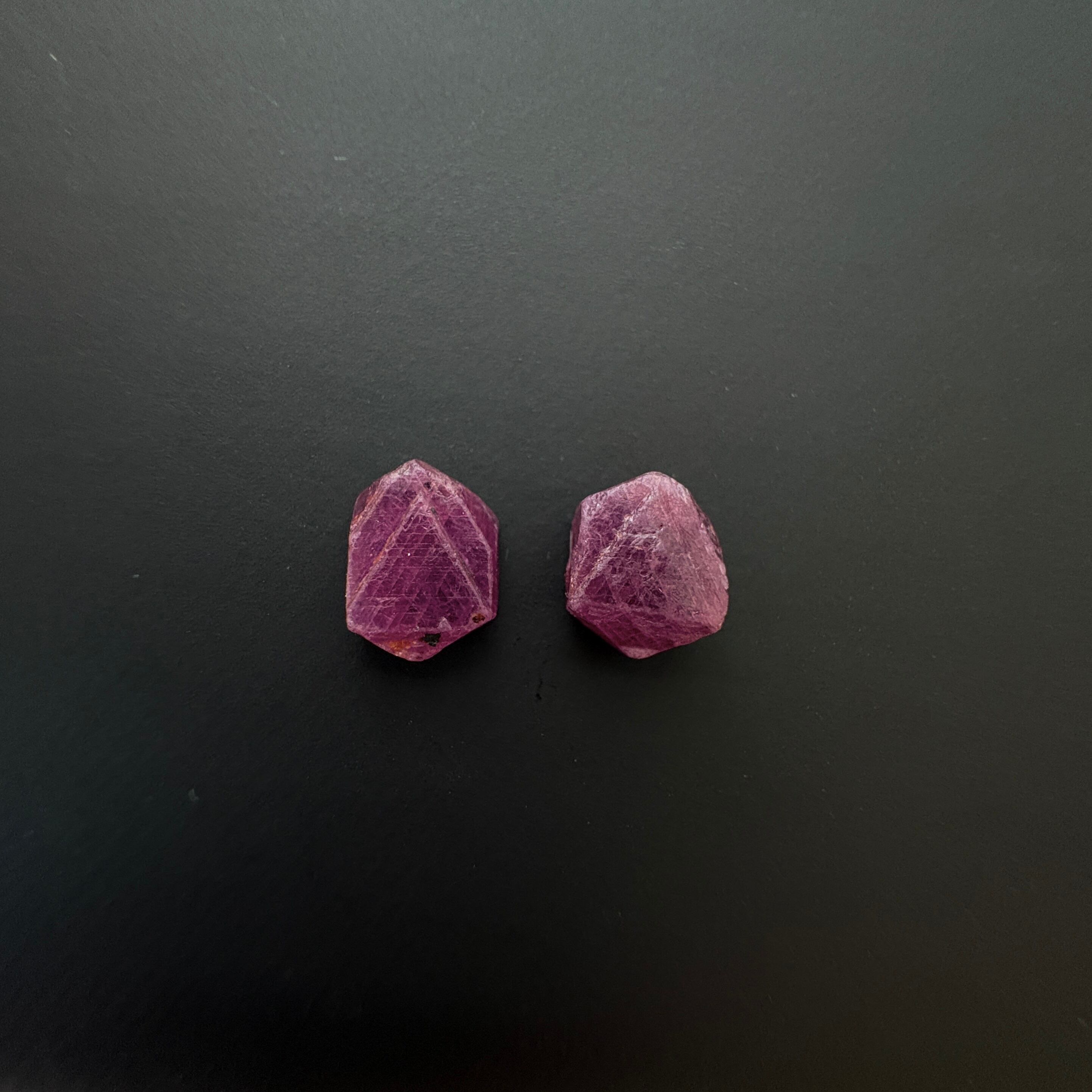 クリアで水晶のイラストのような形のオイルインクォーツ、蓄光性もあるハックマナイト、▲のレコードキーパー付きルビーの3種で、蛍光性以外もそれぞれ楽しむポイントがあります。