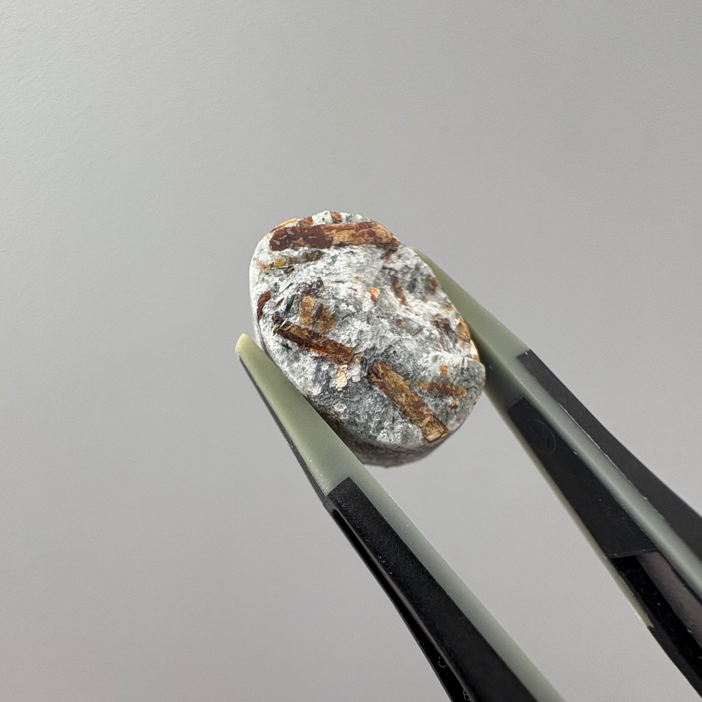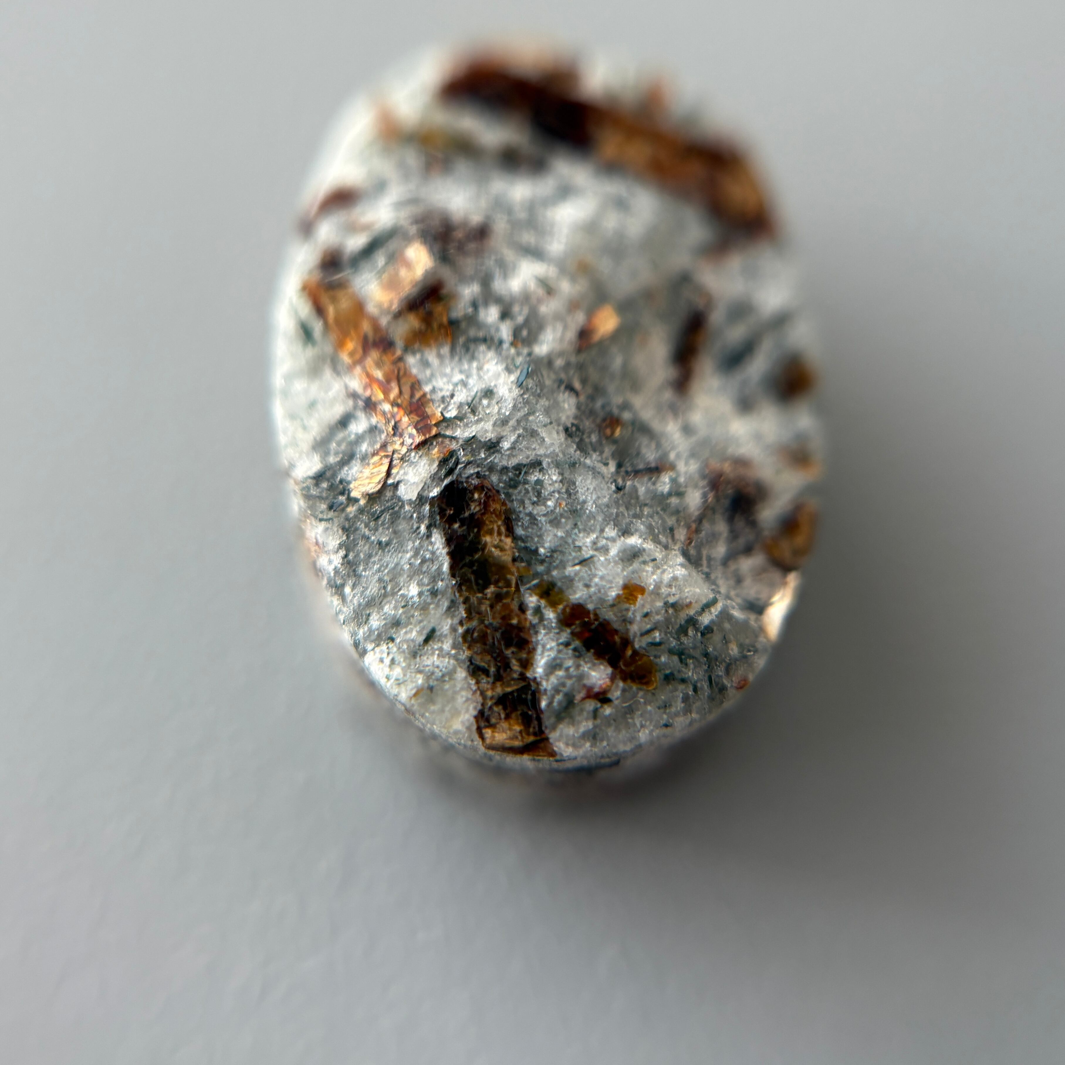 表面はポリッシュ無しのラフで、ゴールドに輝くブレード状の結晶は、鉱物の魅力を別の角度から語ってくれてるようです。