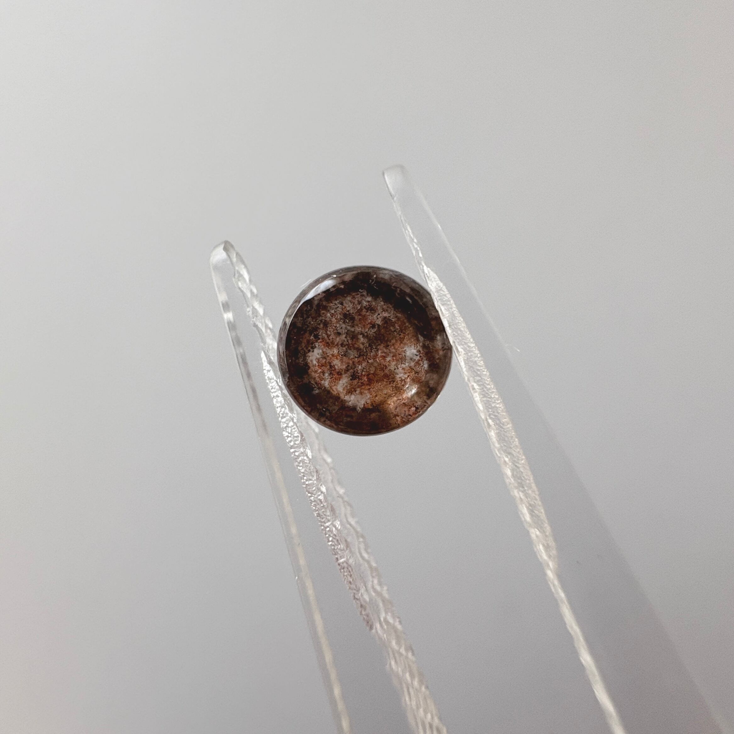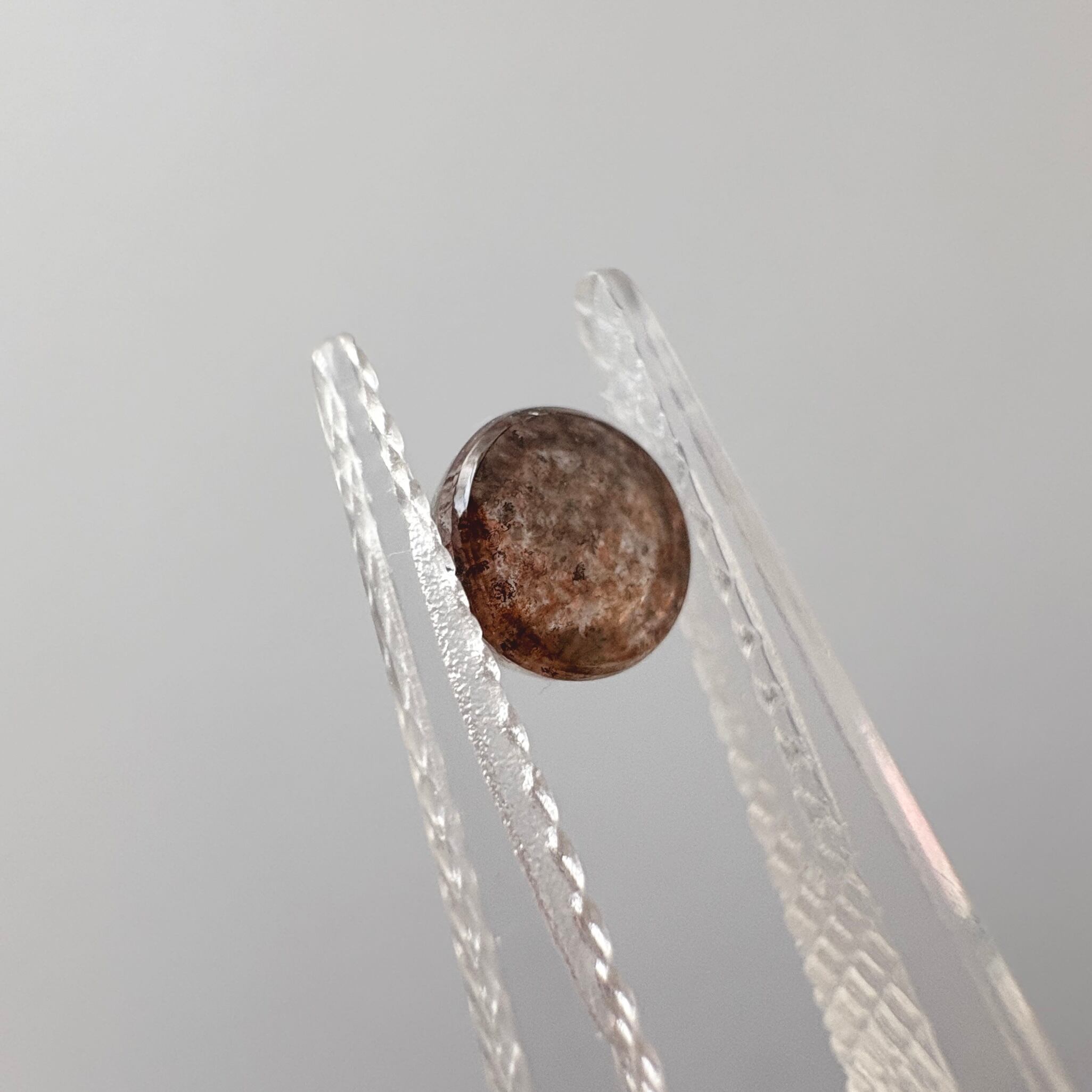 モヤっとした茶褐色の内包物は、角度によってちらちらと七色に輝きます。