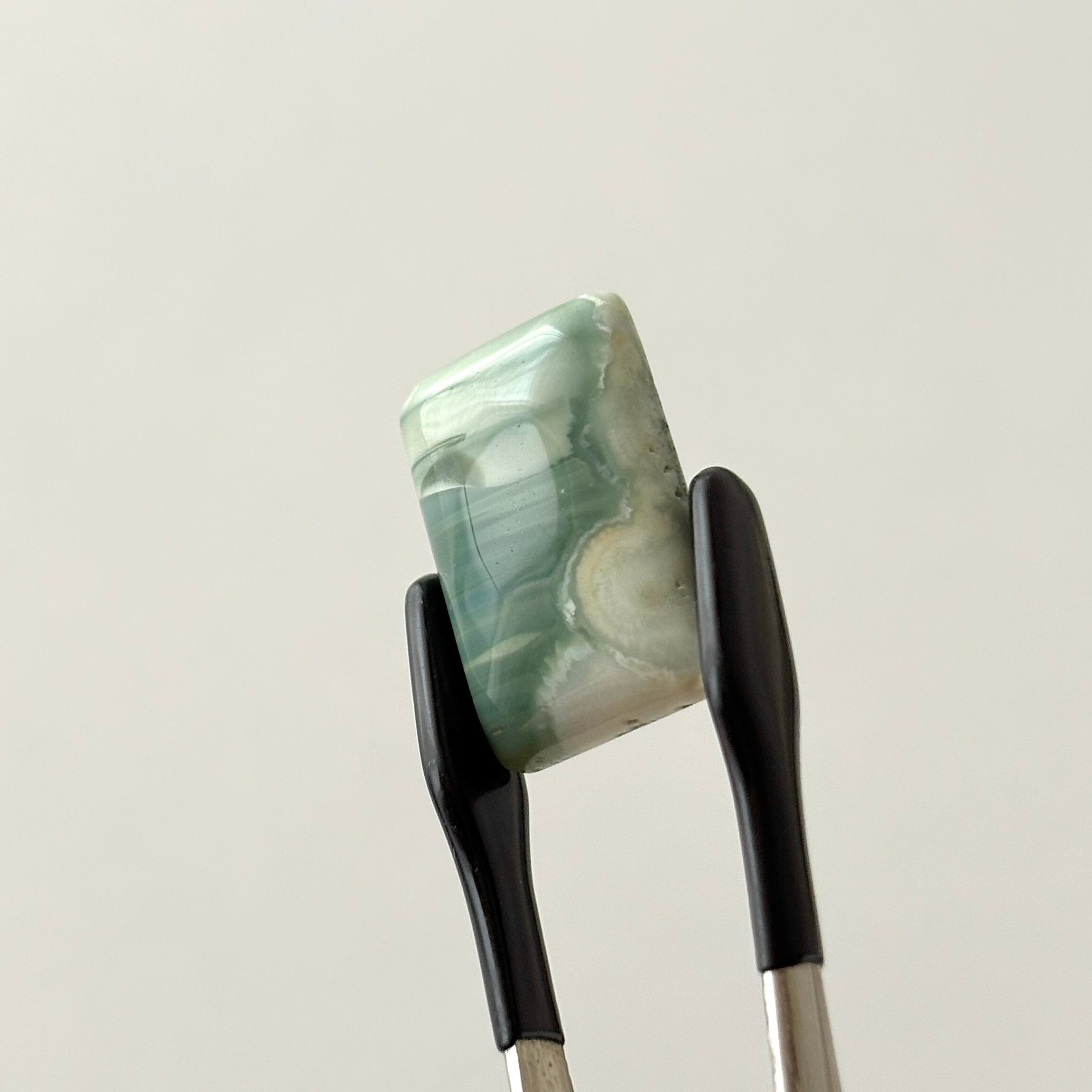 折り重なるブルーとグリーンの縞は海洋のようです。色幅がある石で、こちらは青みが強いのがポイントです。