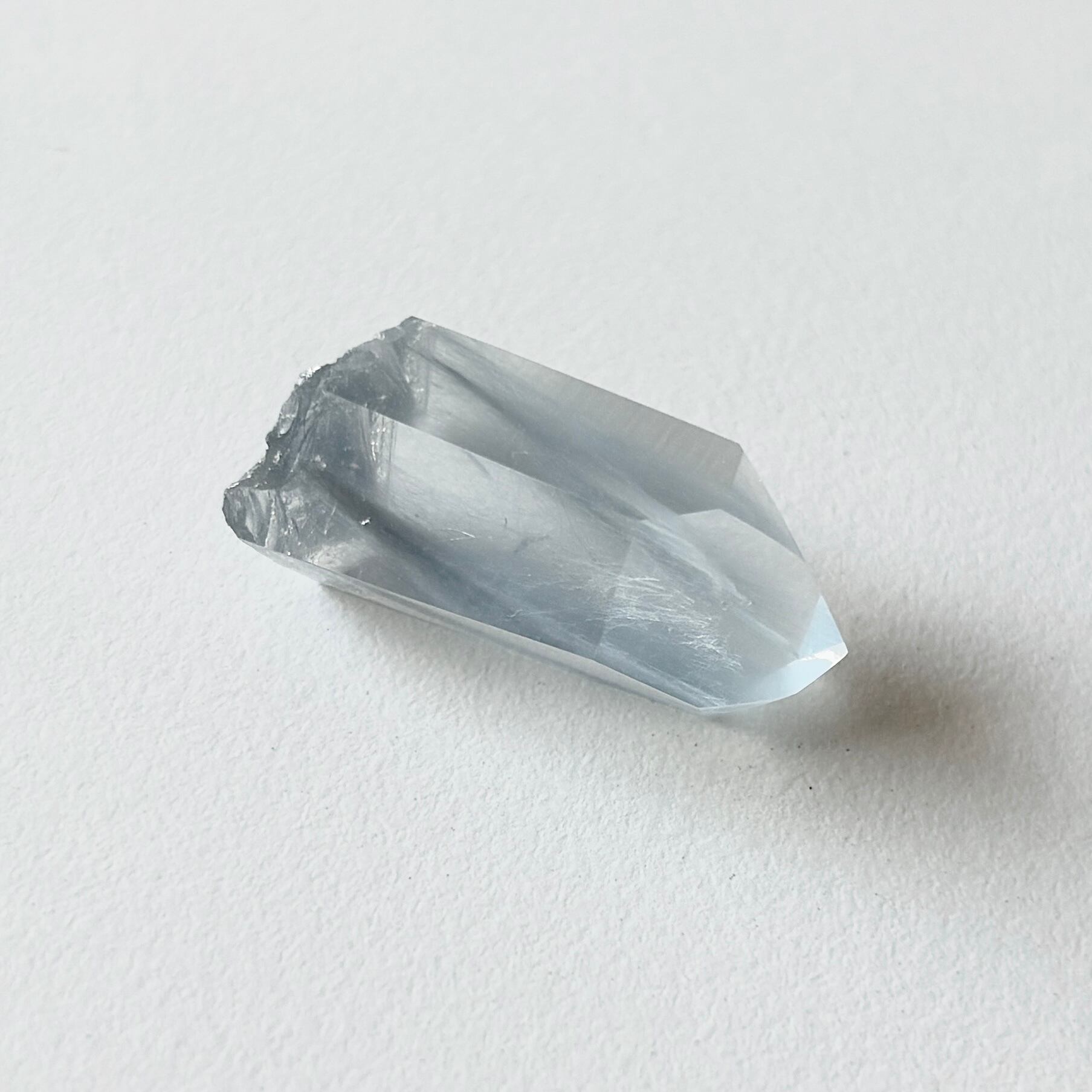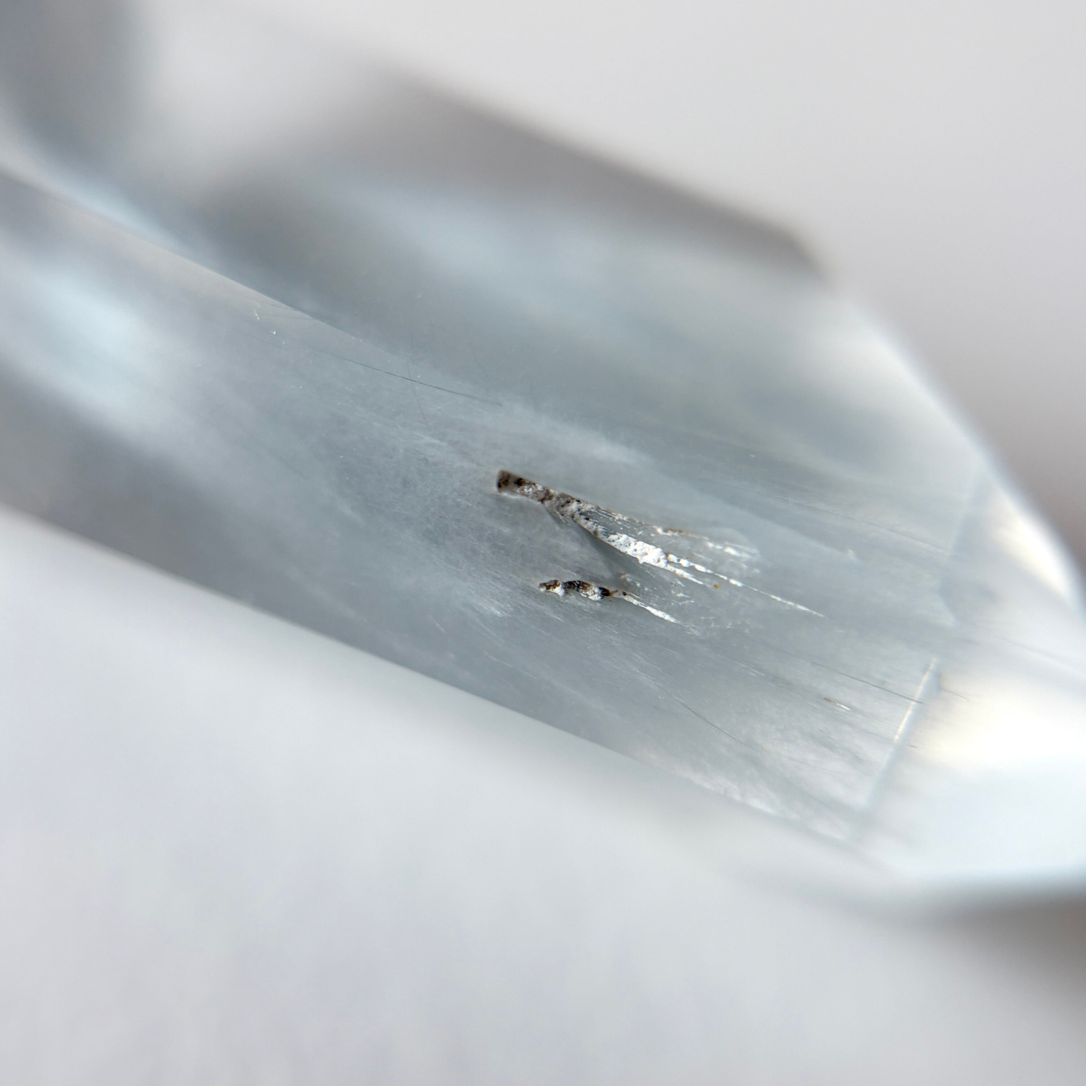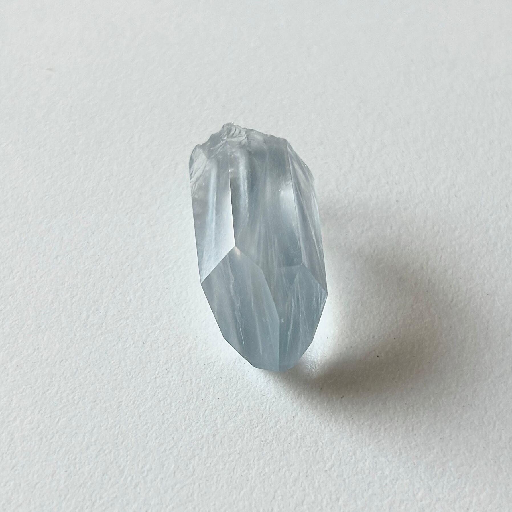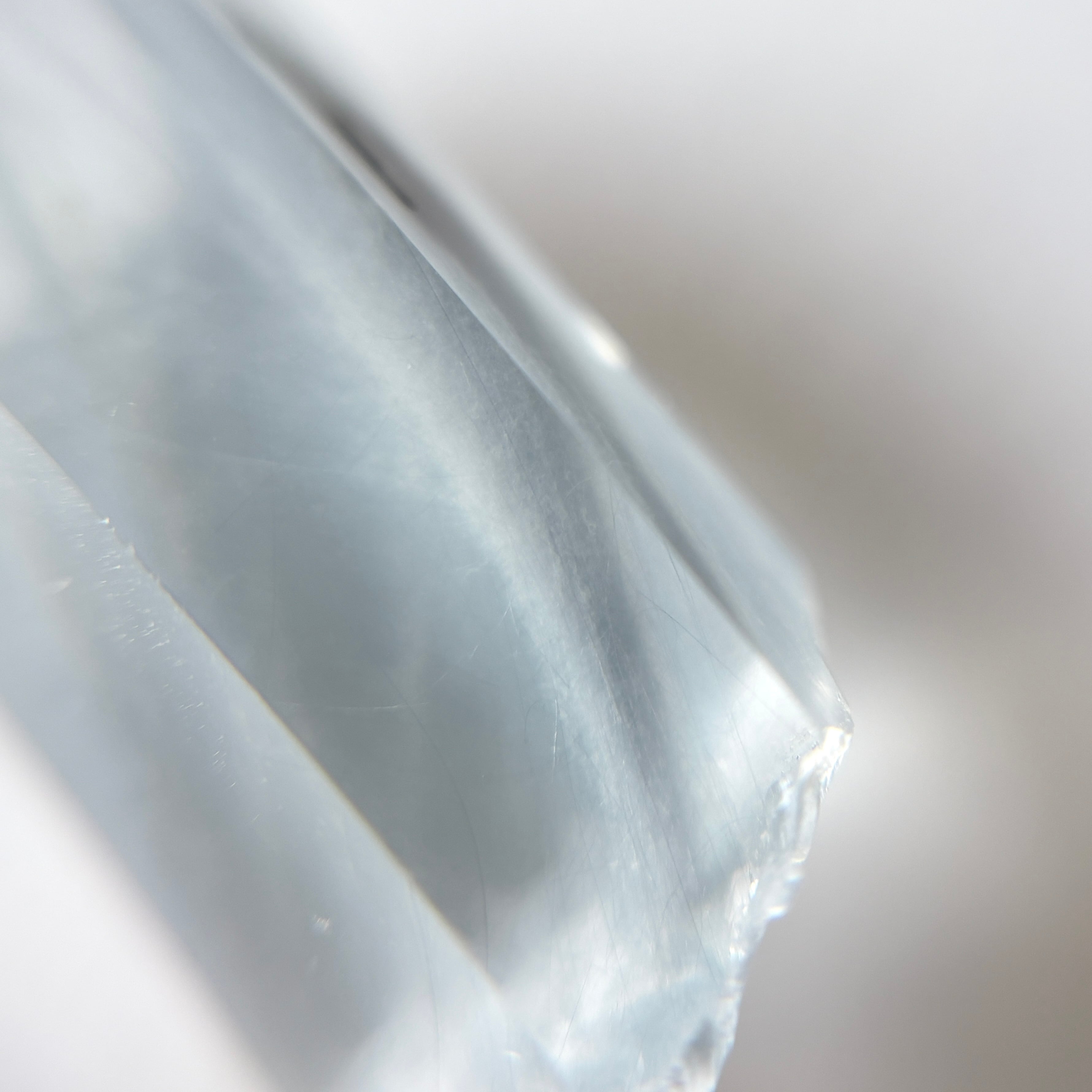 リーベカイト、アンフィボールなどを内包したクォーツのラフカットポリッシュです。ブルーグレーの繊維状インクルージョンがふぁさっと入っています。
