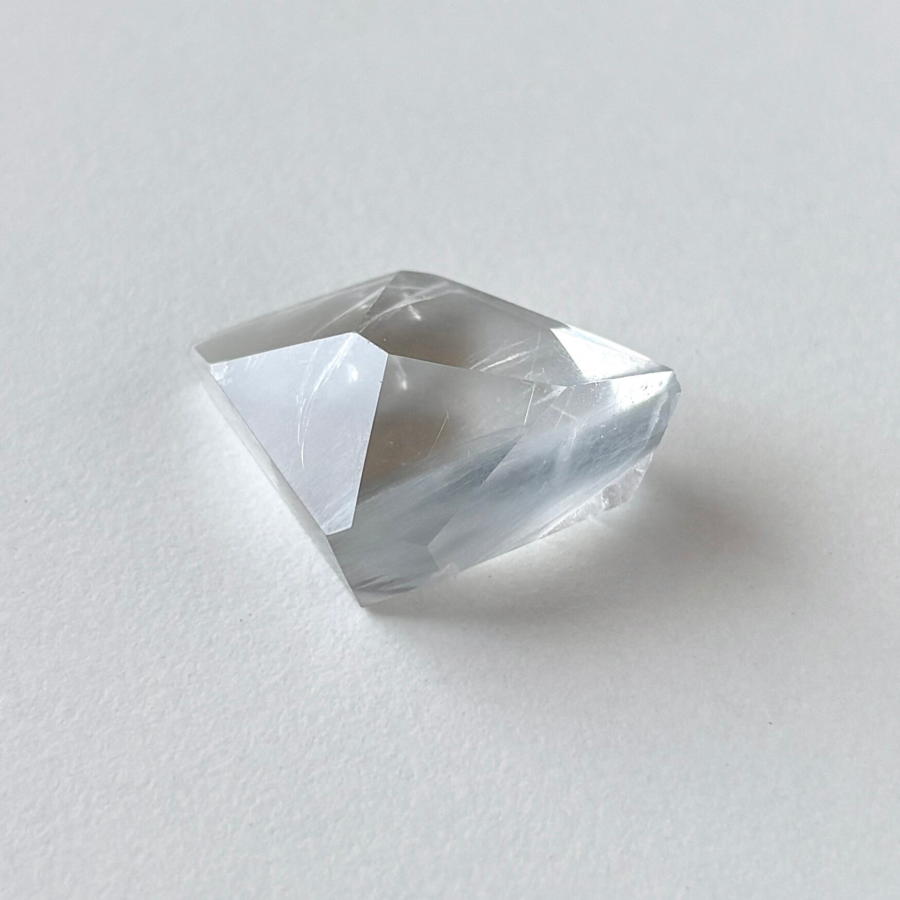 リーベカイト、アンフィボールなどを内包したクォーツのラフカットポリッシュです。ブルーグレーの繊維状インクルージョンがふぁさっと入っています。