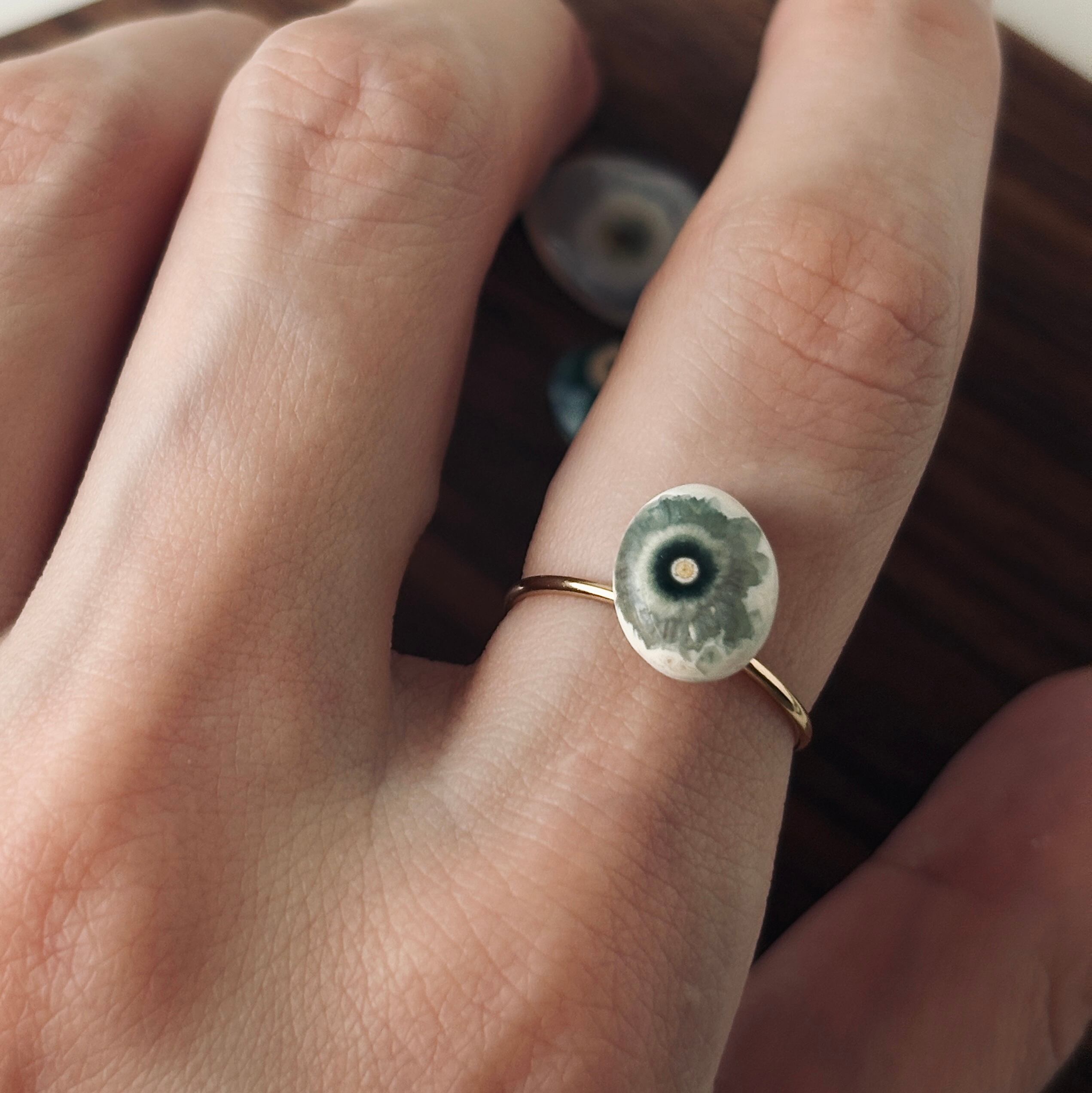 緑やピンク、黄色、白などの球状の模様が特徴のジャスパー。カルセドニーのように透明感のあるものもあり、マダガスカルの海岸で産出されたことが名の由来です。