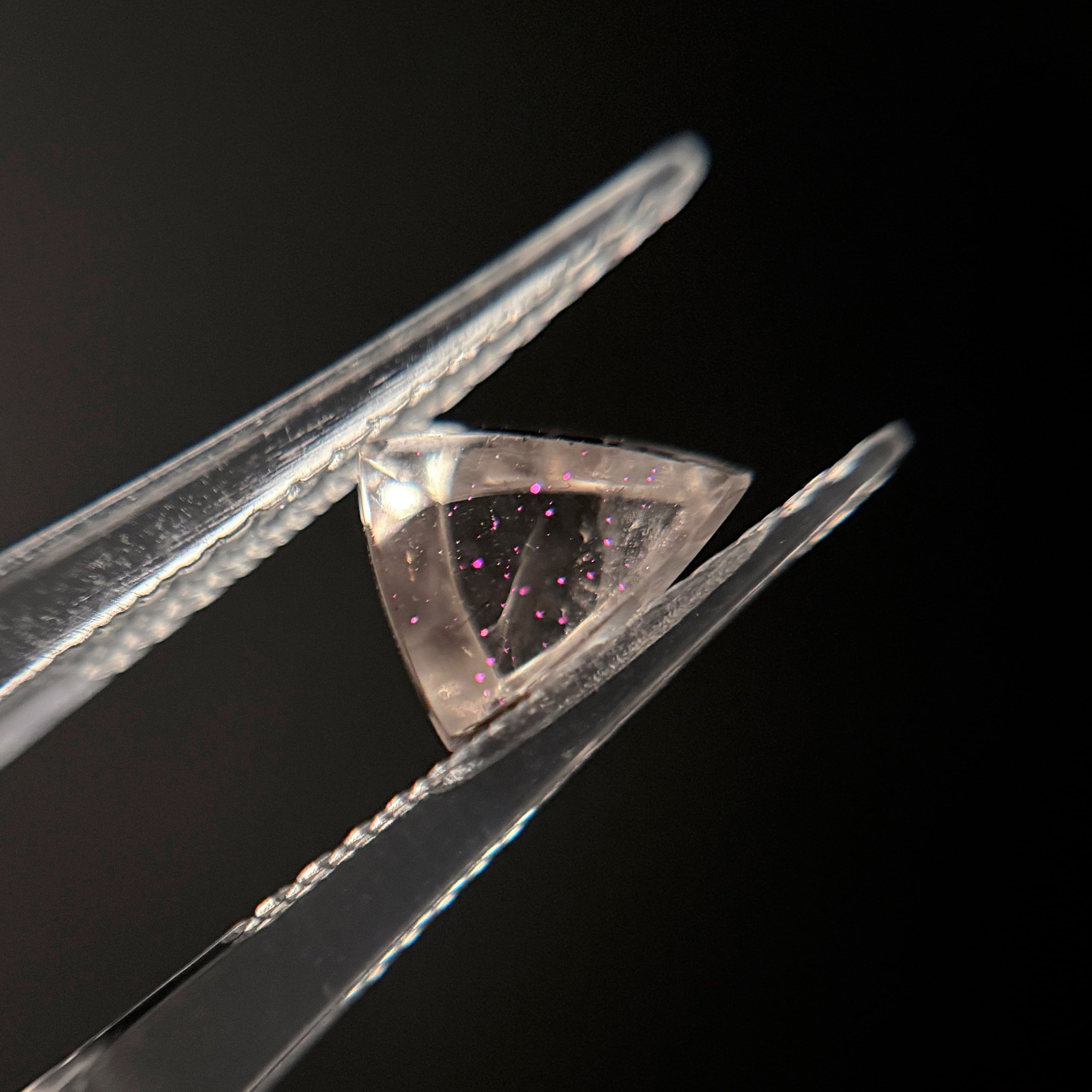 中のコベライトがピンクに輝く水晶。ティンカーベルクォーツ、コベライトインクォーツとも呼ばれています。