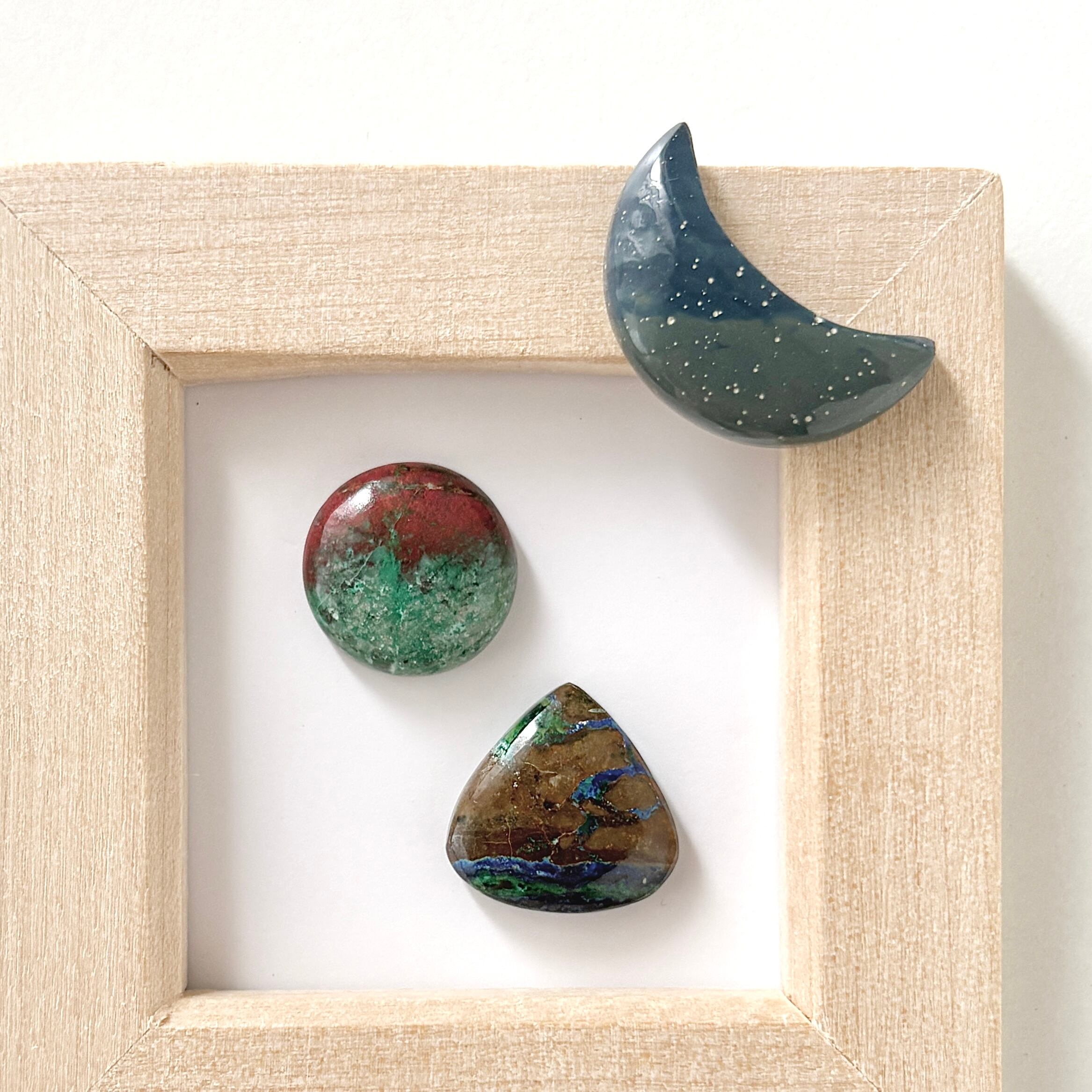 アズライトが水分に反応するとマラカイトへ変化するそうで、模様と同様の水と植物の関係に似ていて胸が熱くなります。