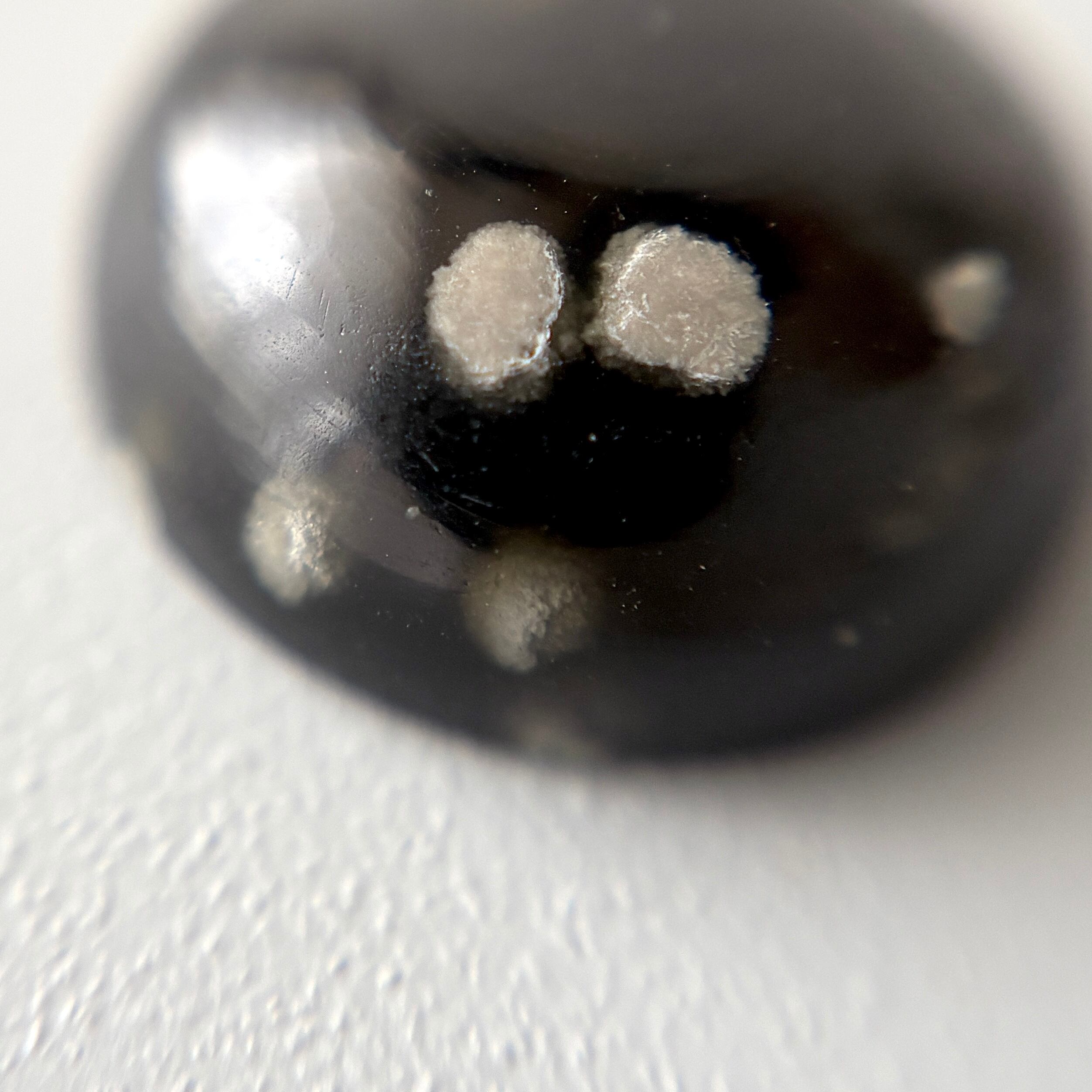 もこもこのクリストバライトが入った黒曜石 (オブシディアン) です。