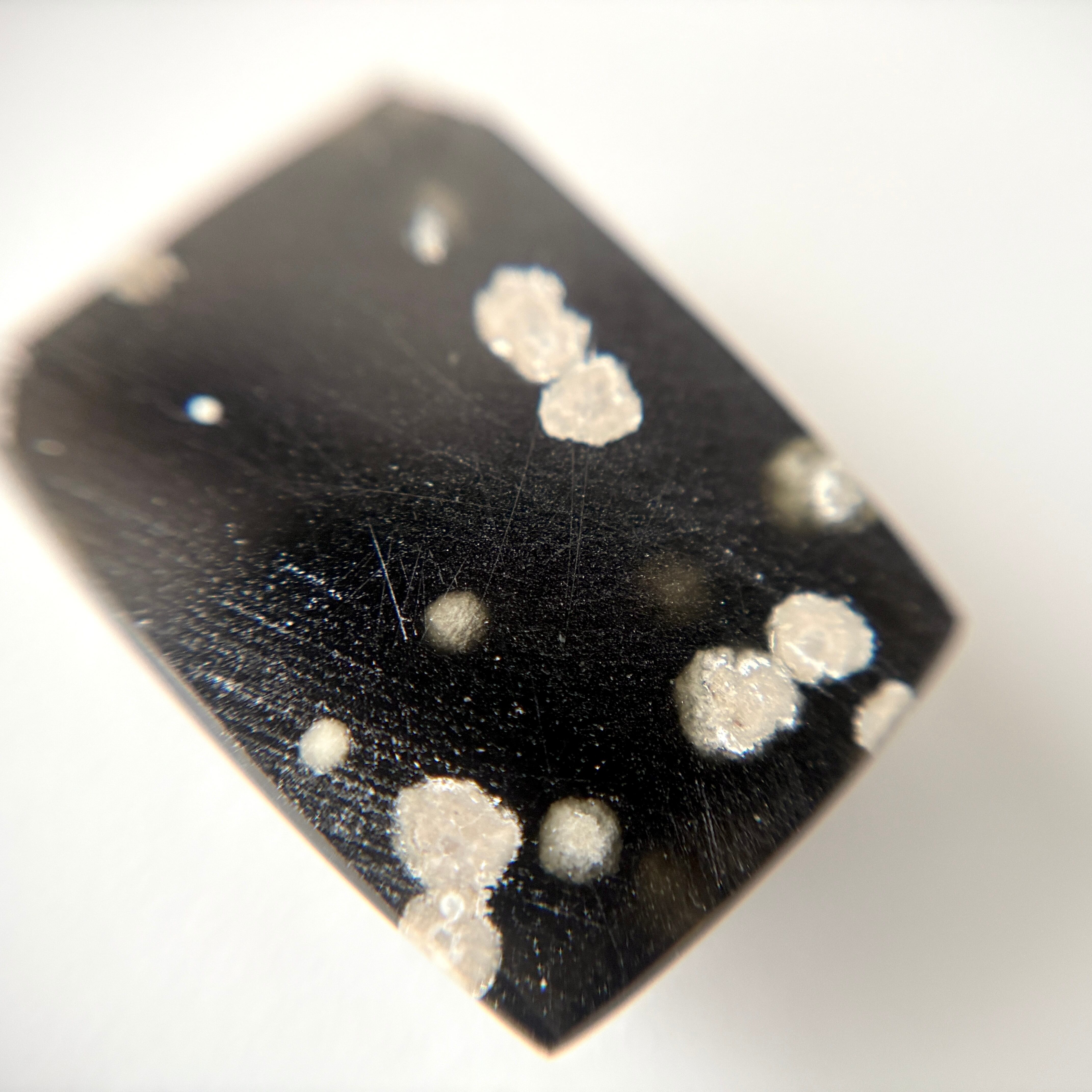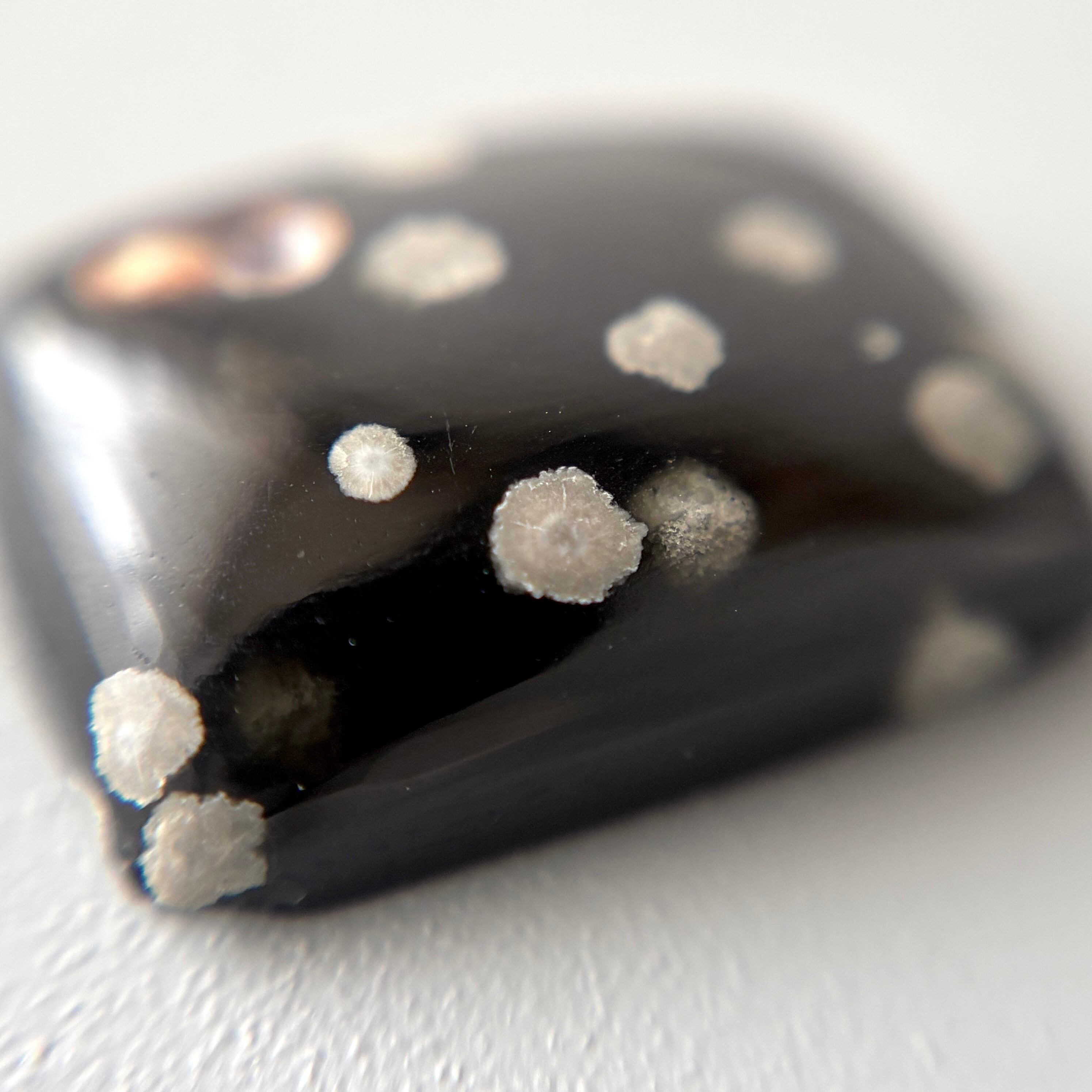クリストバライトは高温下で形成された石英で、雪の結晶のような形状のものはスノーフレークオブシディアンと呼ばれてます。
