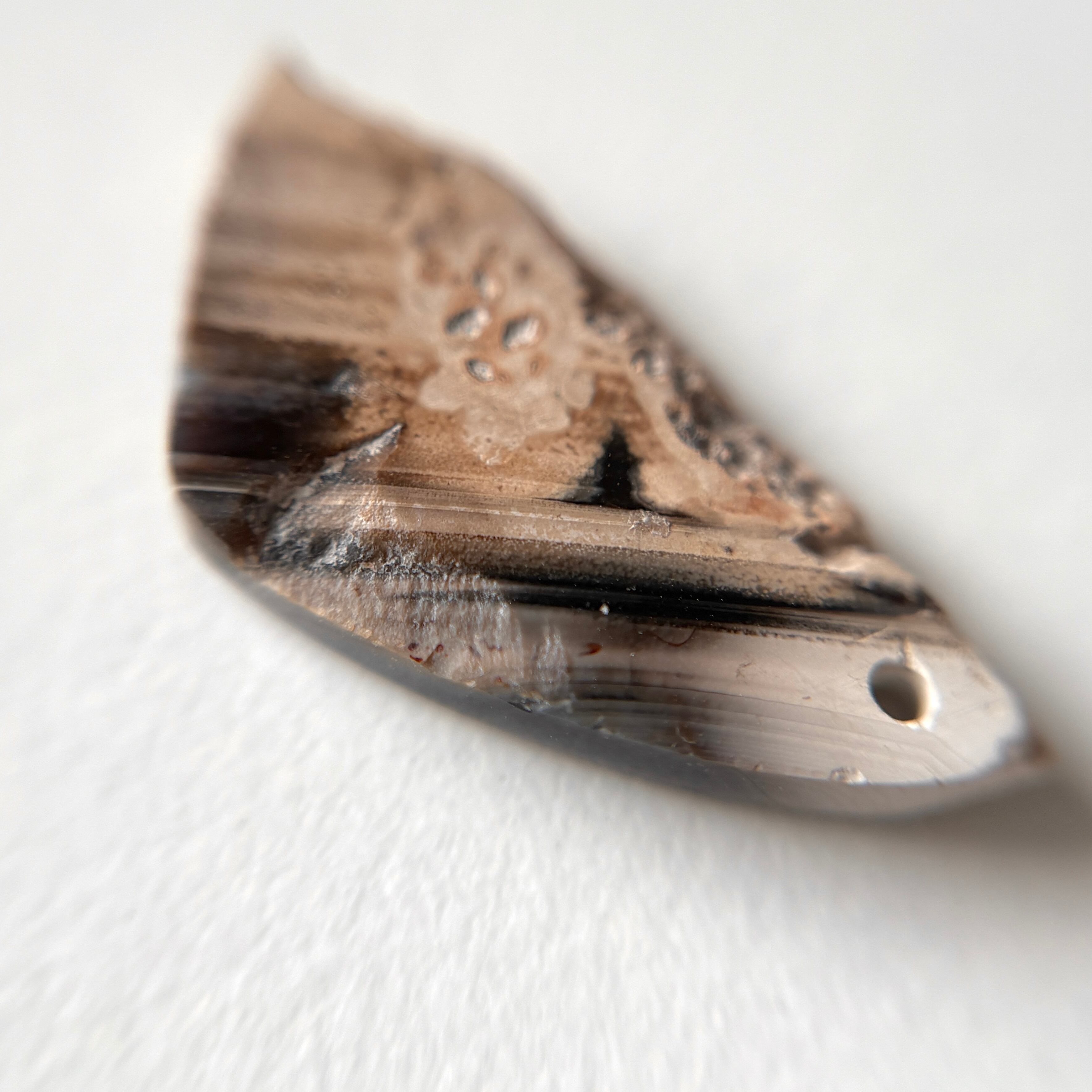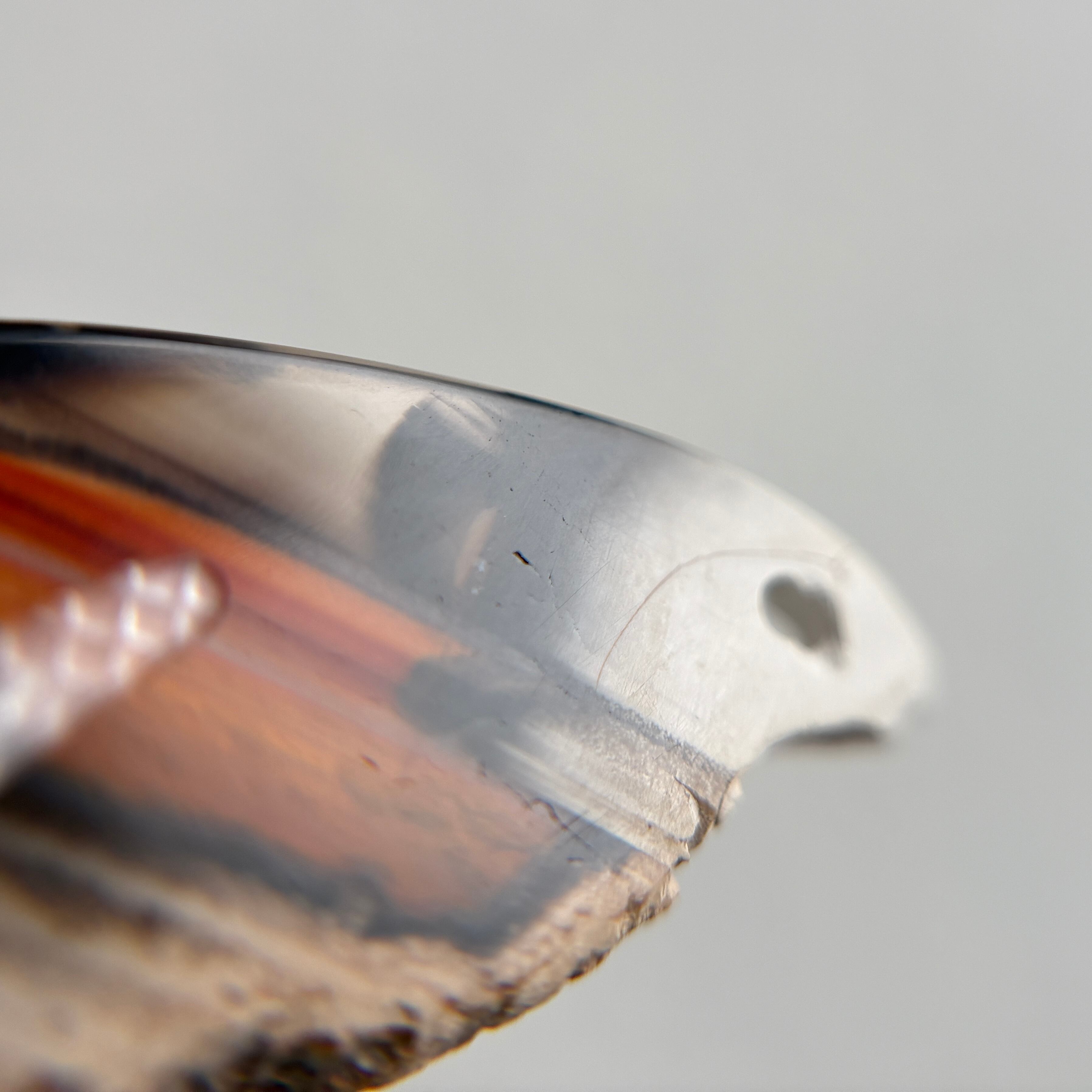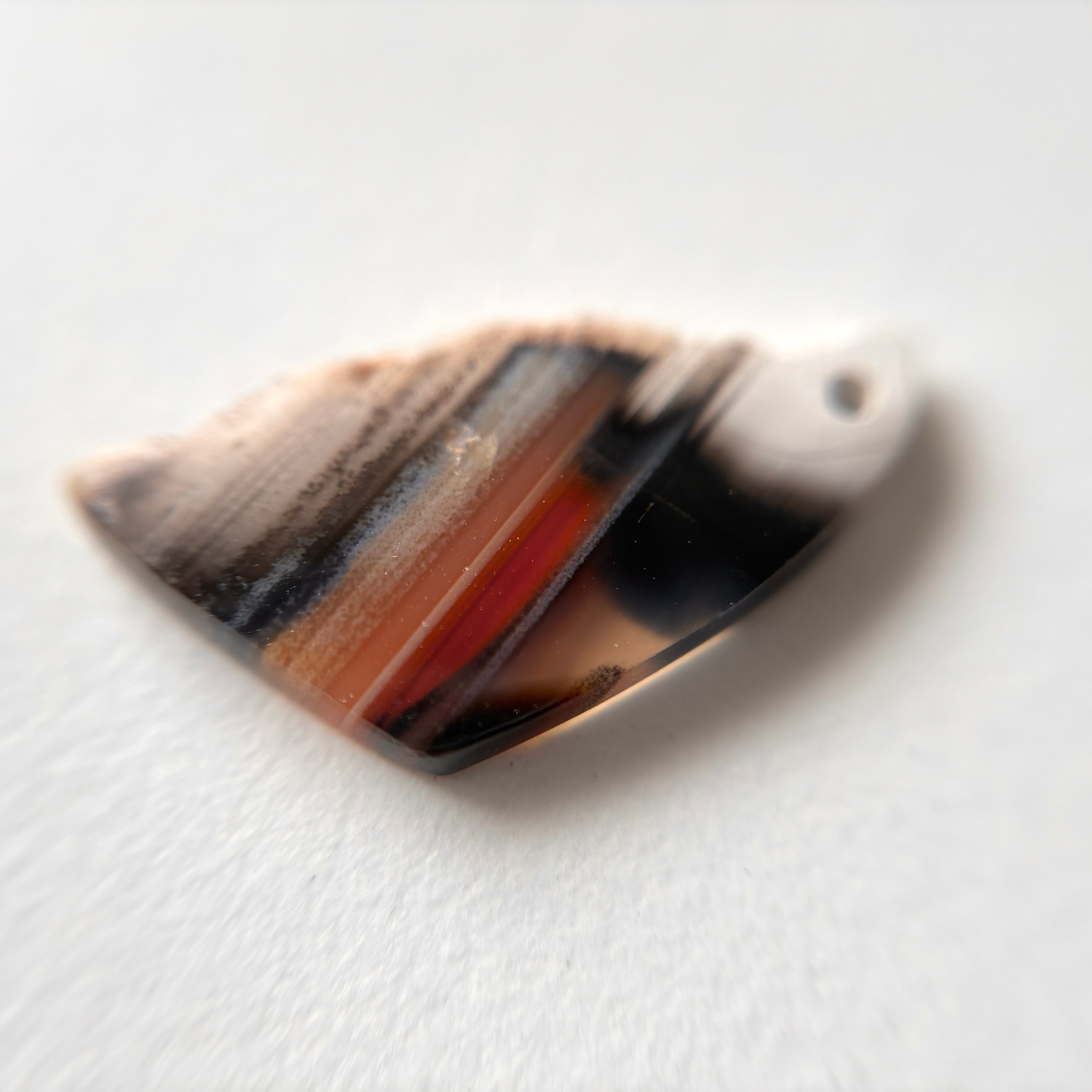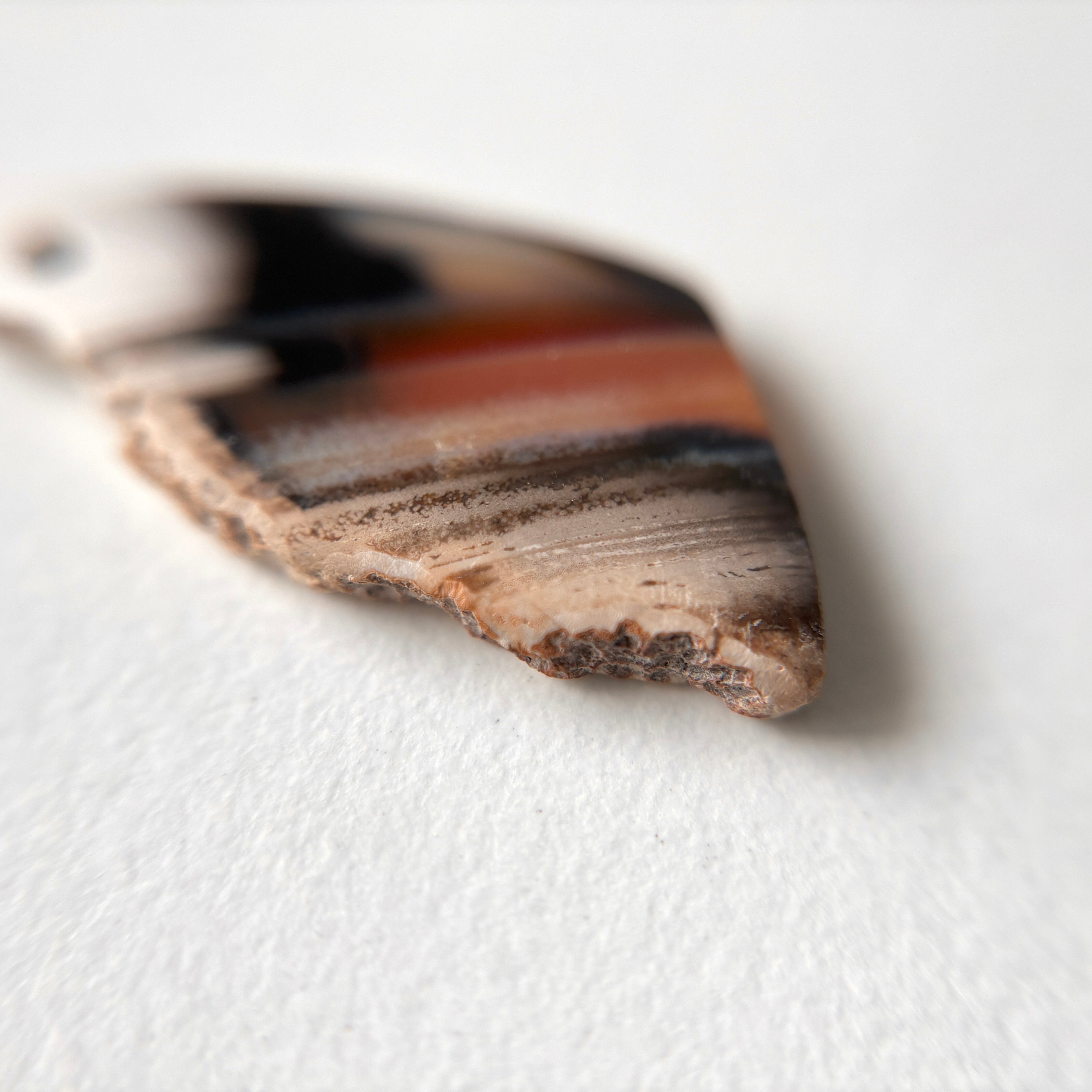 片方は元のカーネリアンらしい色味を残した縞模様があり、もう片方はシックなグレイッシュなカラーでアシンメトリーを楽しめます。