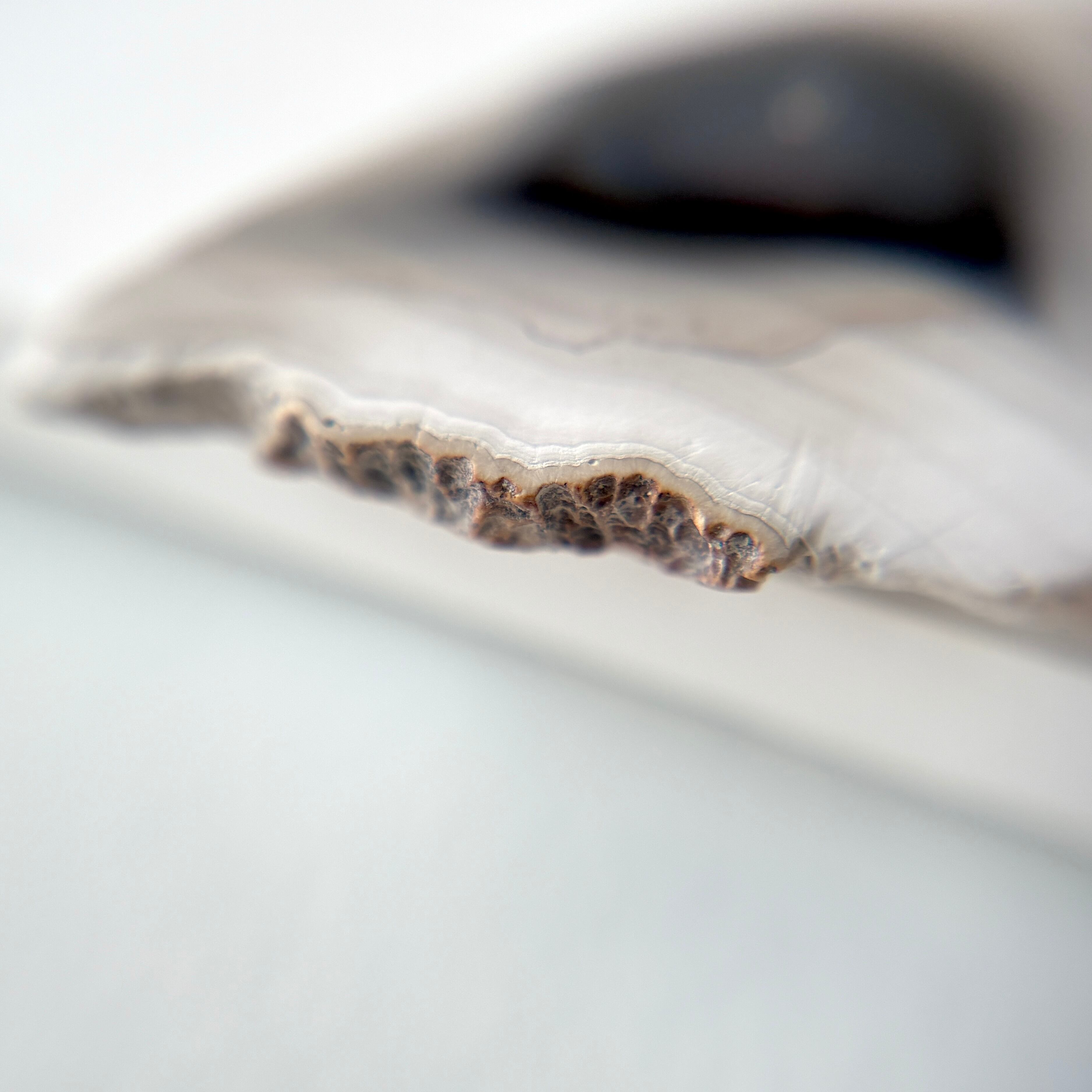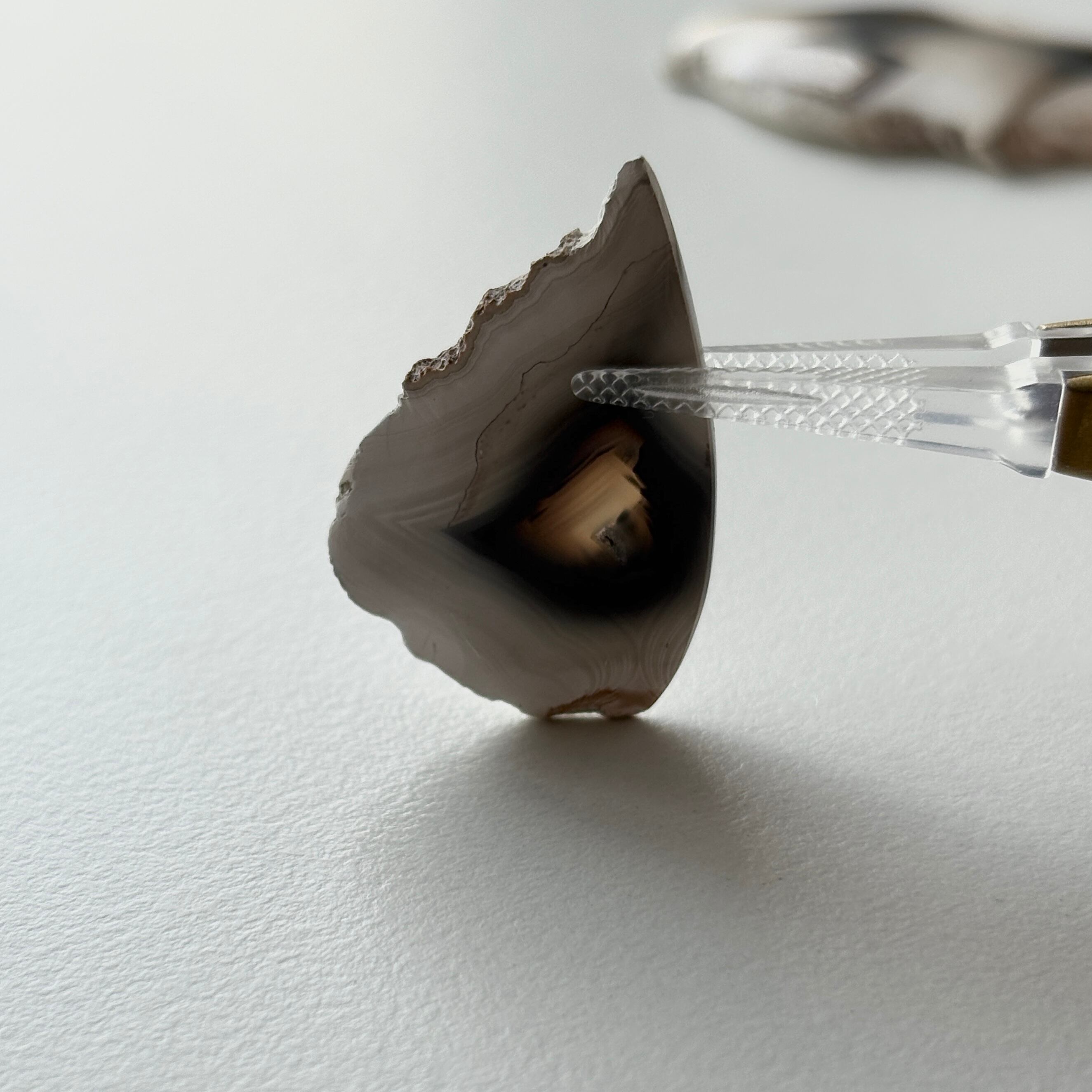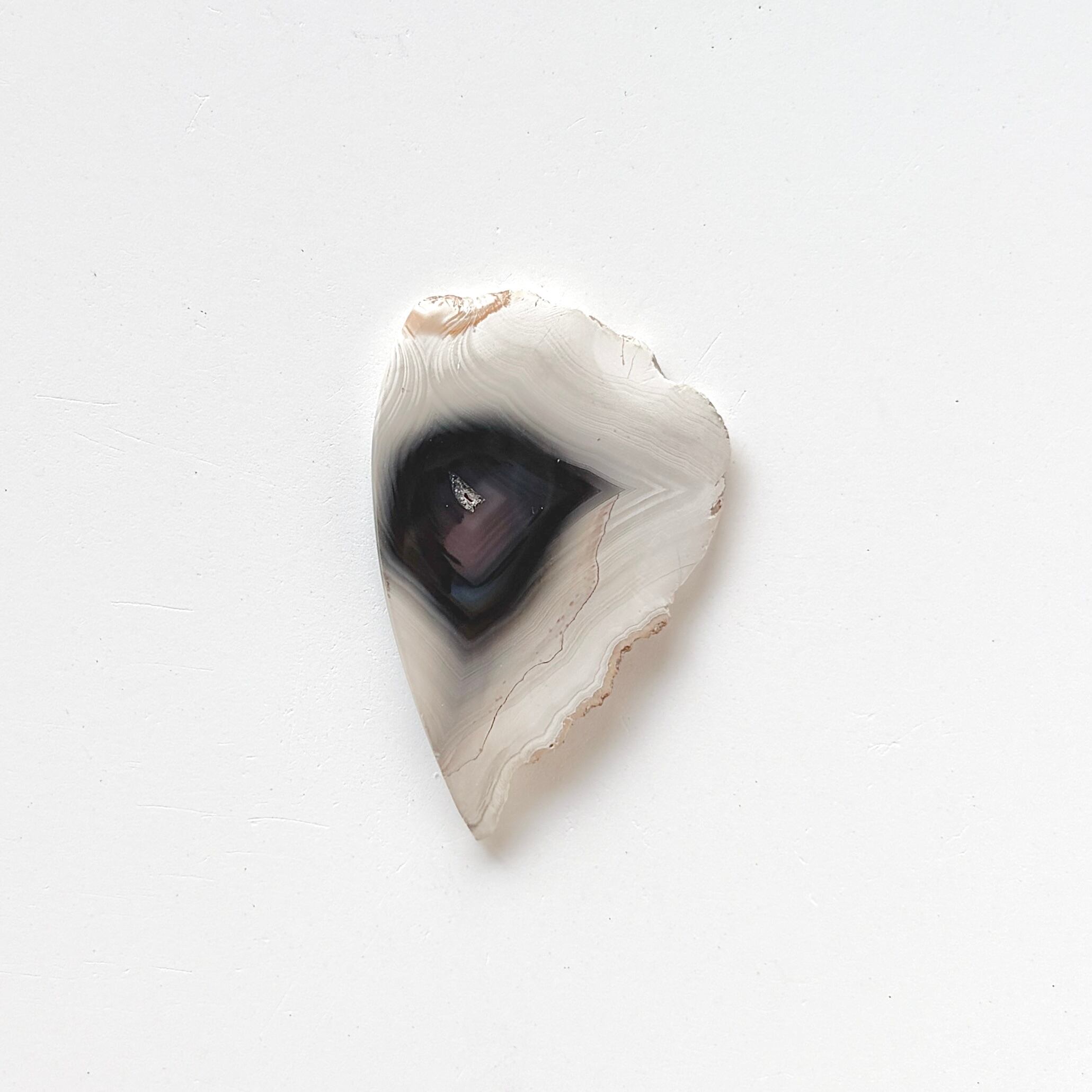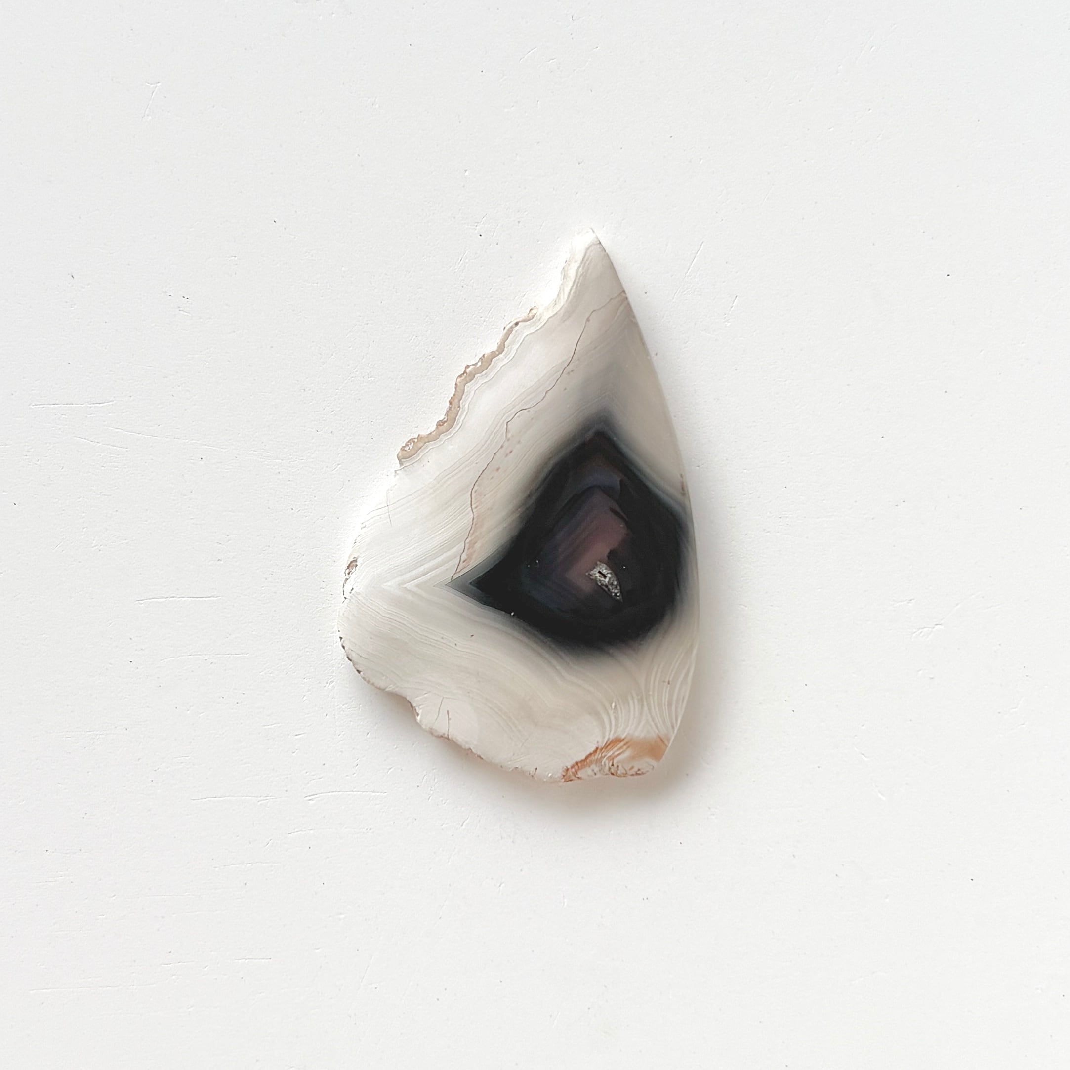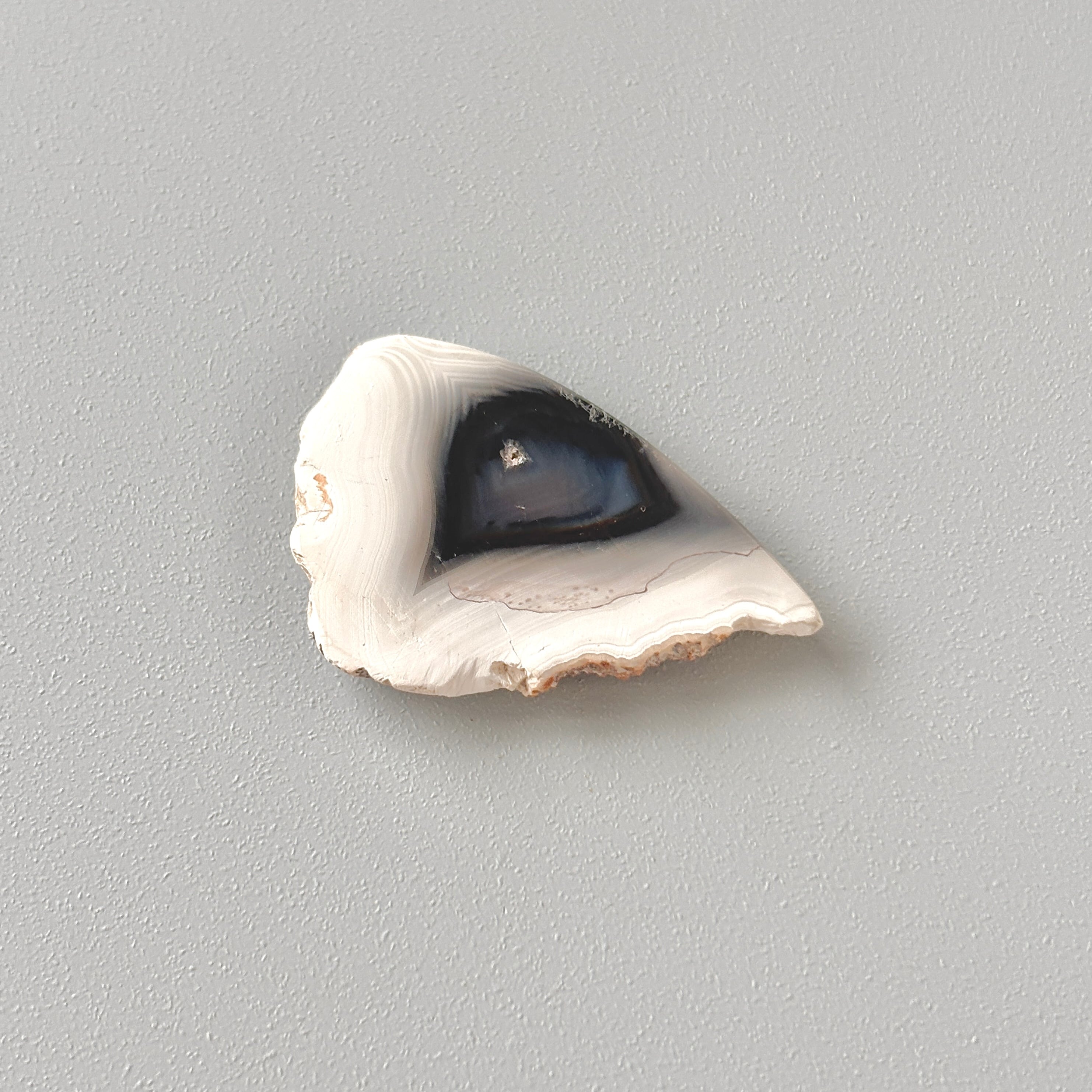 アゲート層は中心に向かって白から深いブルーグレーに変わり、中央は透明感があります。