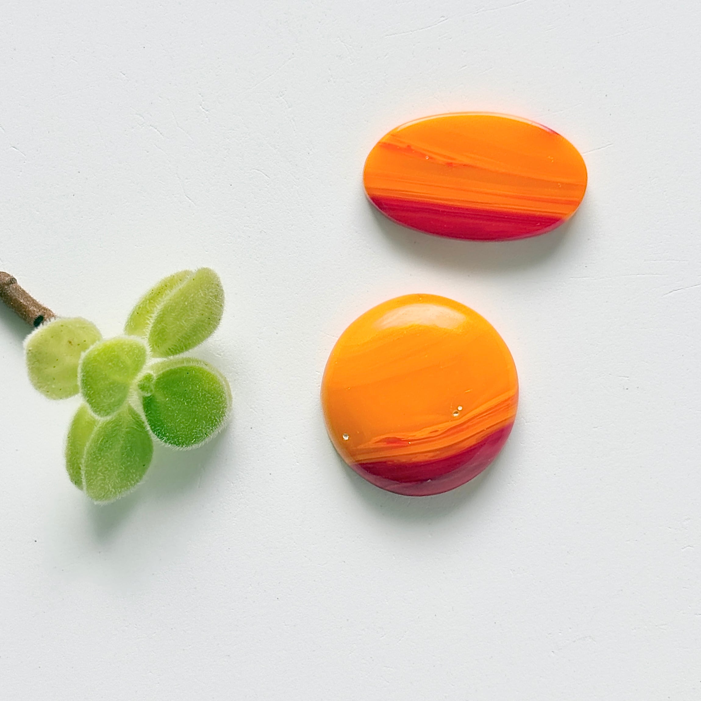 色合いや模様は様々あり、こちらはビビッドな赤とオレンジのマーブル模様で、熱い日の夕焼け空のようです。