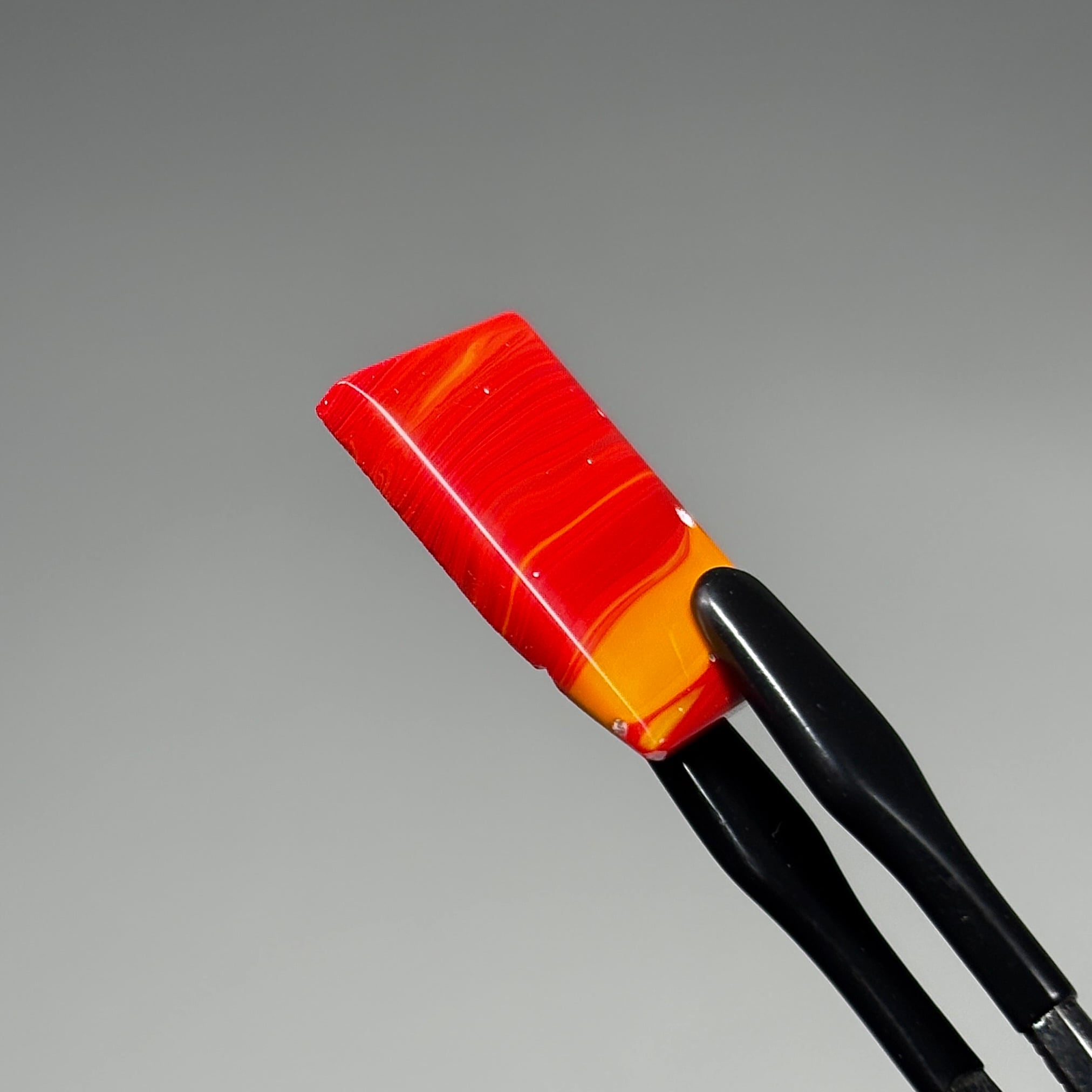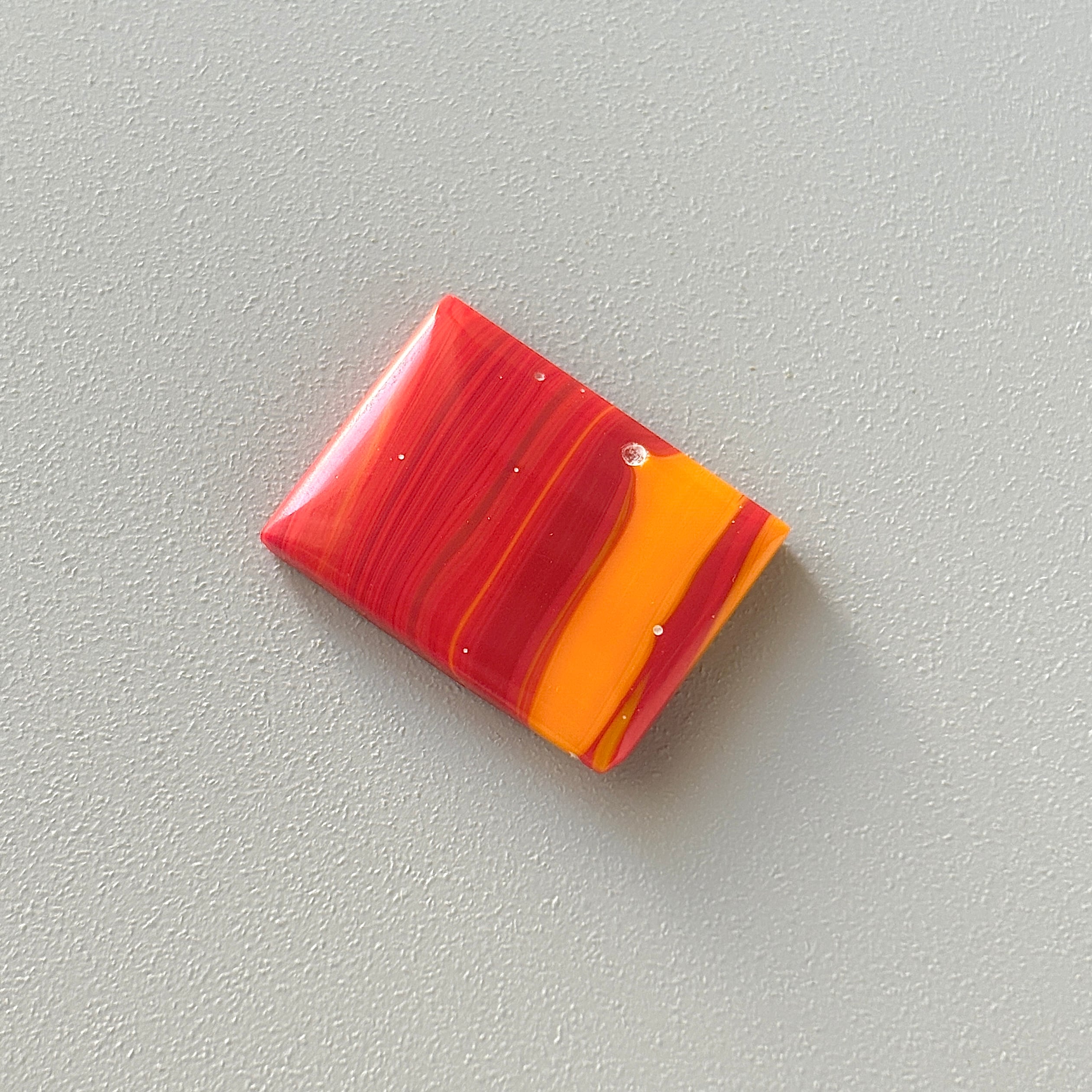 色合いや模様は様々あり、こちらは赤とオレンジのマーブルで、彩度の高いペンキのような鮮やかさと幾重にも重なった層が美しいです。