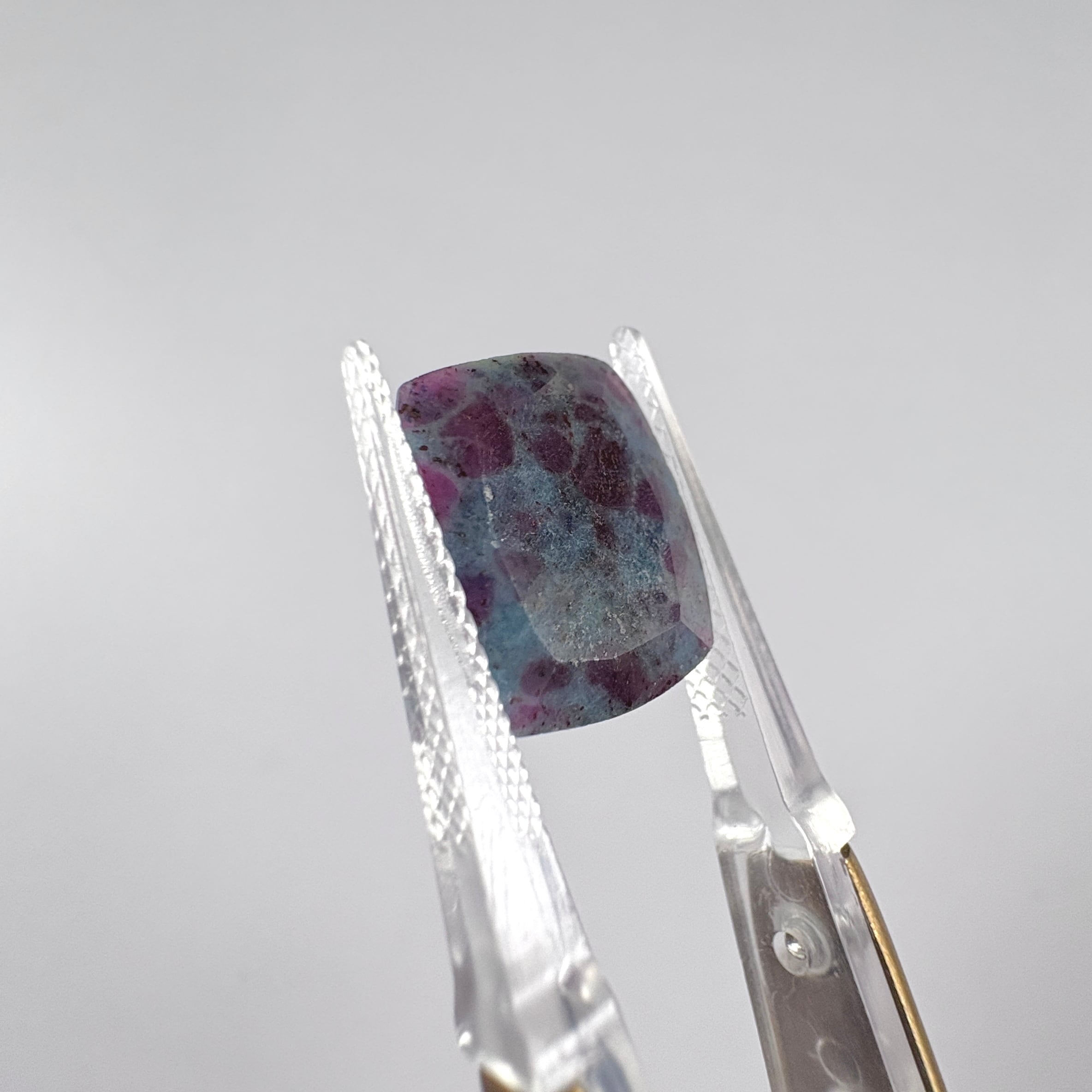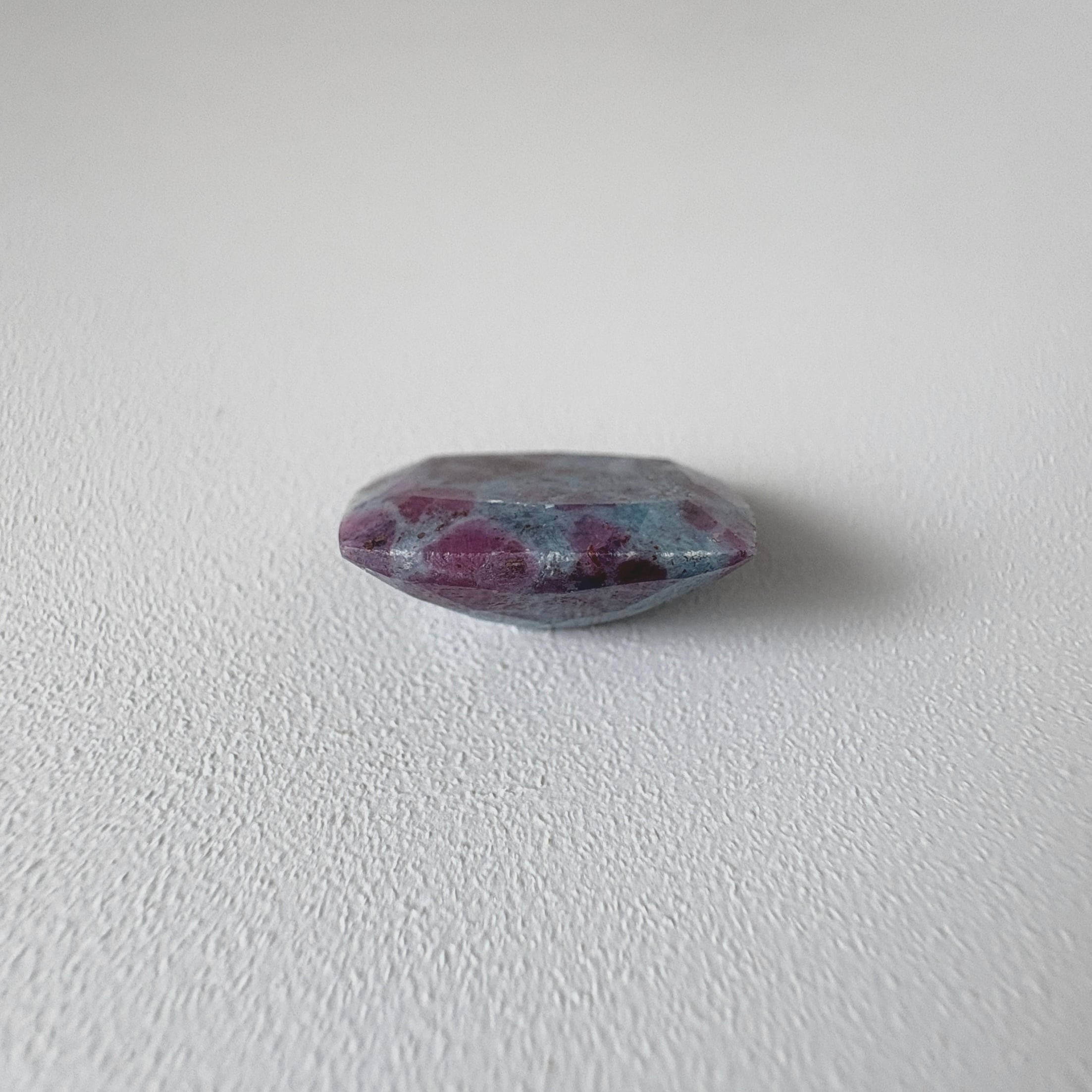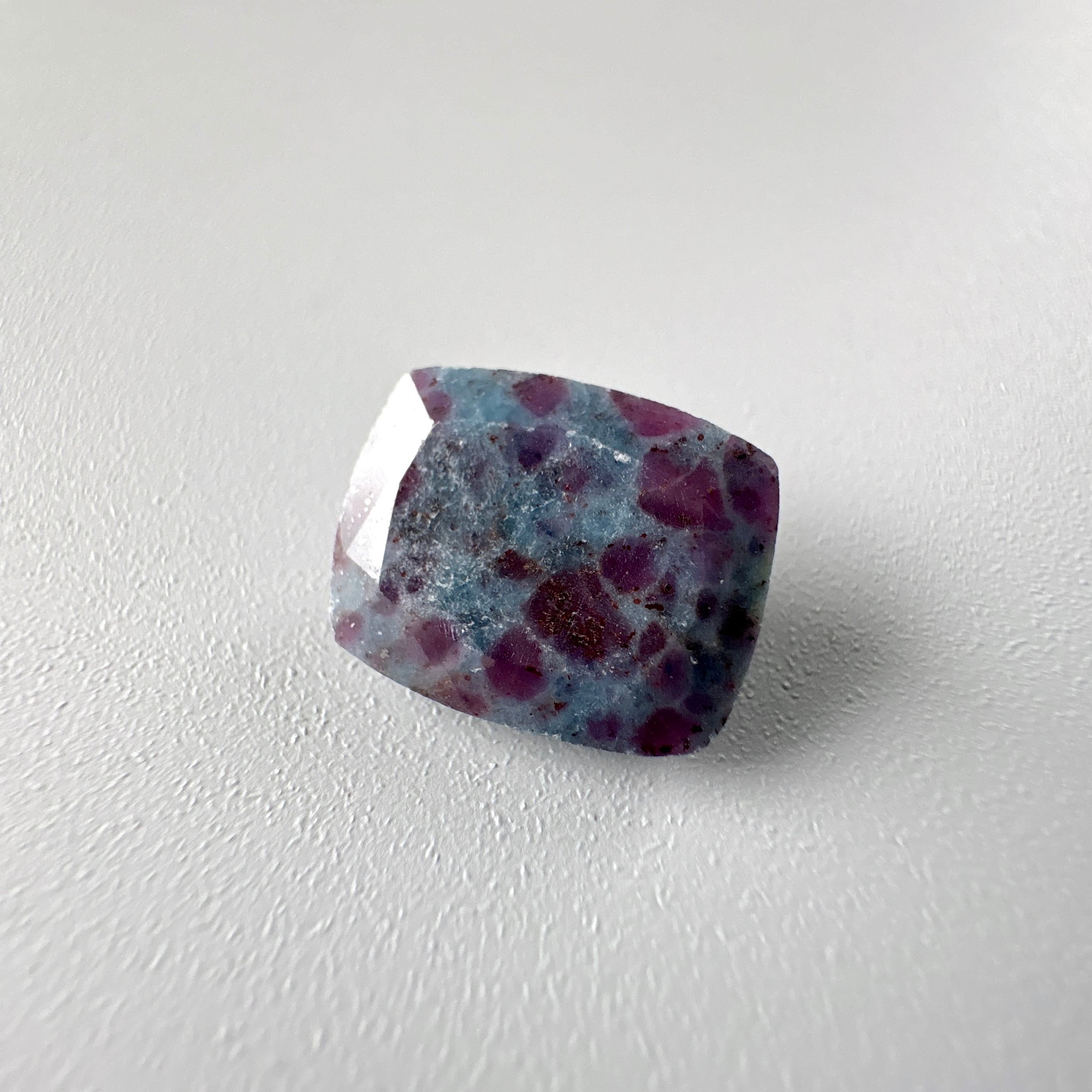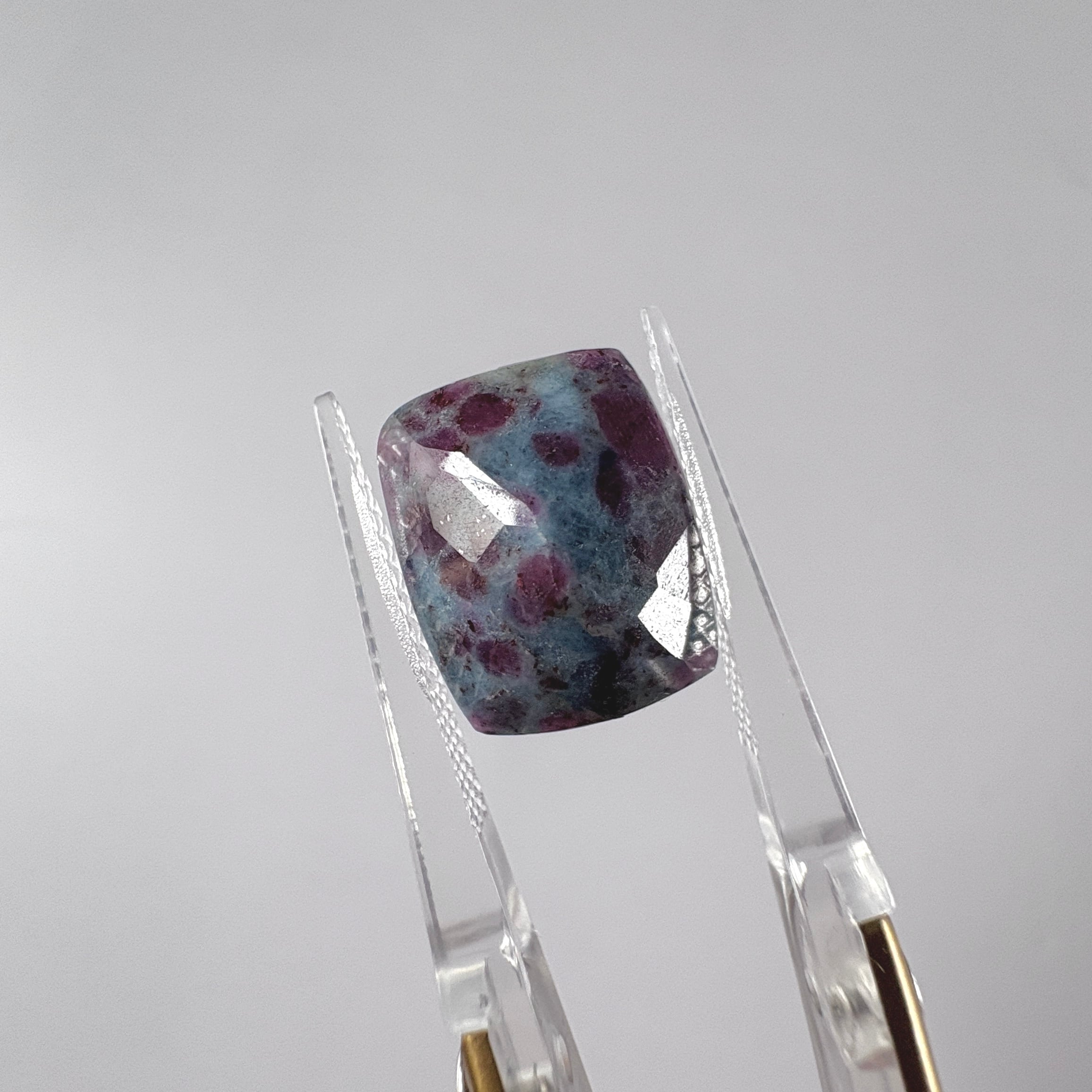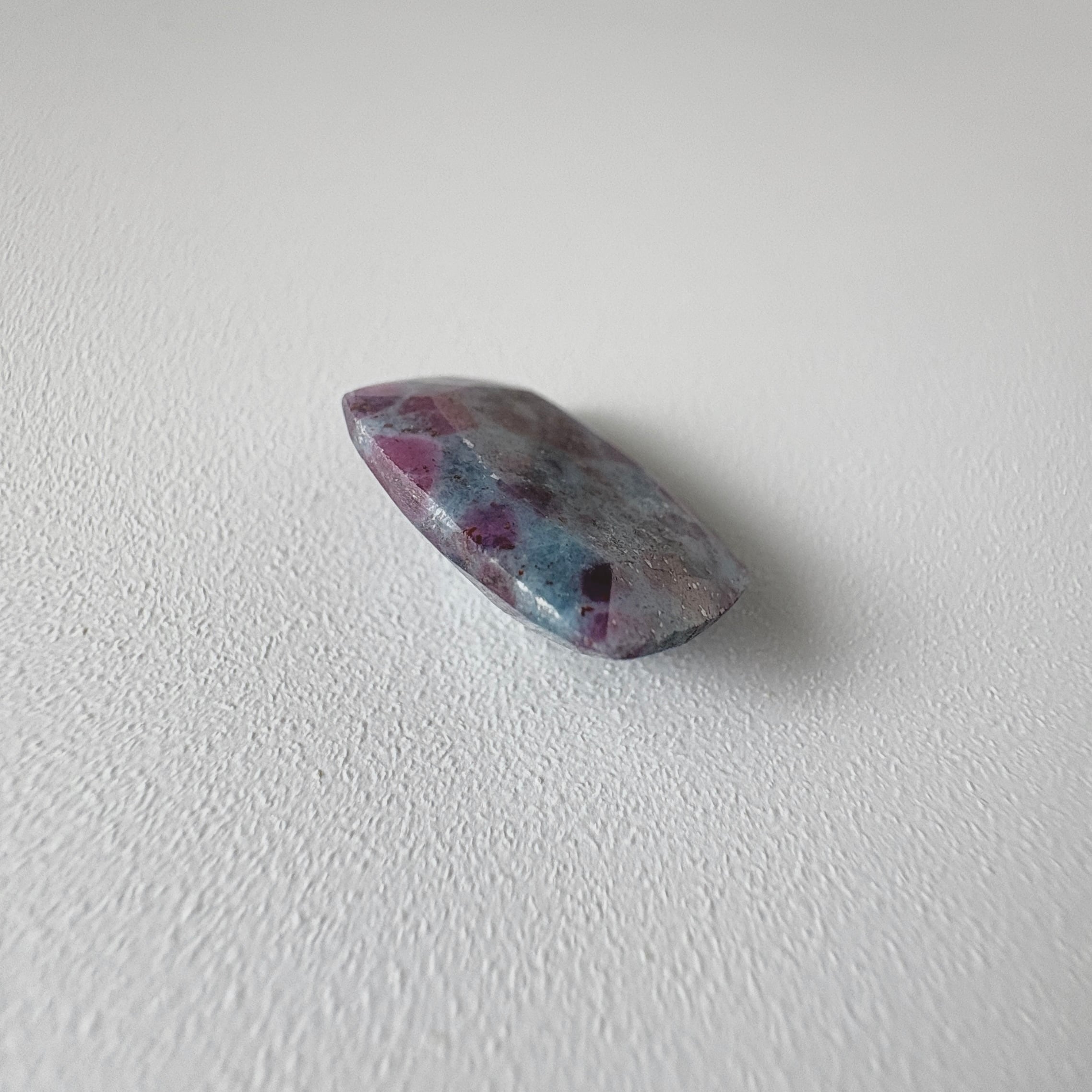 青いカイヤナイトにルビー (コランダム) が内包されたルビーインカイヤナイトです。