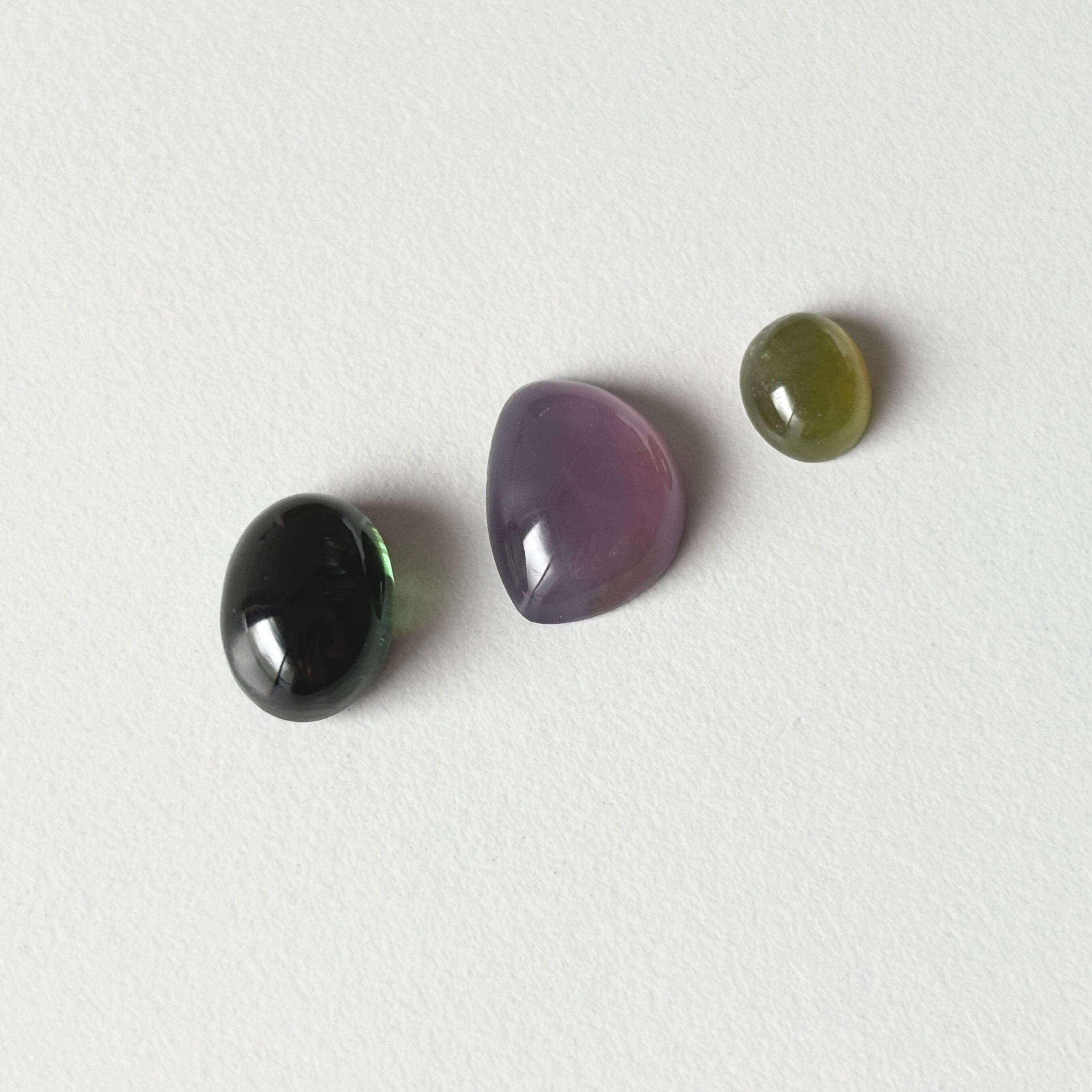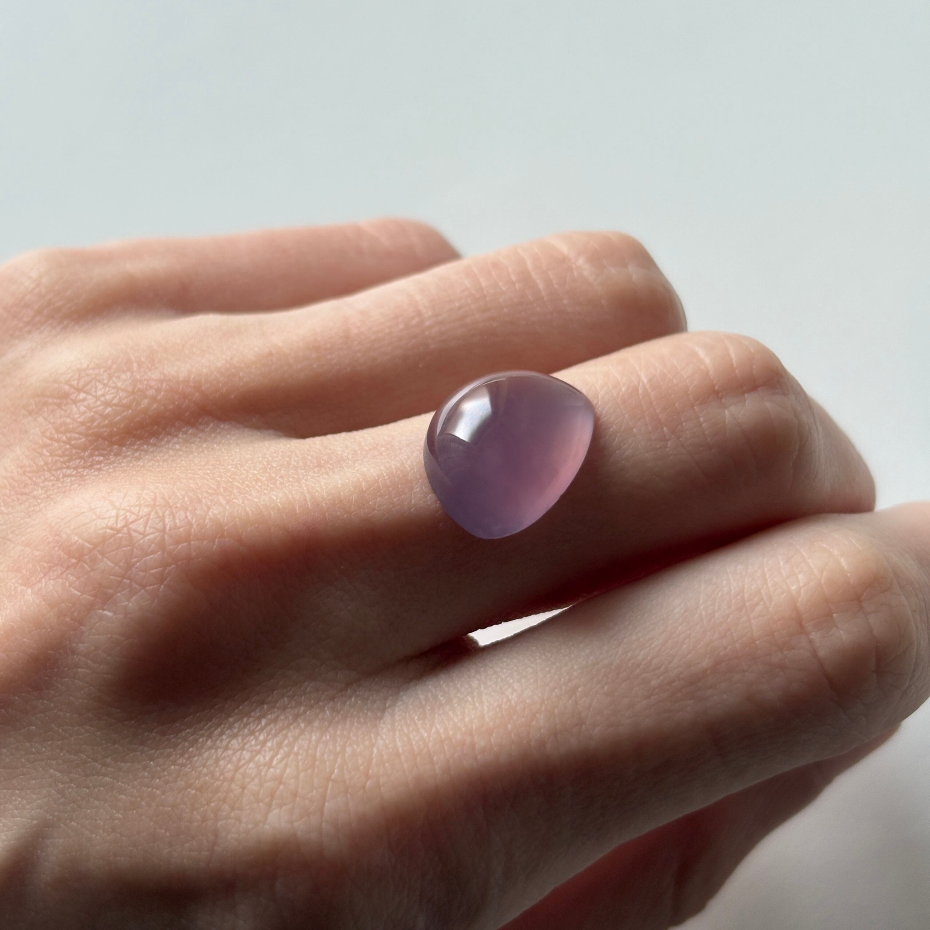 落ち着いたパープルのカルセドニーですが、角度によって深い紫からピンクに移り変わる甘いグラデーションになります。