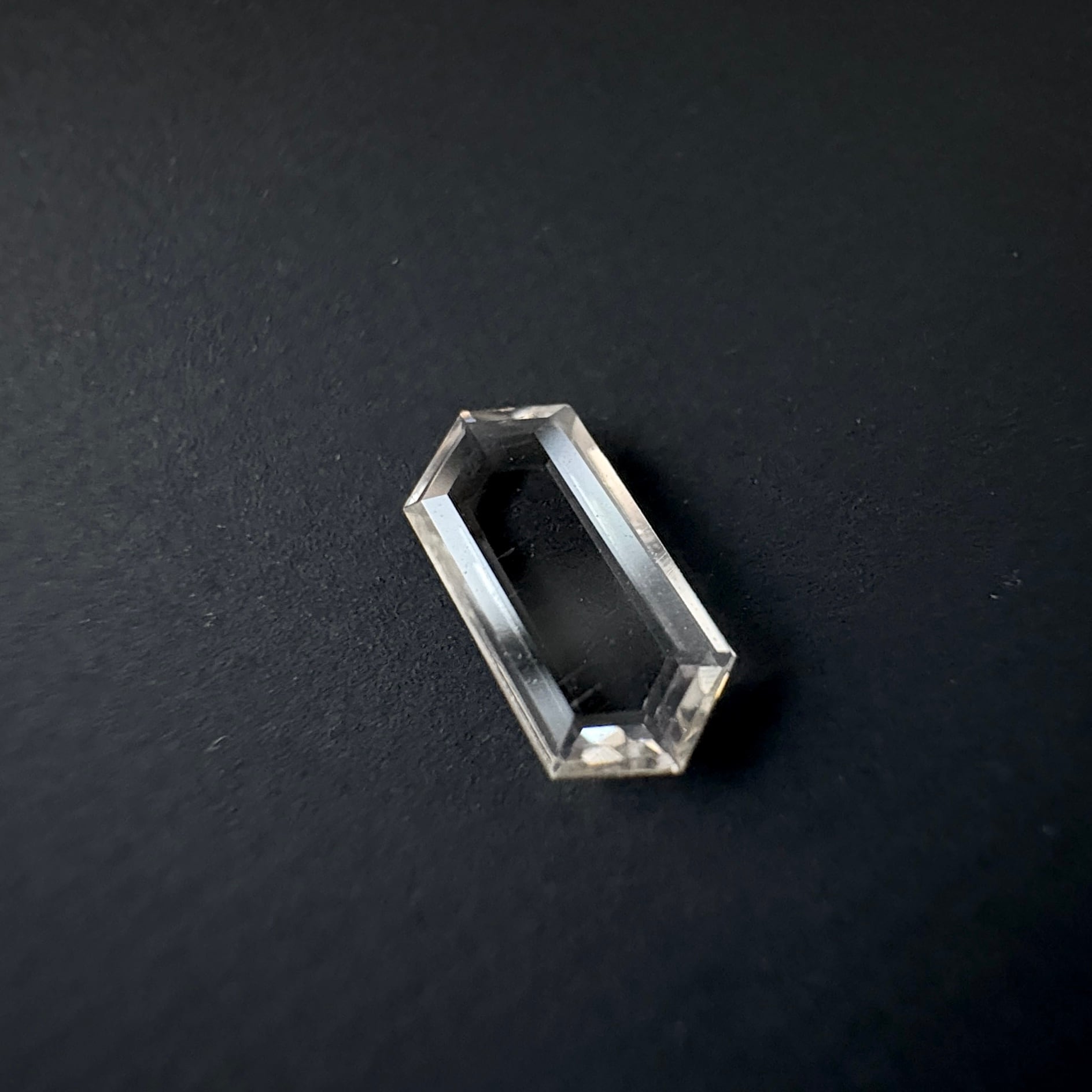 長六角形、ポートレートカットのトルマリンです。指乗せすると分からないくらいほんのりベージュピンクのニアカラーレスです。