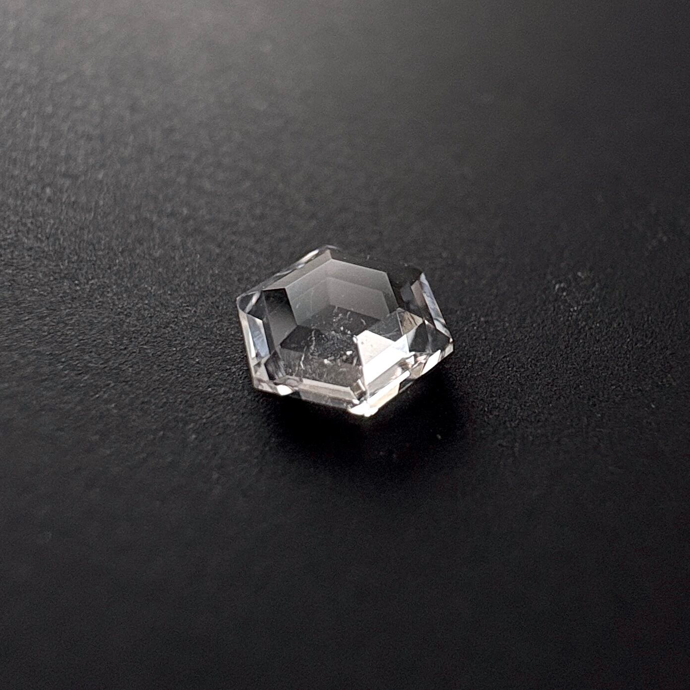 六角形、ポートレートカットのトルマリンです。指乗せすると分からないくらいほんのりピンクのニアカラーレスです。