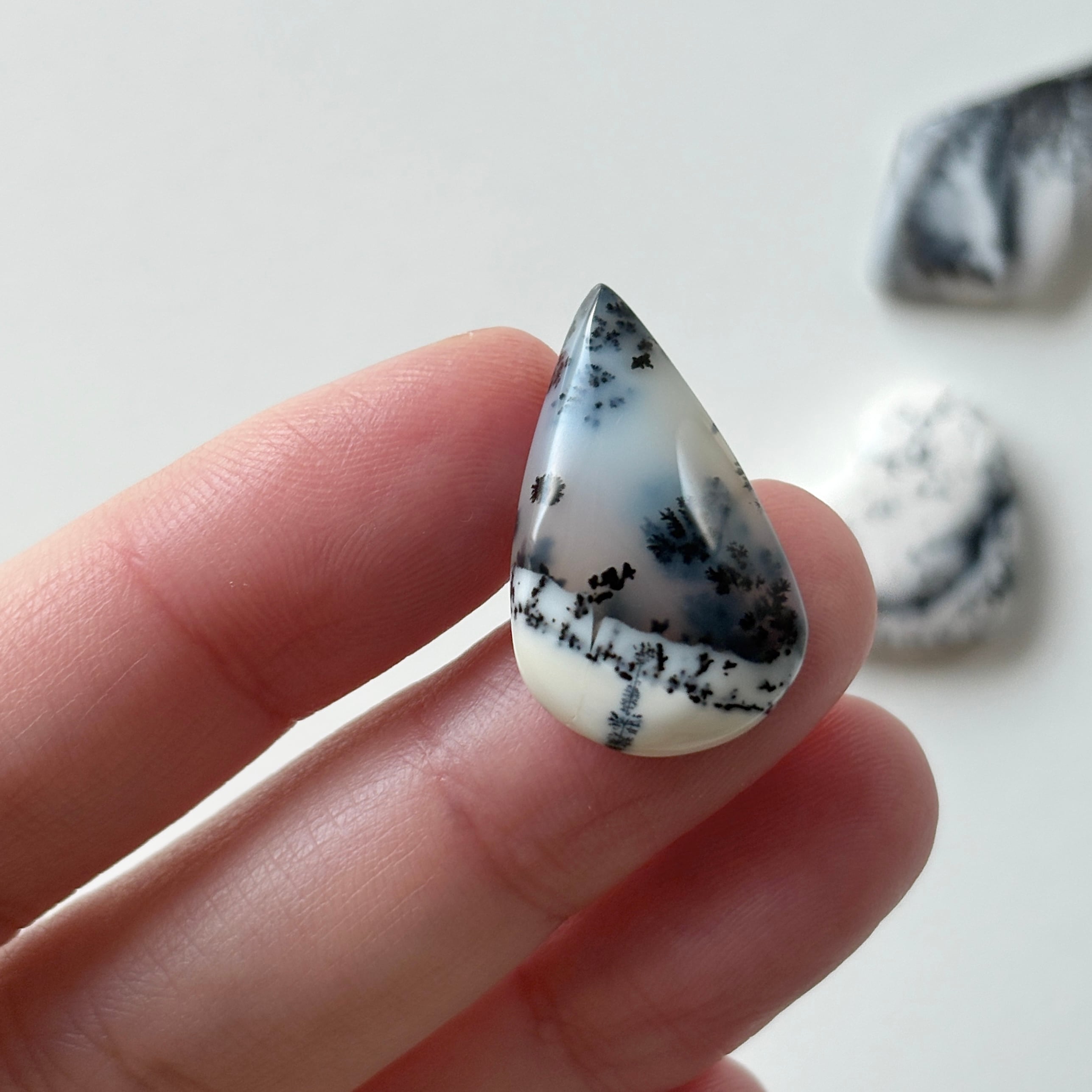 遊色効果を持たない白いオパールに、樹枝状の模様が入ったデンドリティックオパールです。