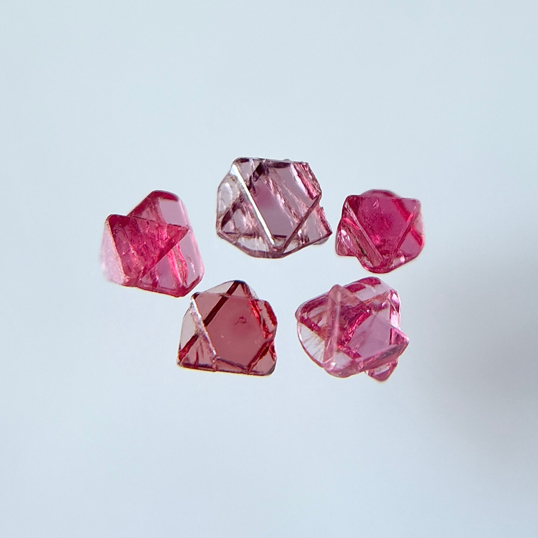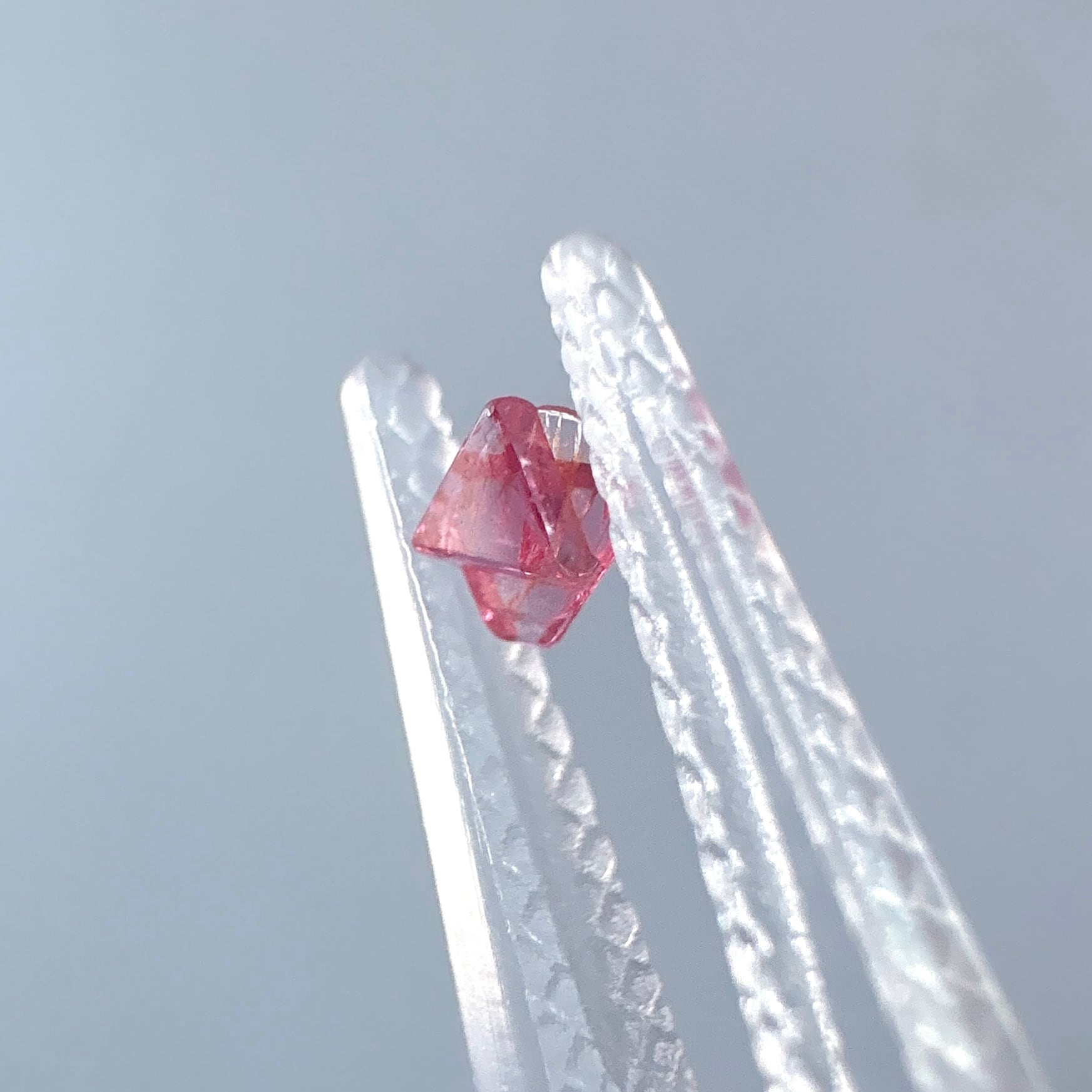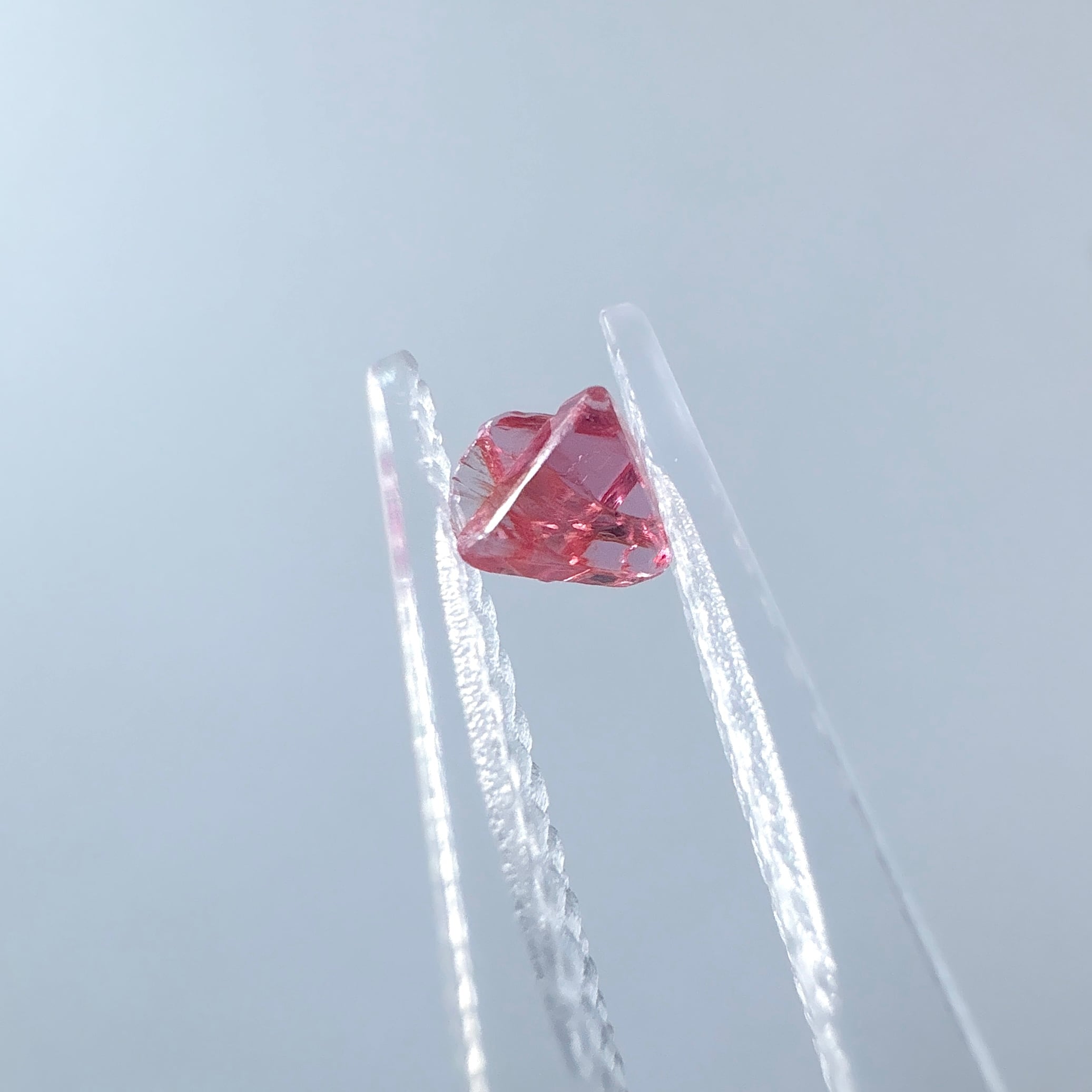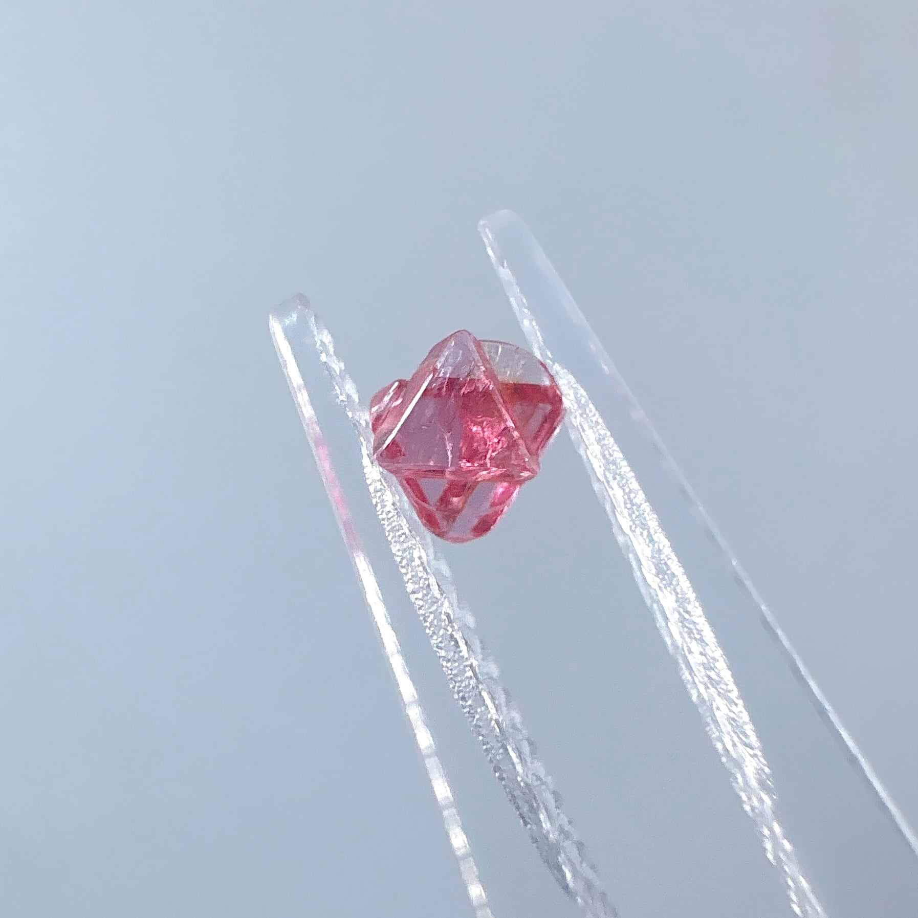 こちらは結晶が180度逆になっている六芒星タイプで、明るく透明感のあるピンク色です。