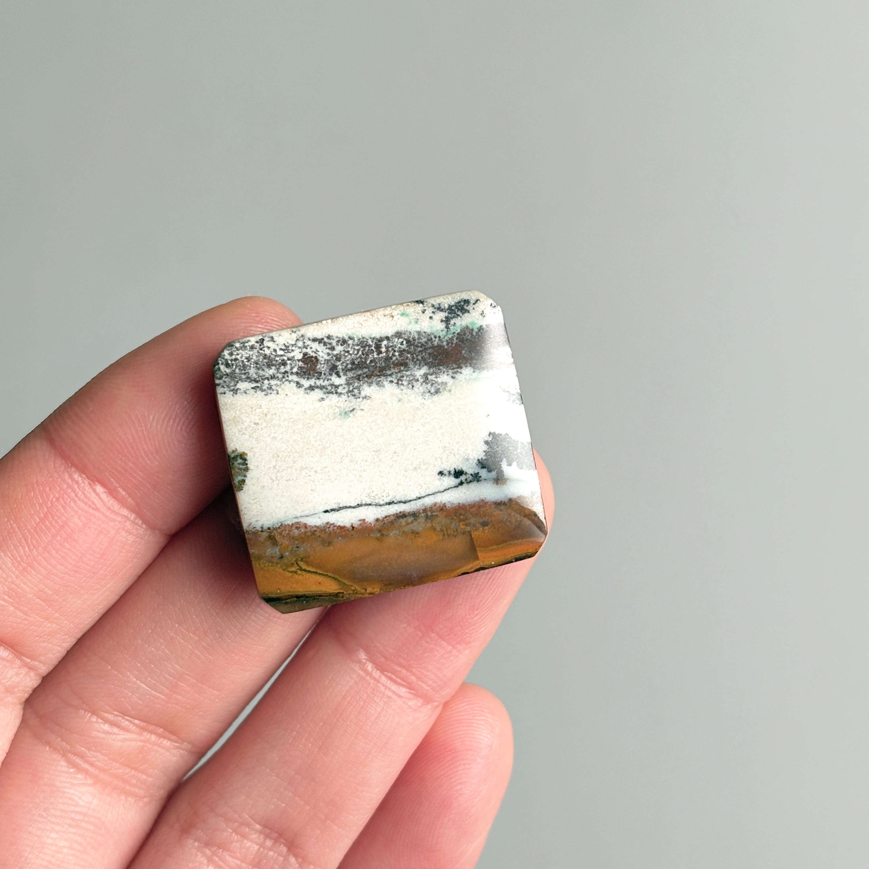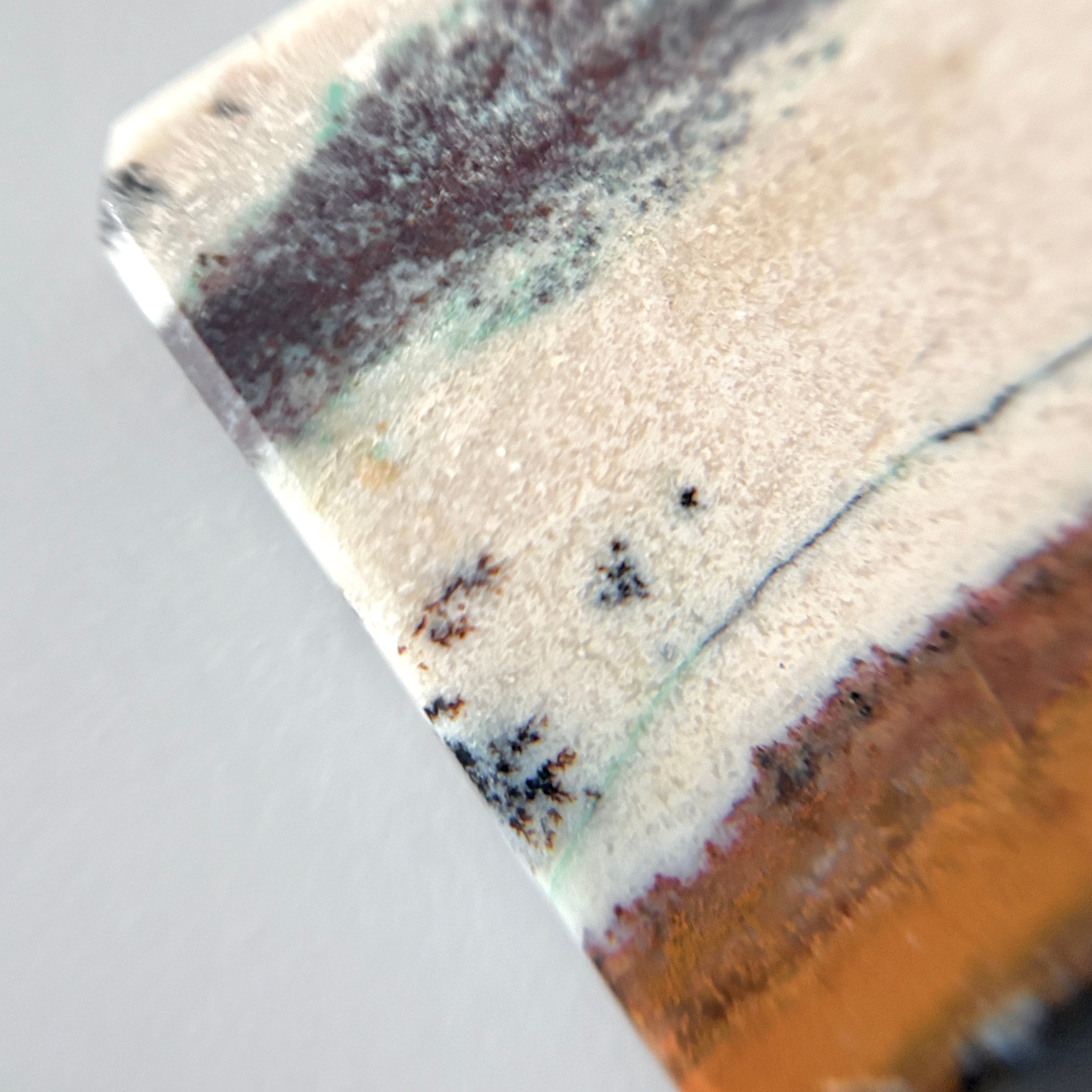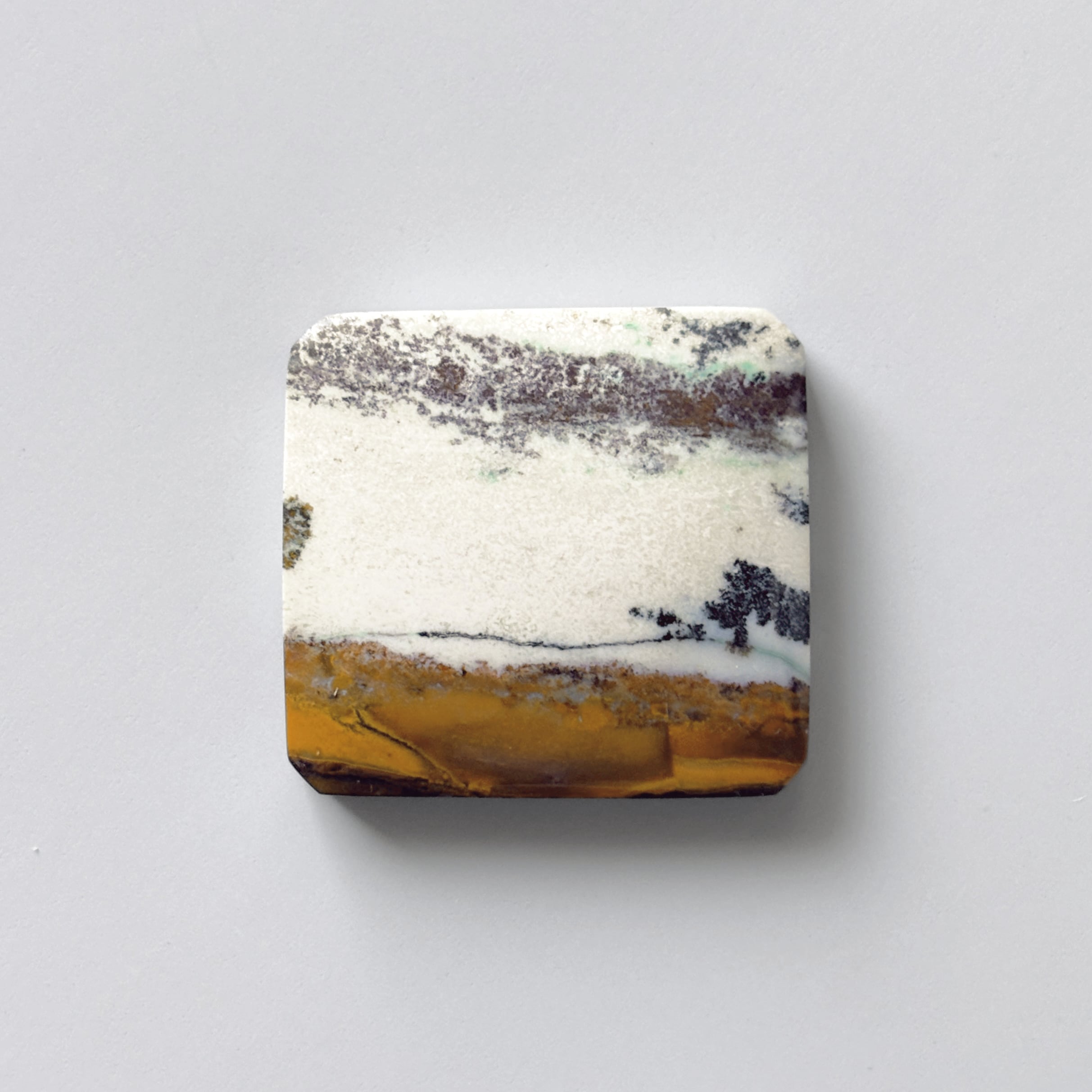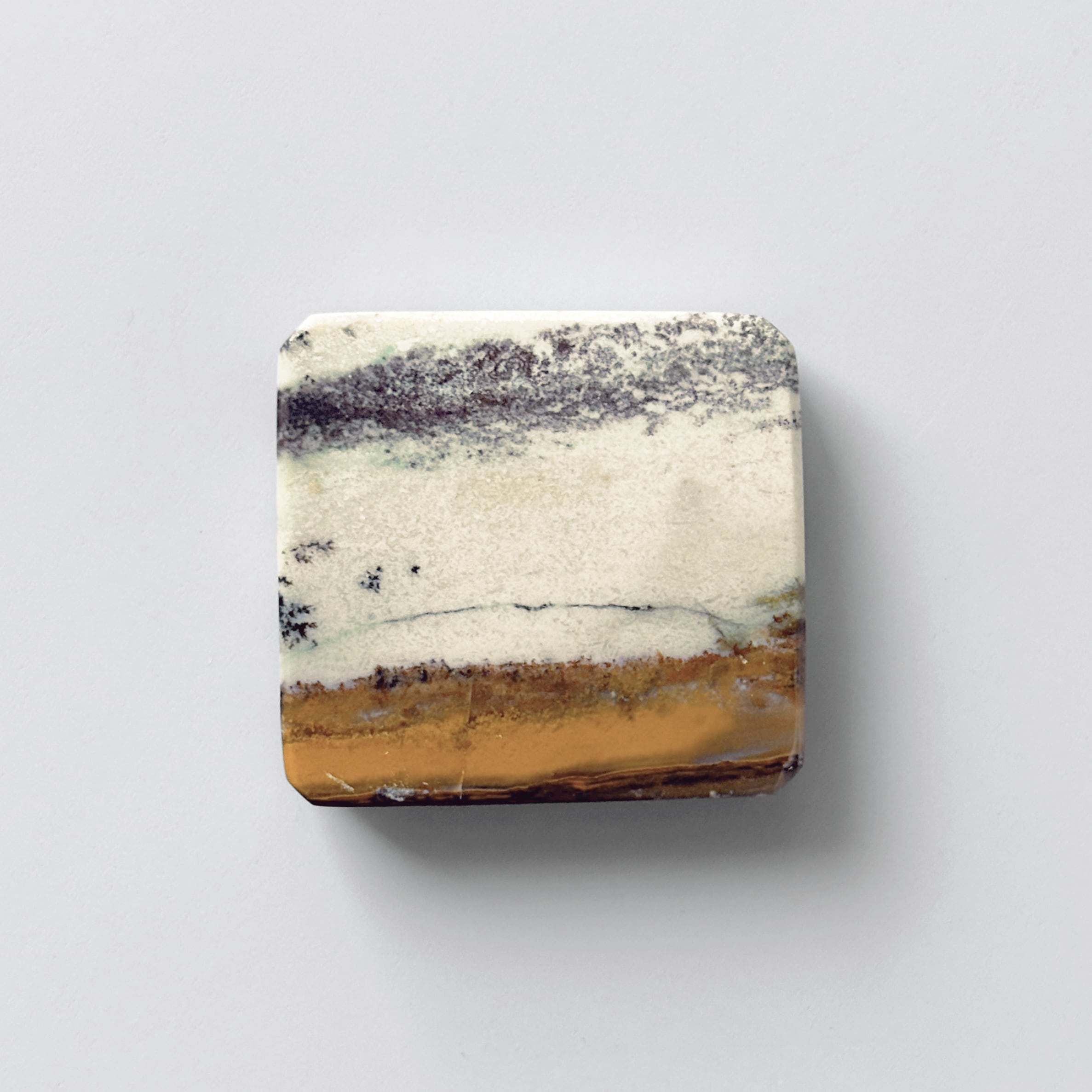 長い年月をかけてオパール化したペトリファイドウッド (植物の化石) です。風景画のようなものを選びました。