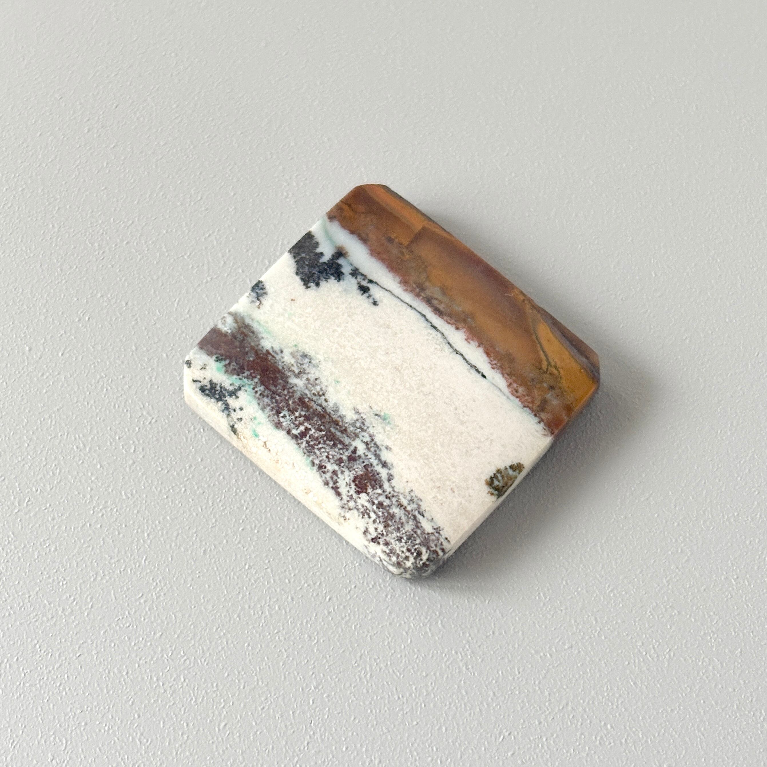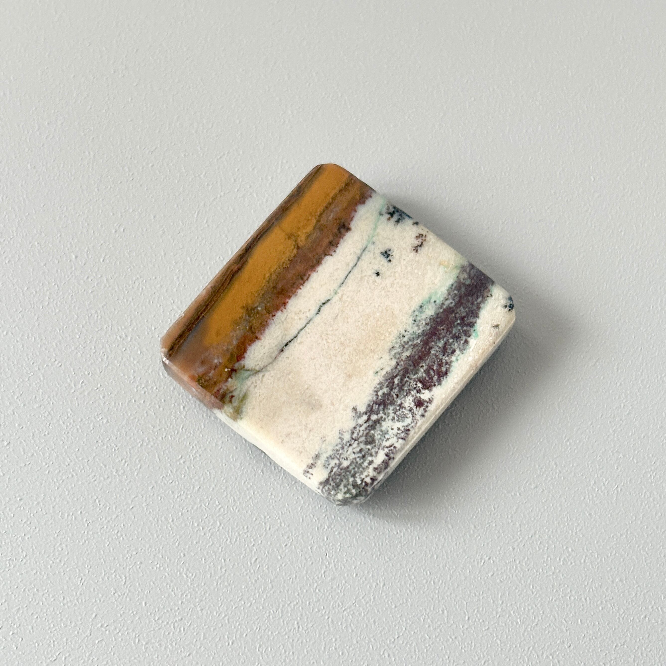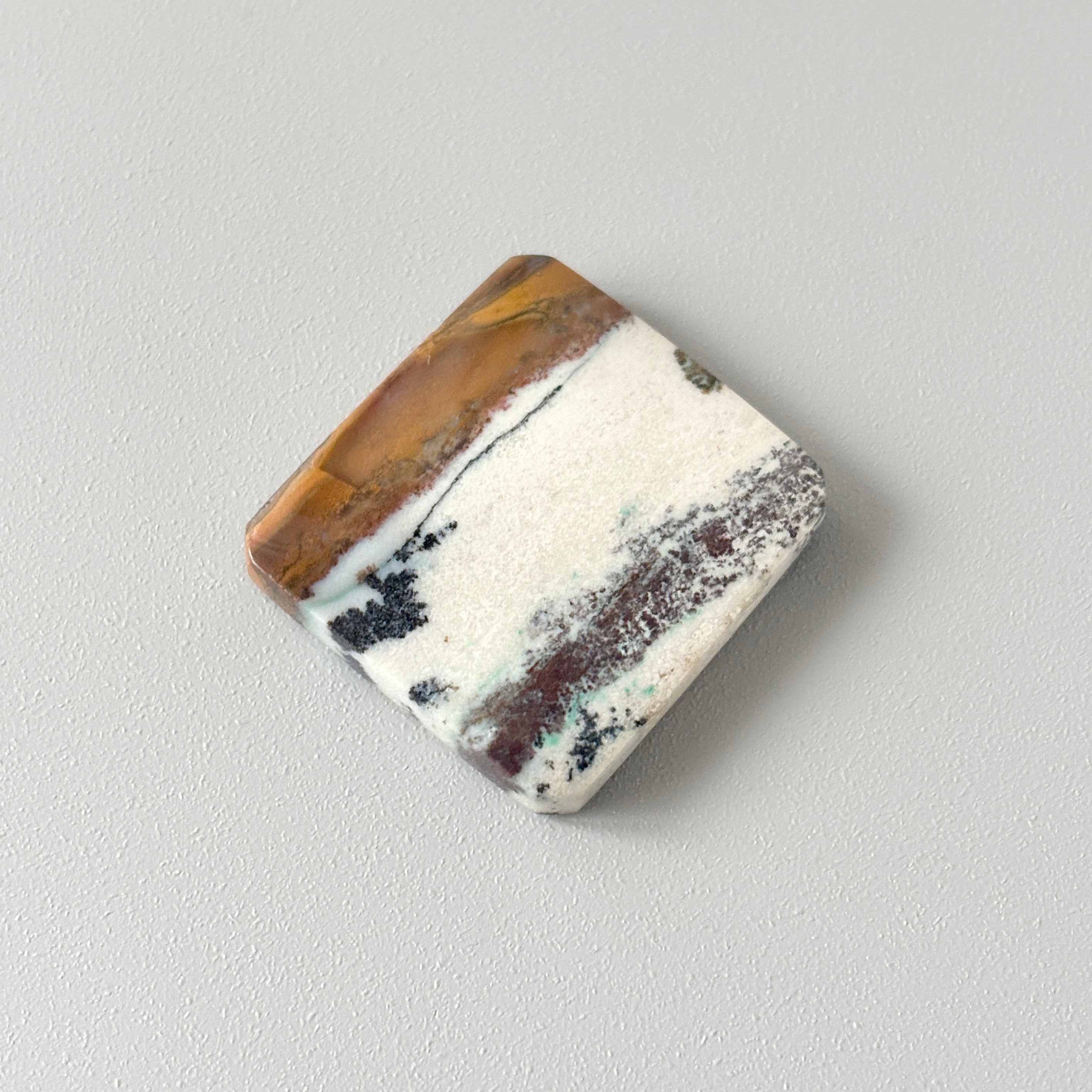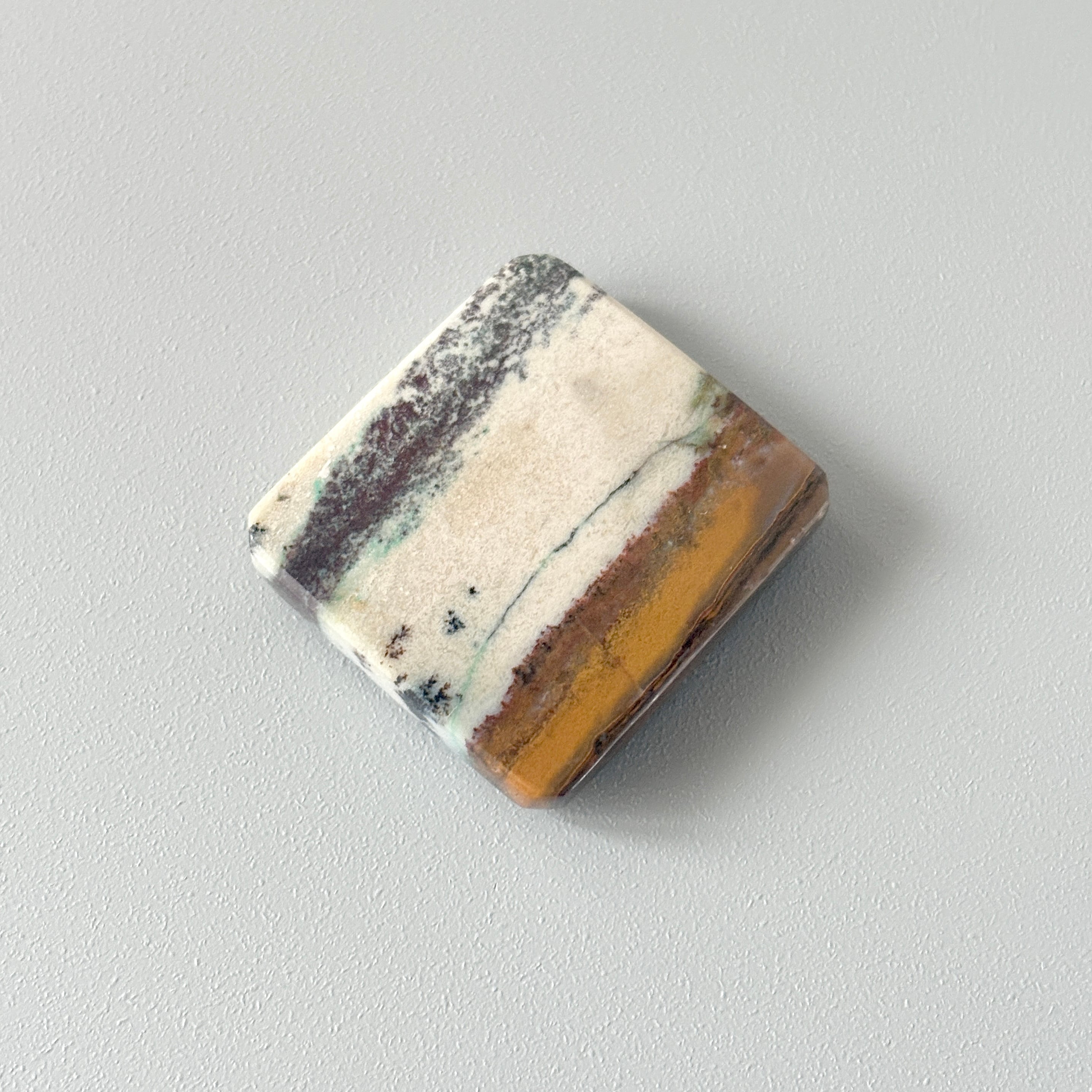 長い年月をかけてオパール化したペトリファイドウッド (植物の化石) です。風景画のようなものを選びました。