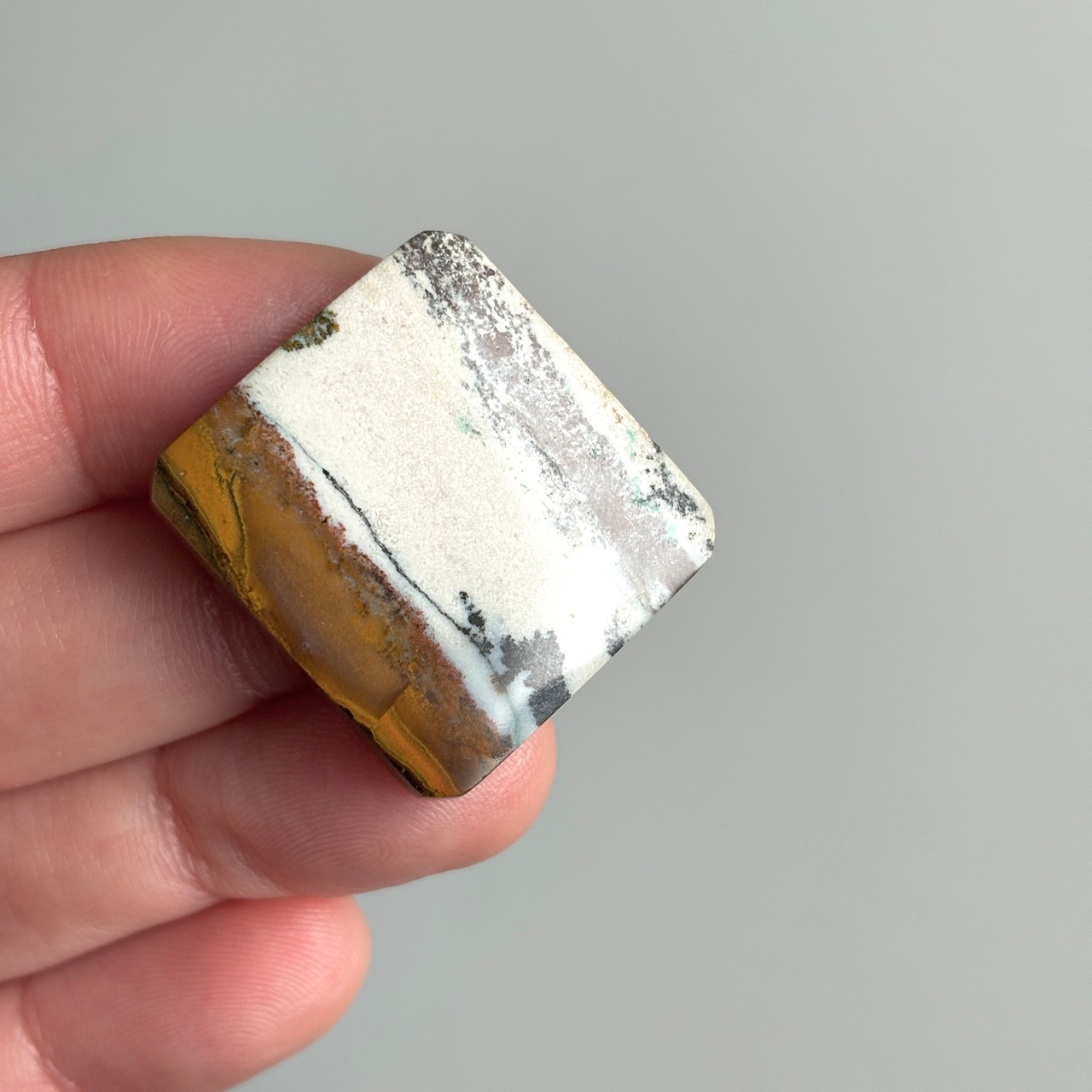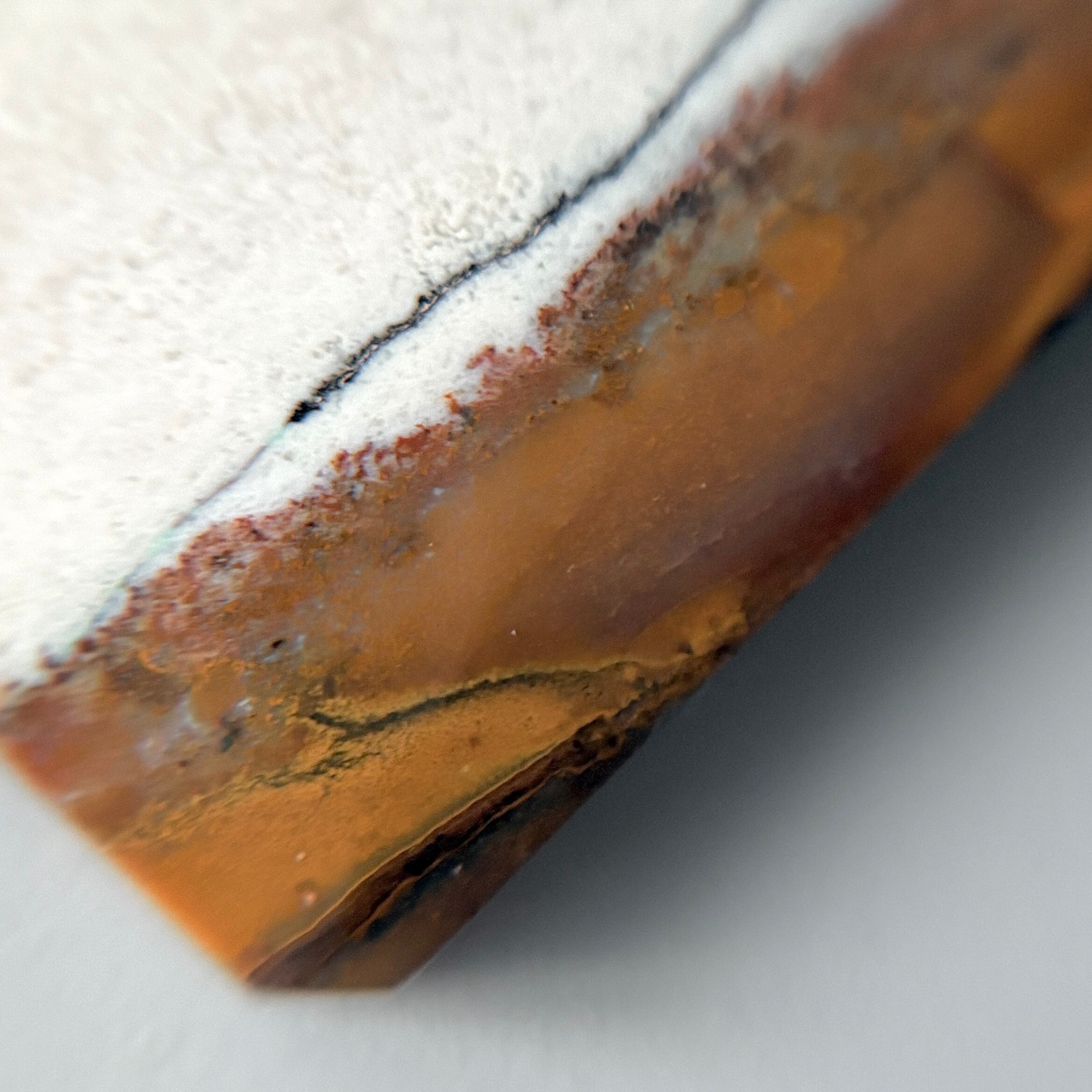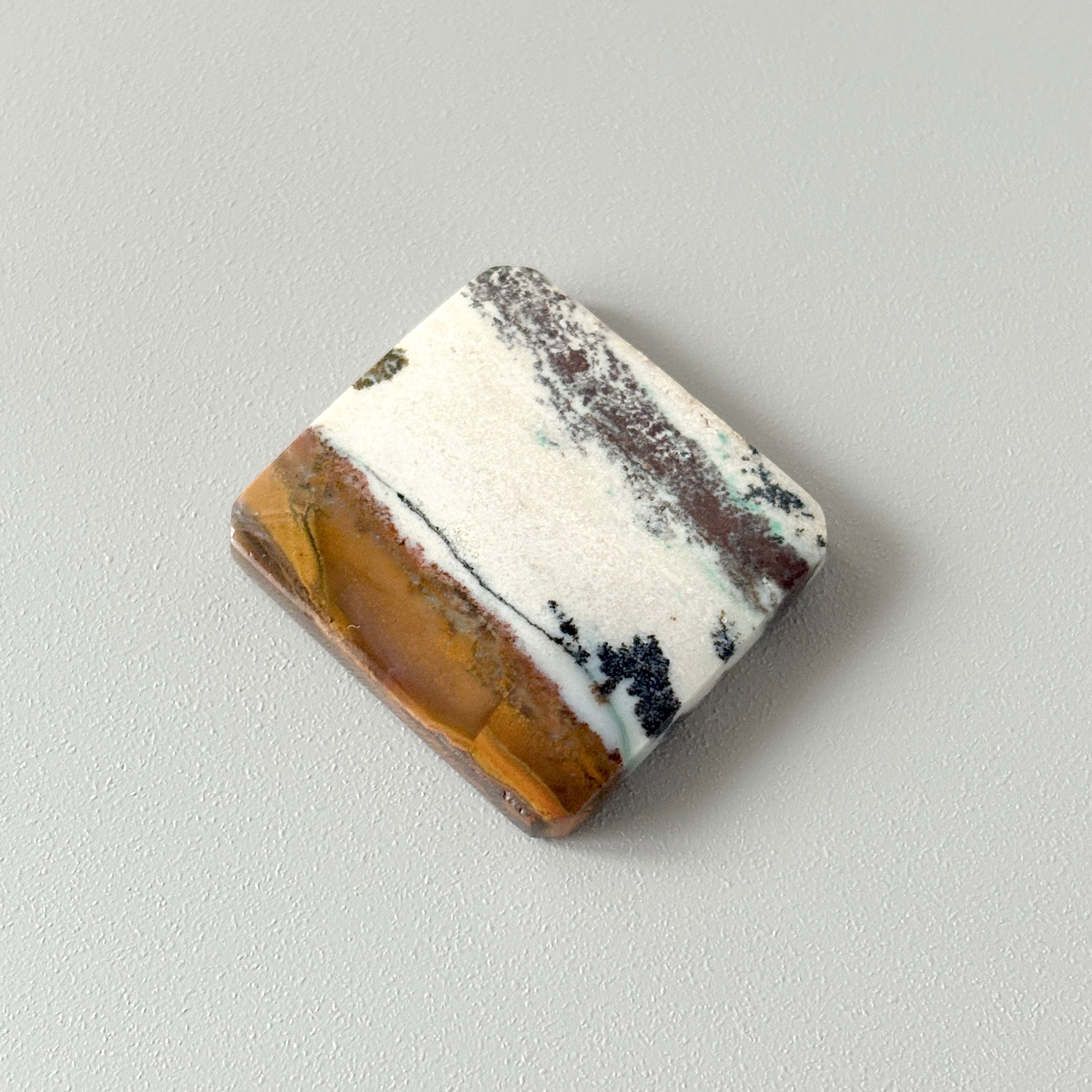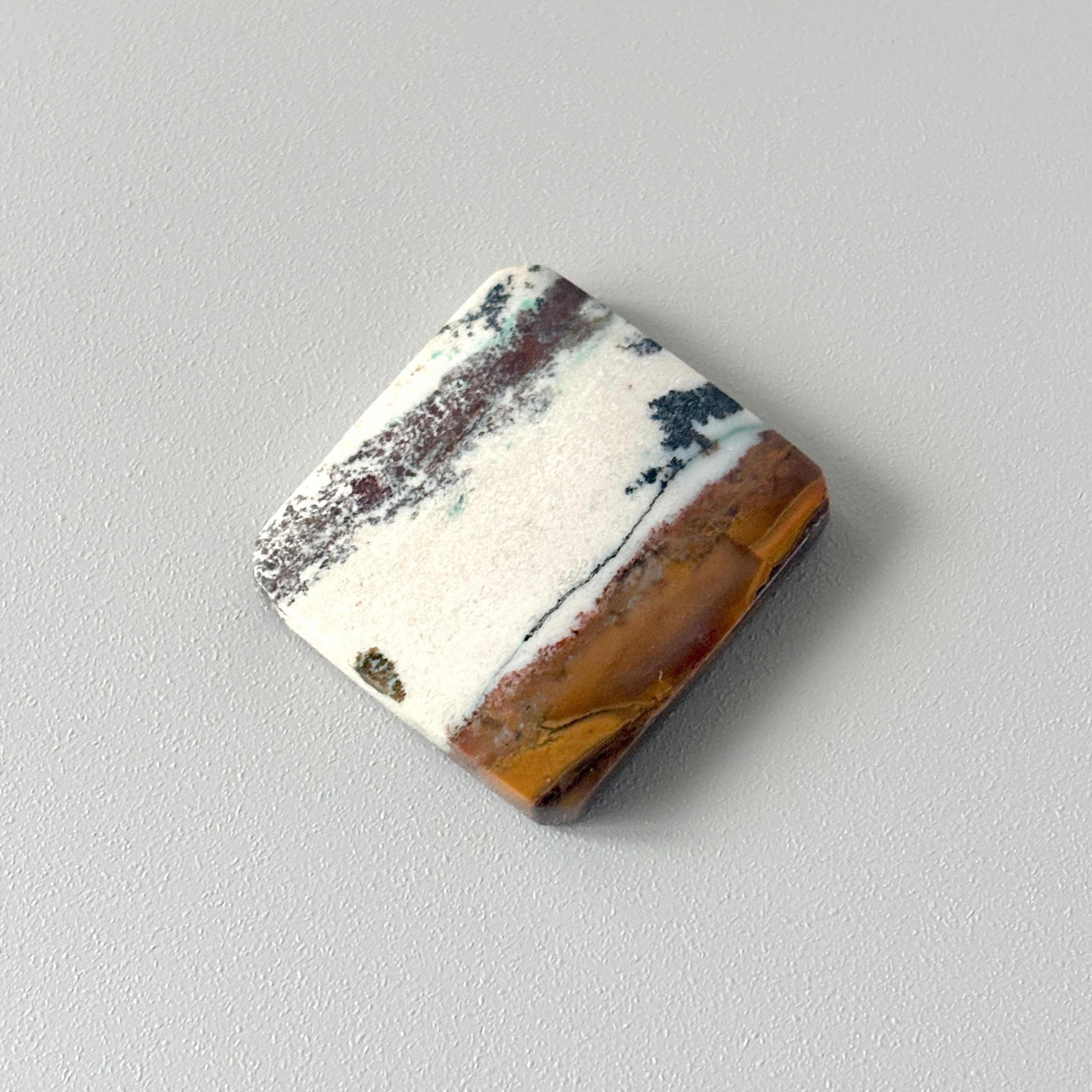 長い年月をかけてオパール化したペトリファイドウッド (植物の化石) です。風景画のようなものを選びました。