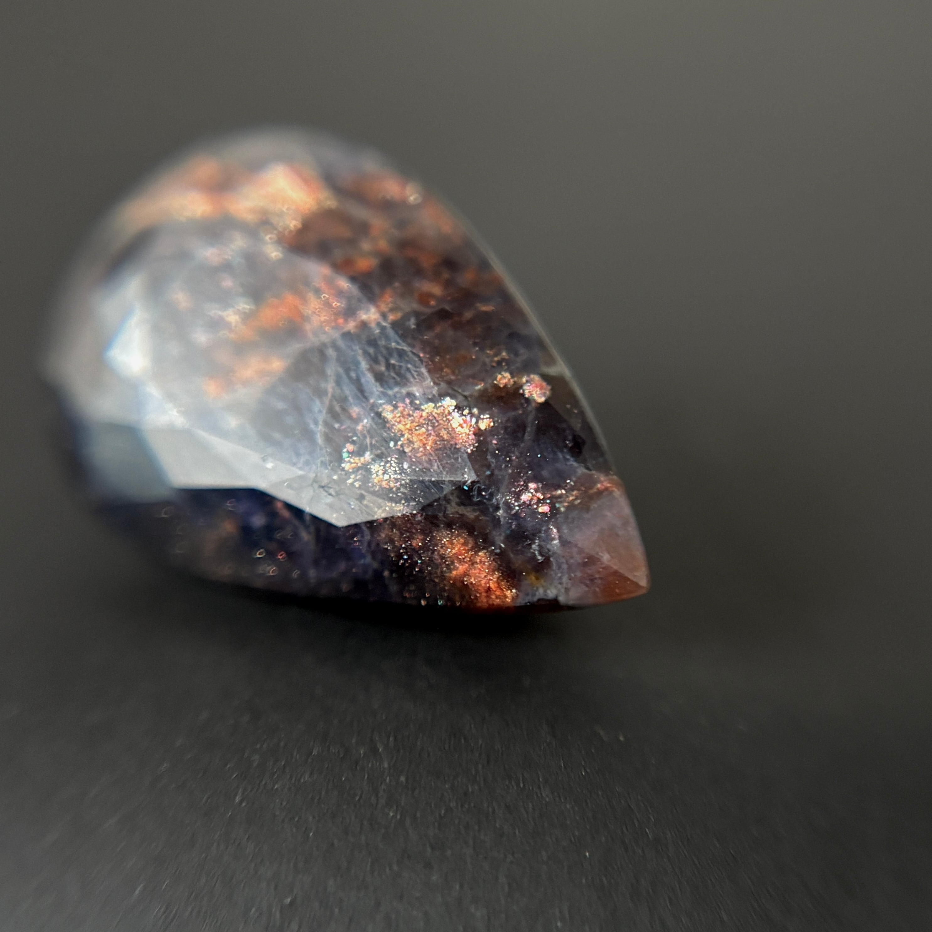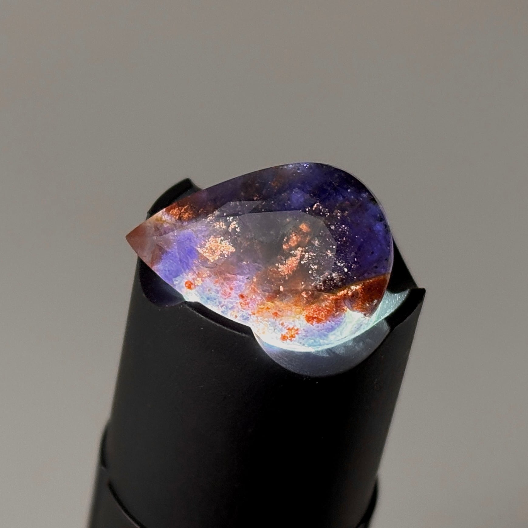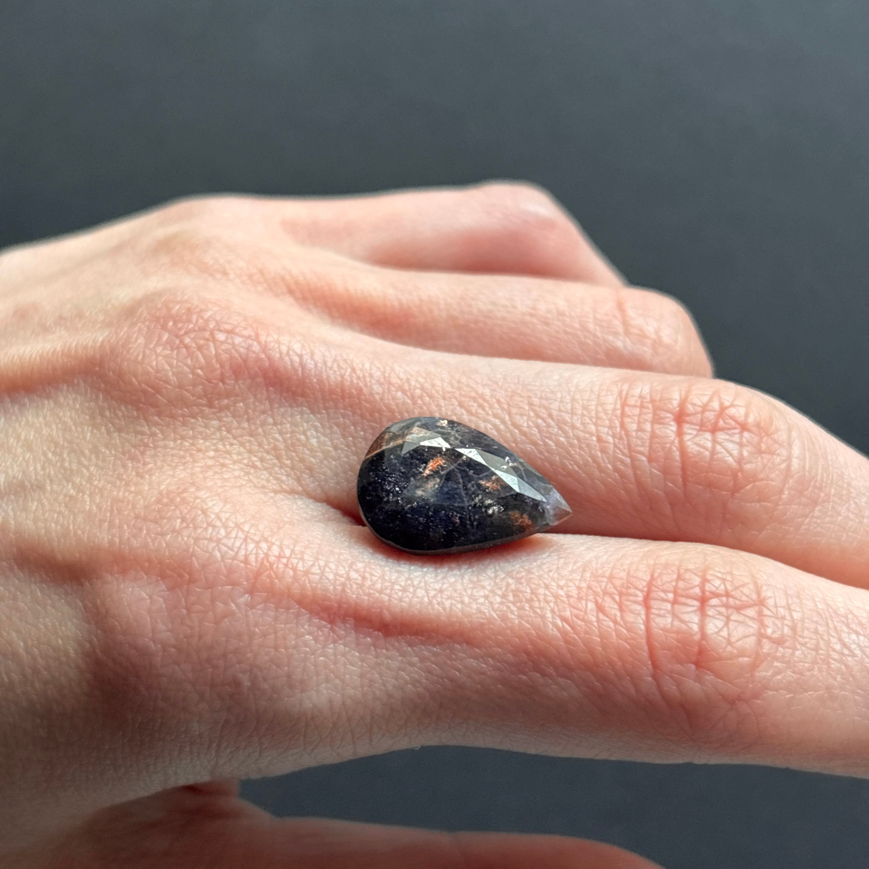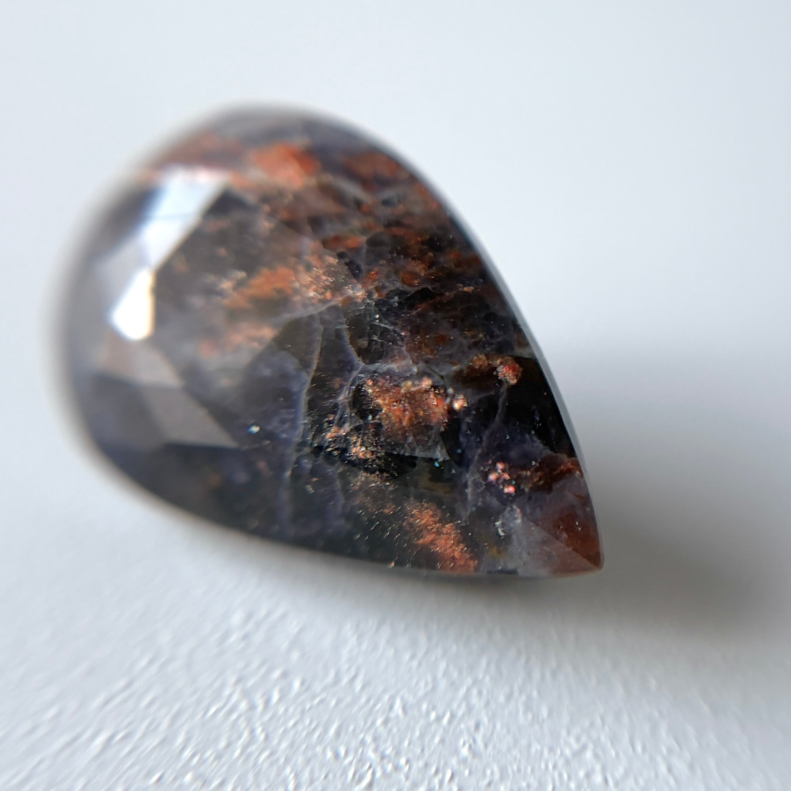 ゴールドのサンストーンが輝く、10.53ctのアイオライトです。