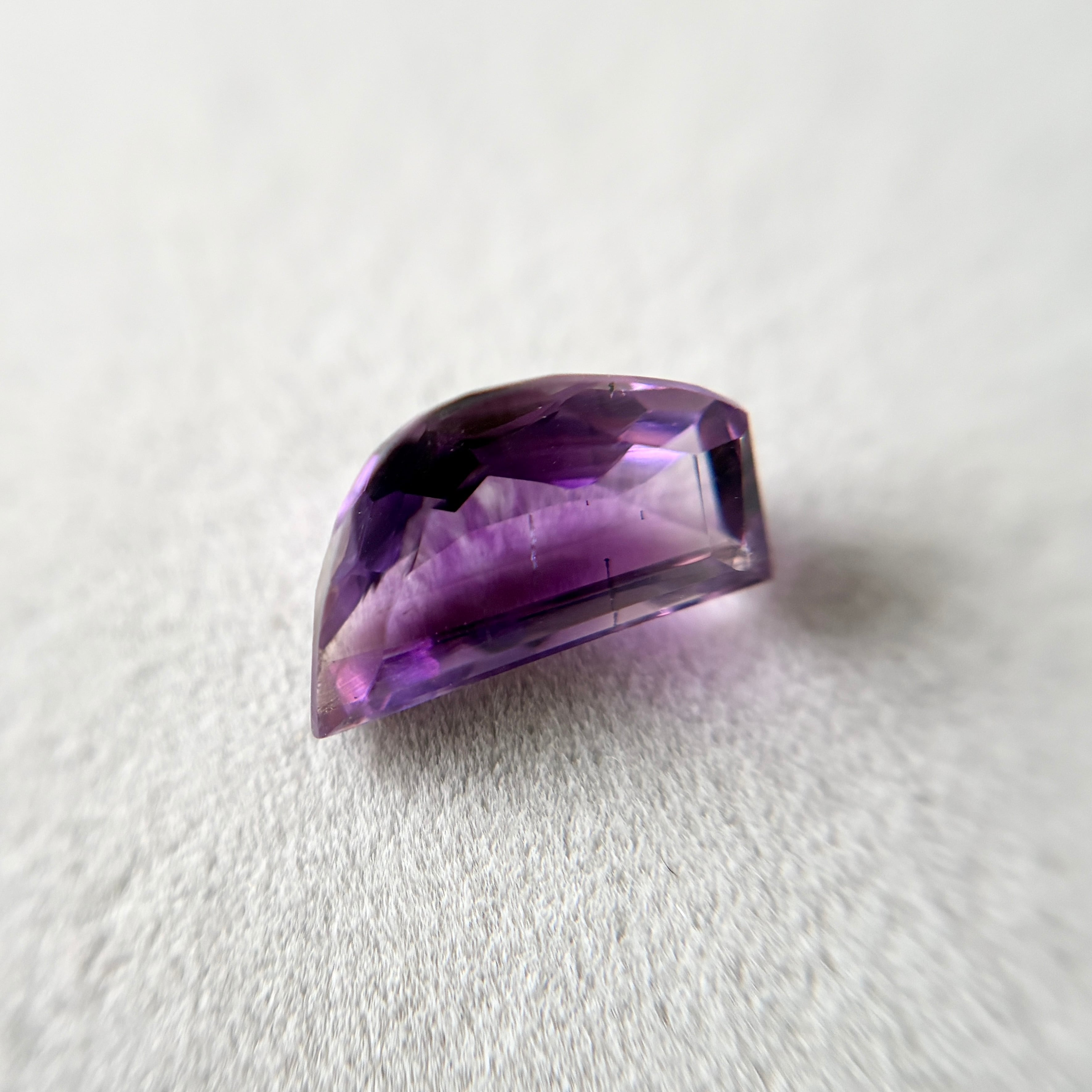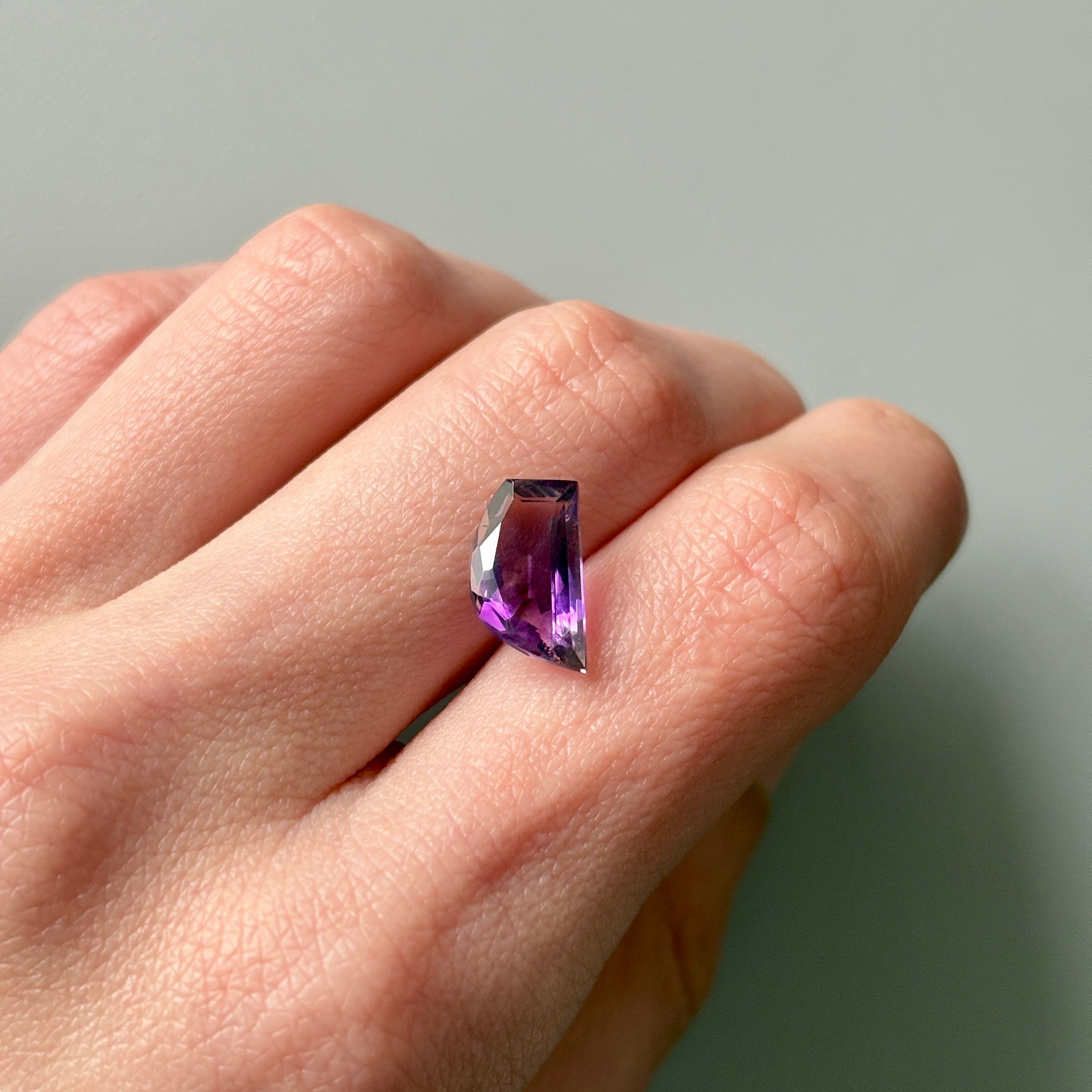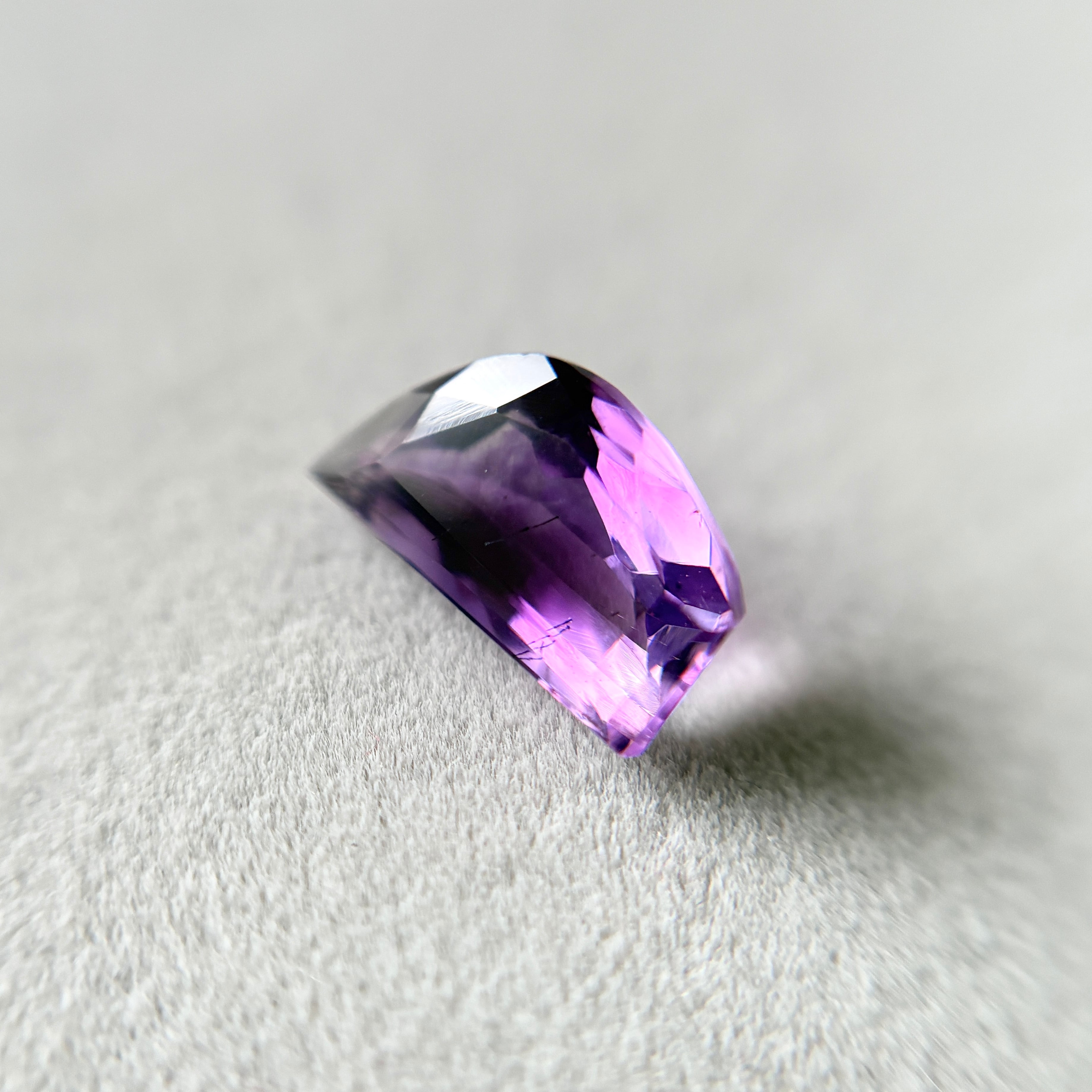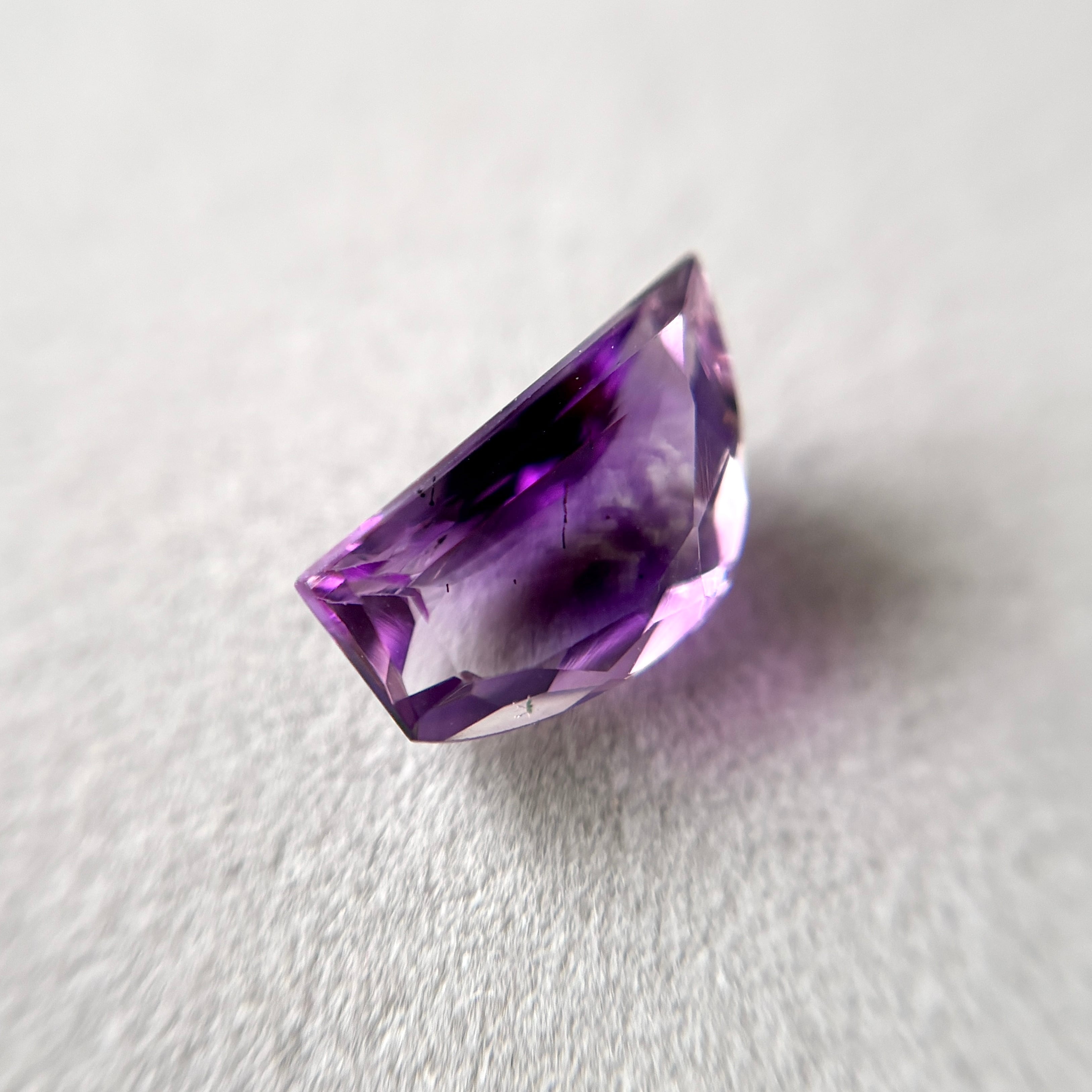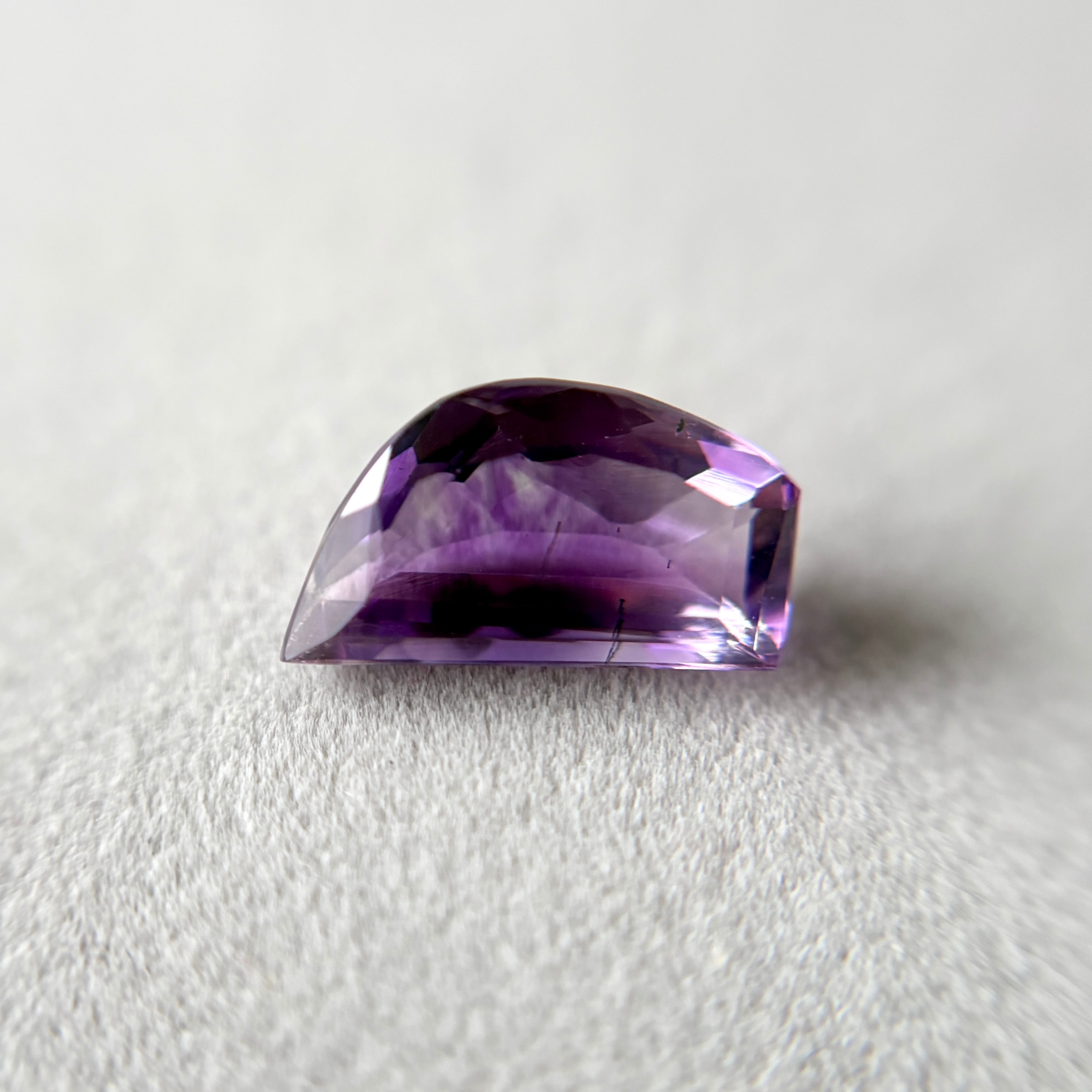 内包物は少なめですが、多様な色むらと、時折ビビッドなピンクに輝くアメシストの色合いが楽しめます。
