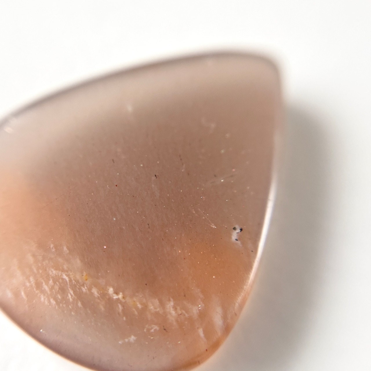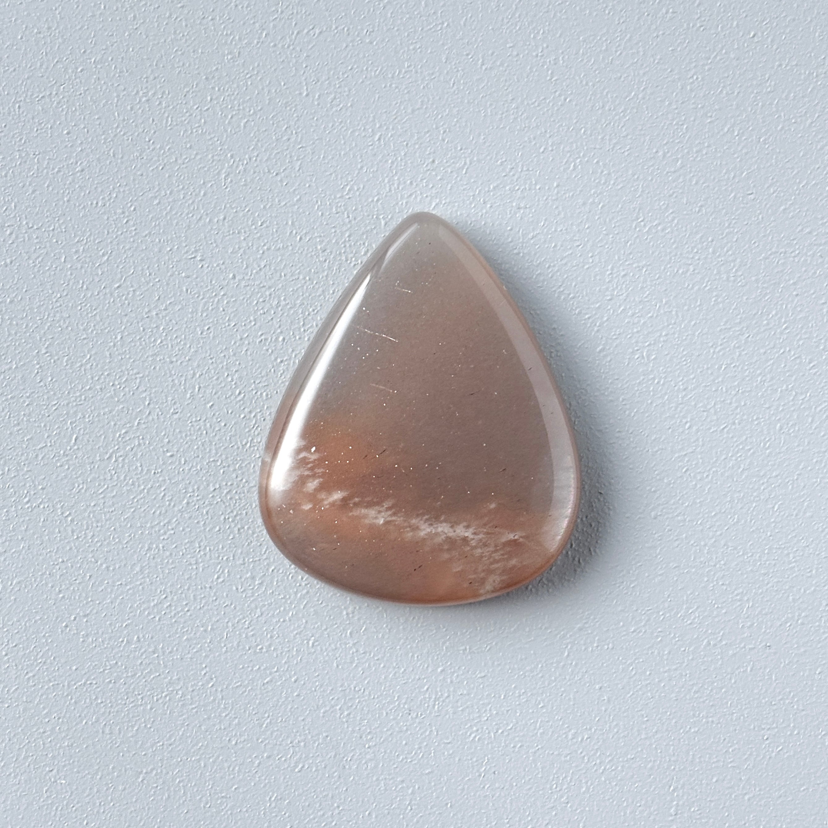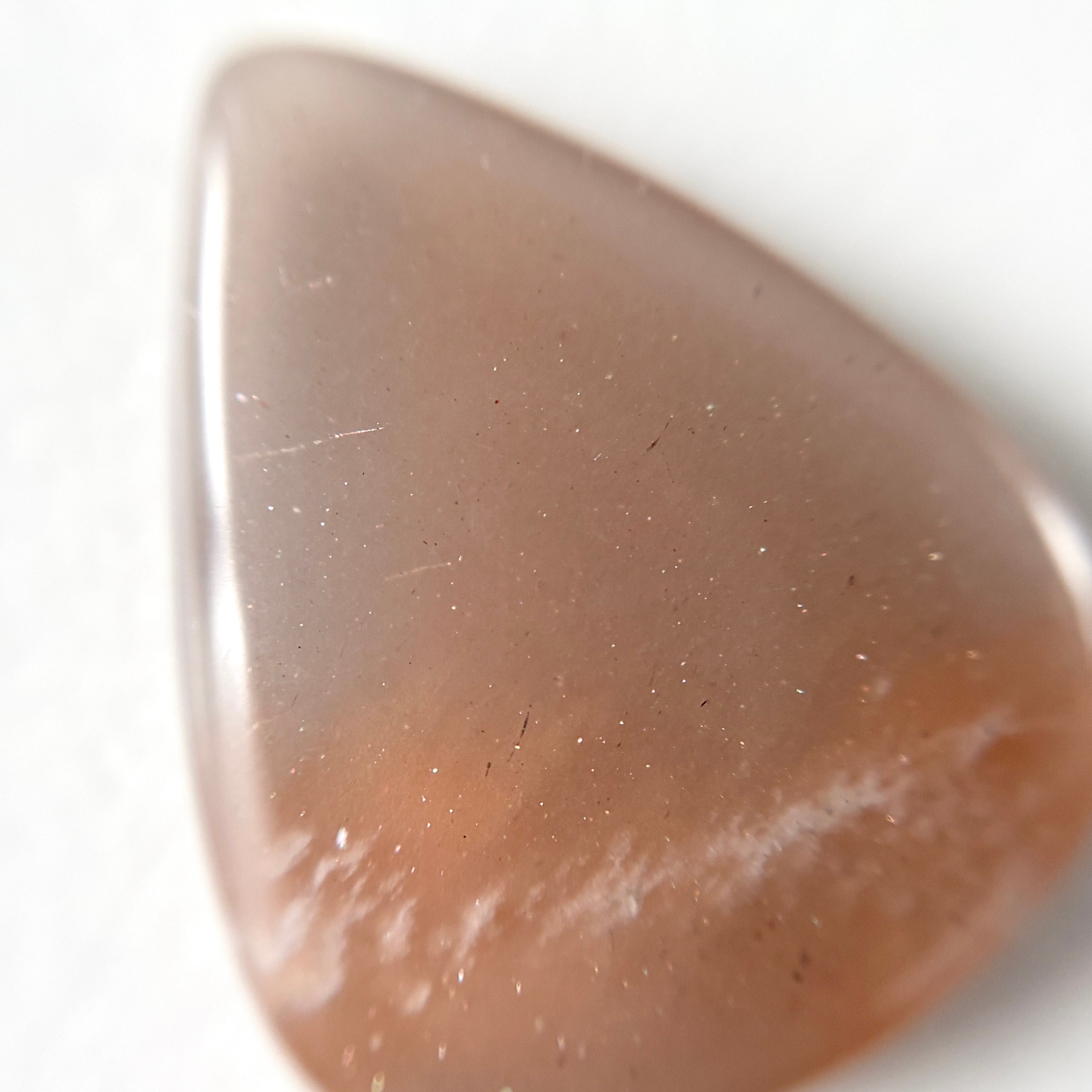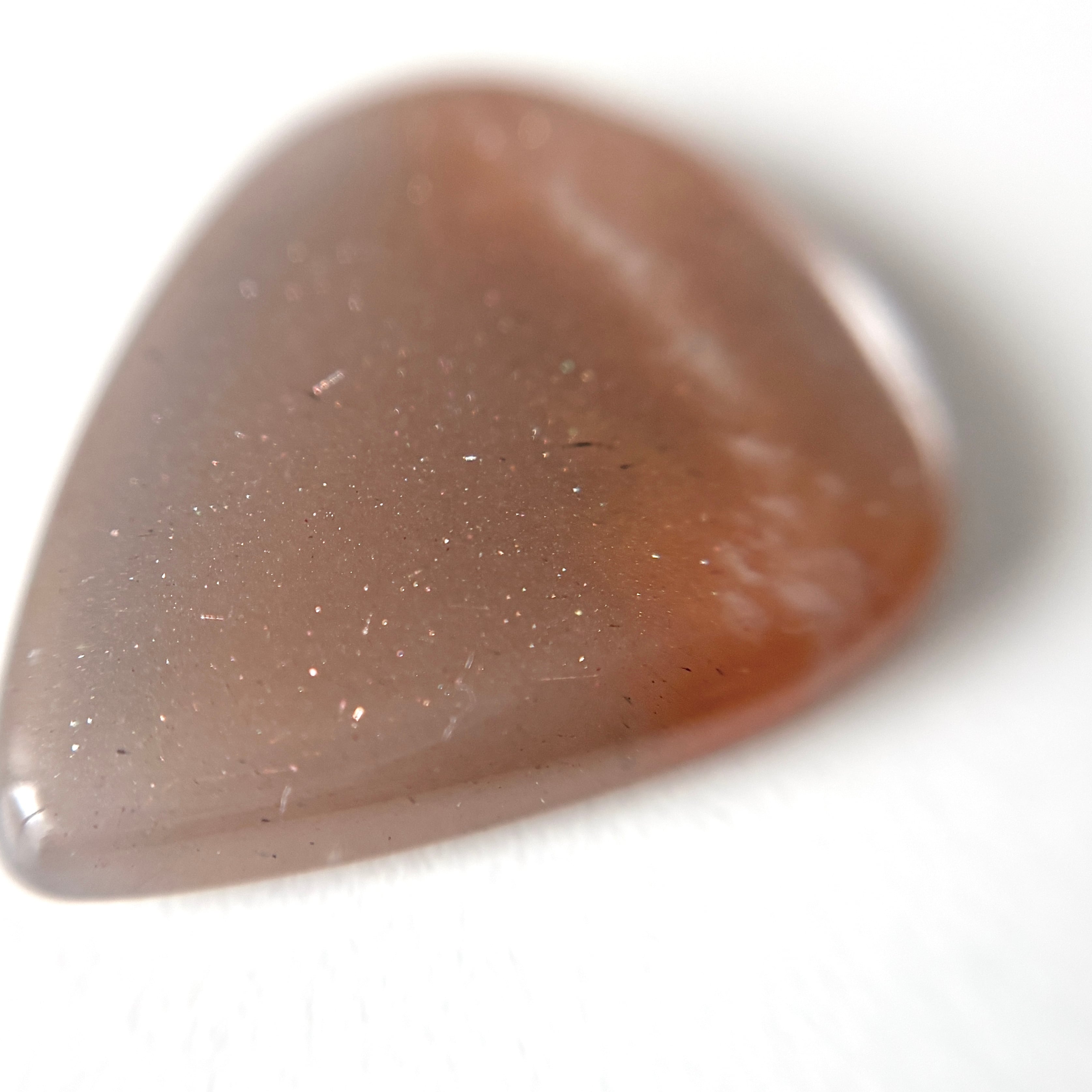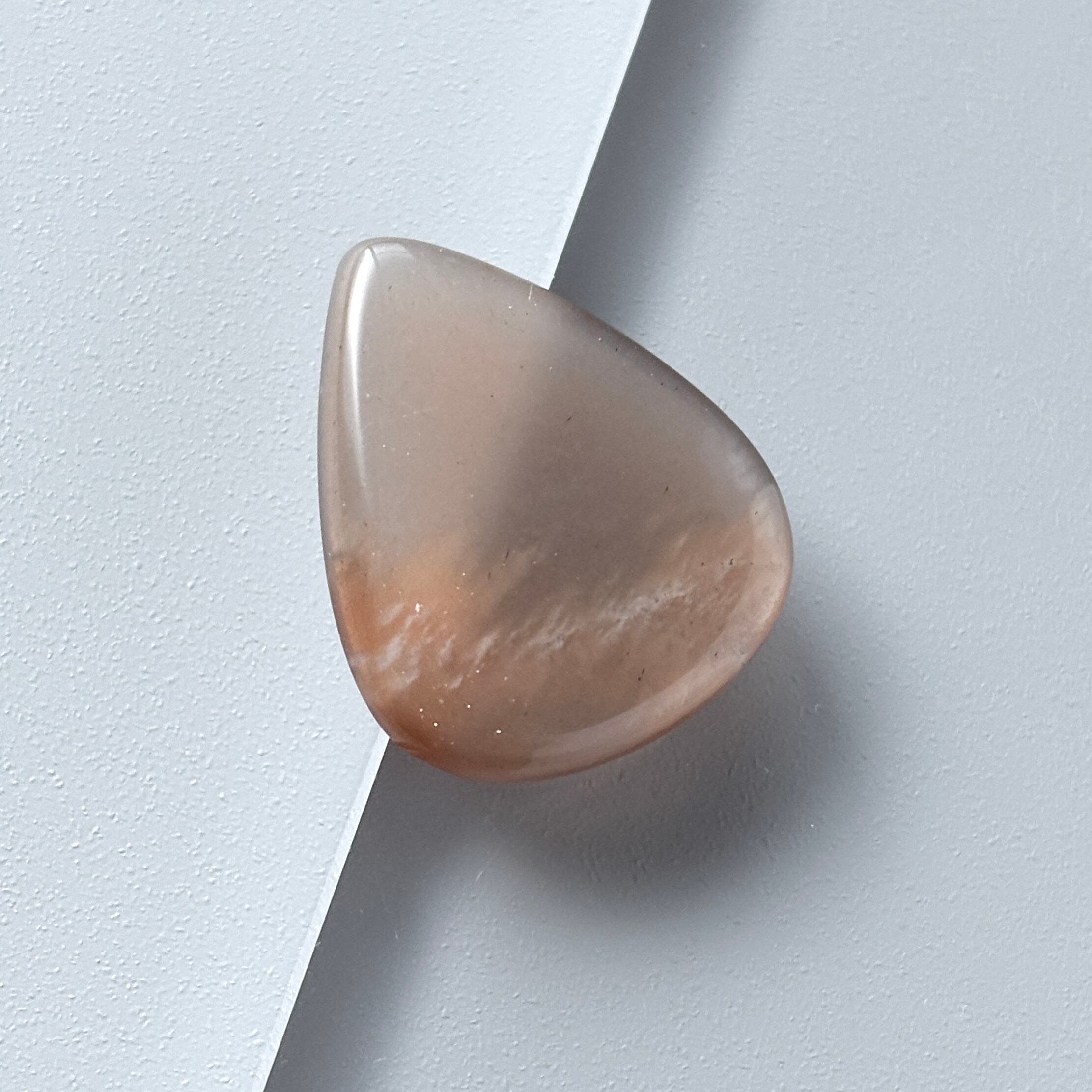 淡いブラウンに明るいオレンジの模様が入った、夕空のようなムーンストーンです。