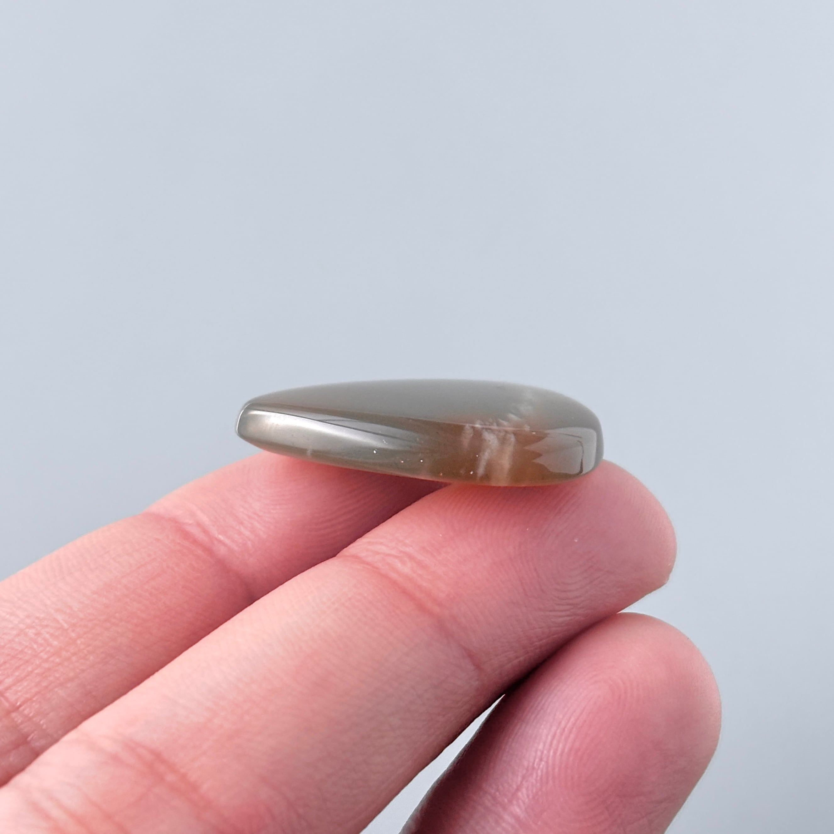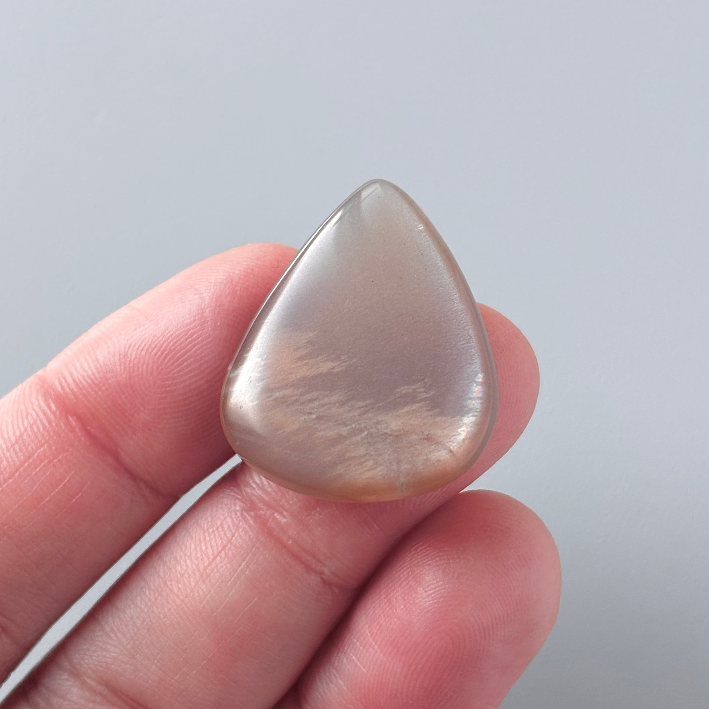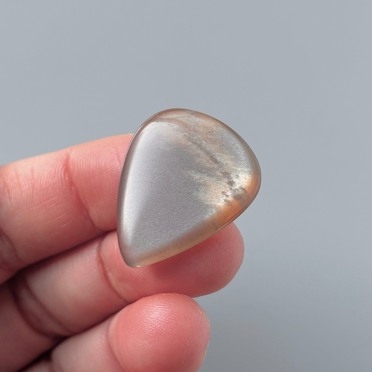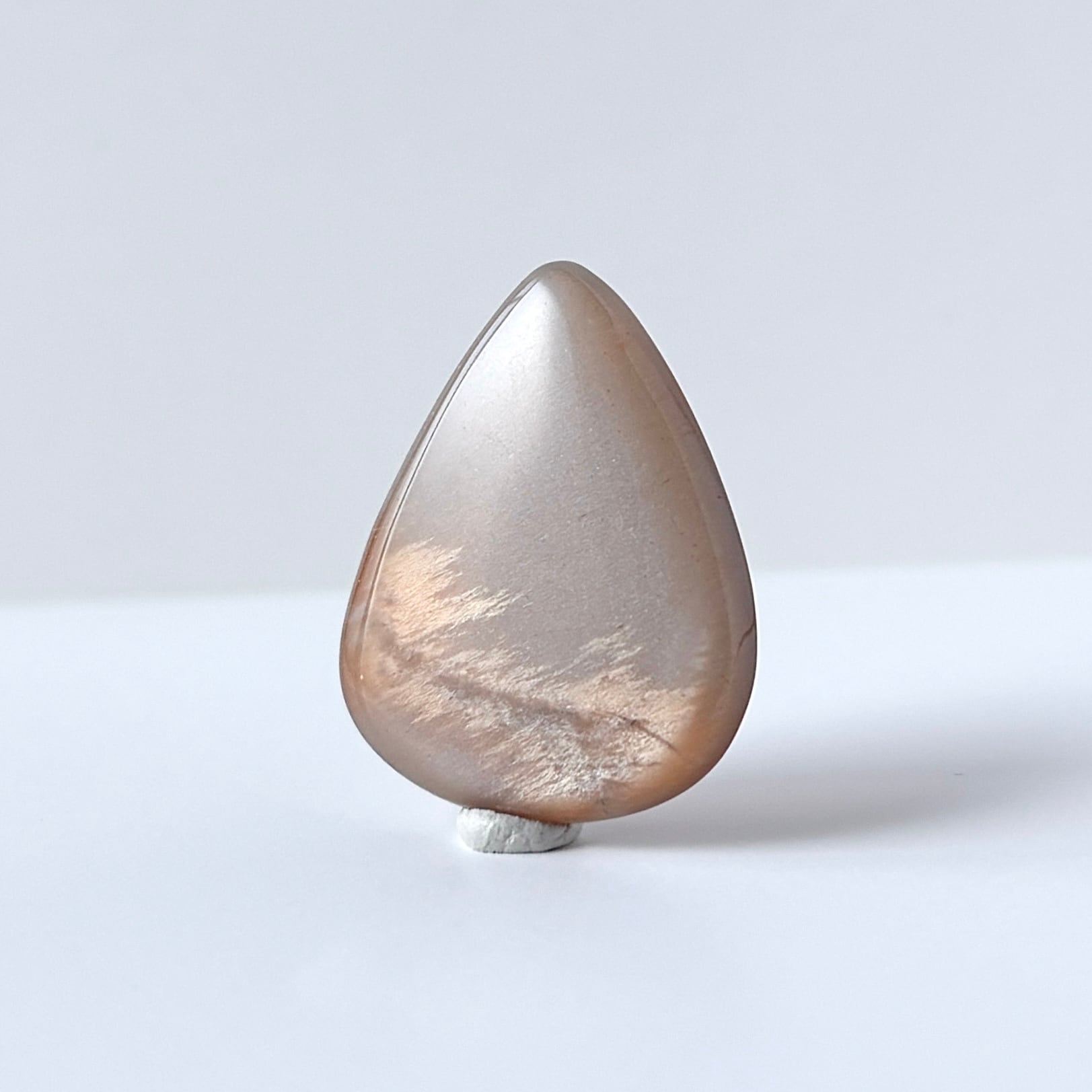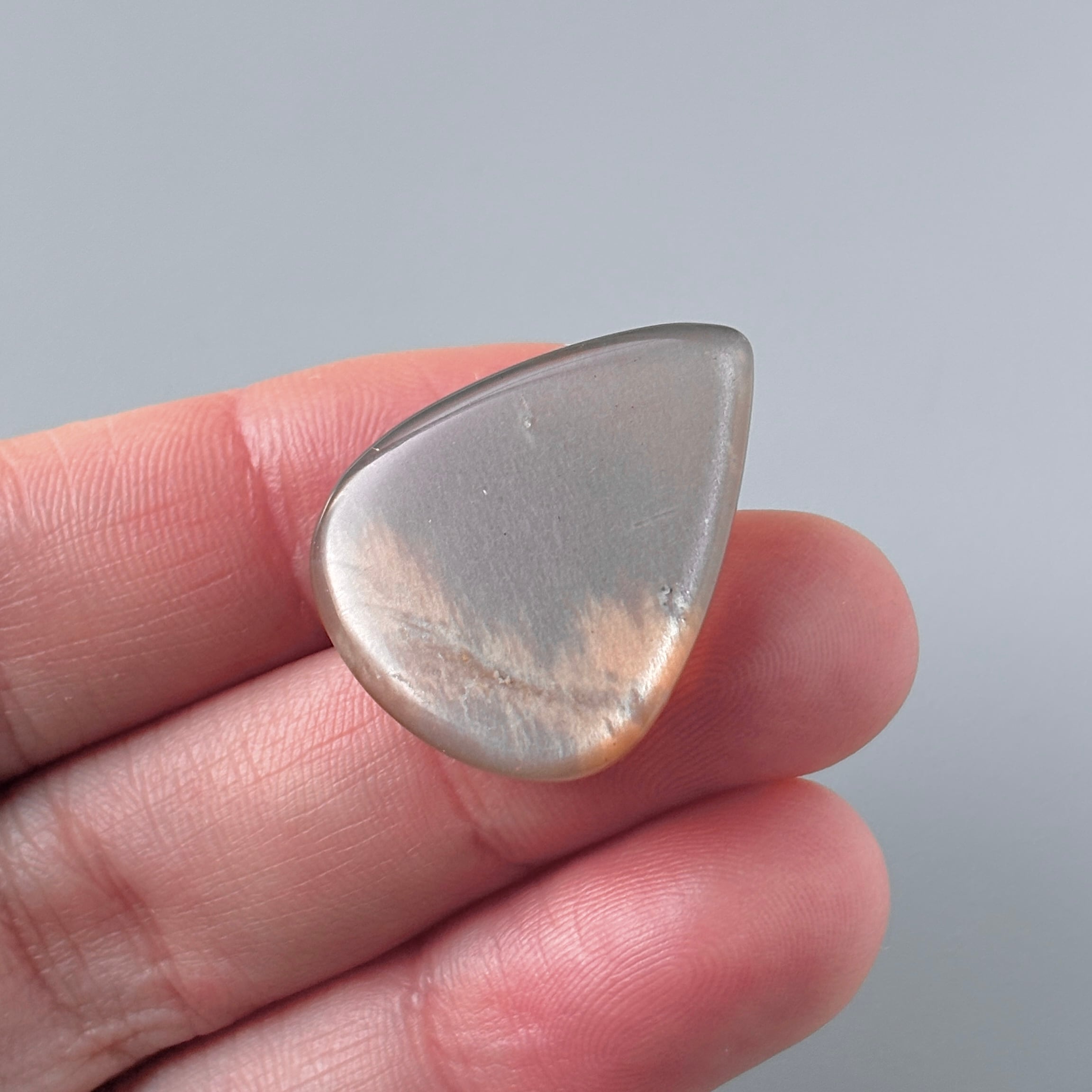 淡いブラウンに明るいオレンジの模様が入った、夕空のようなムーンストーンです。