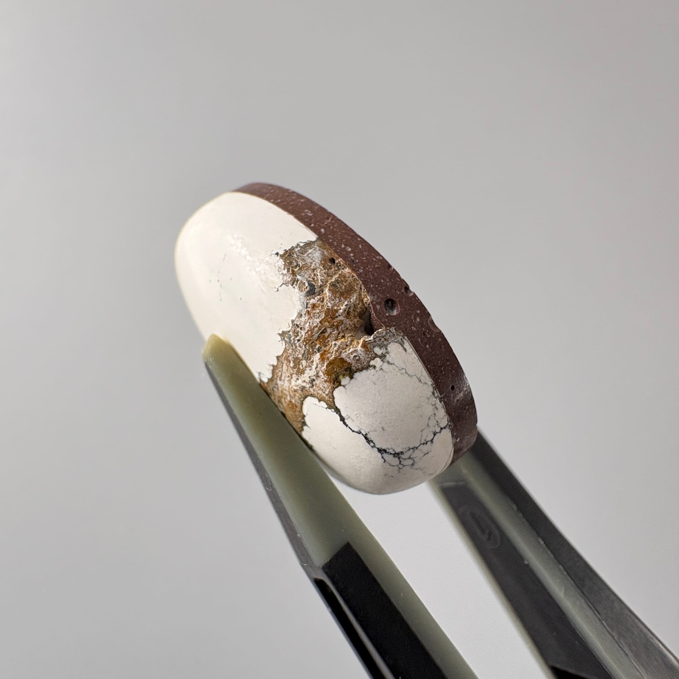 温かみある象牙色に荒々しくも緻密なマトリックスが入った、カザフスタン産バリサイトです。
