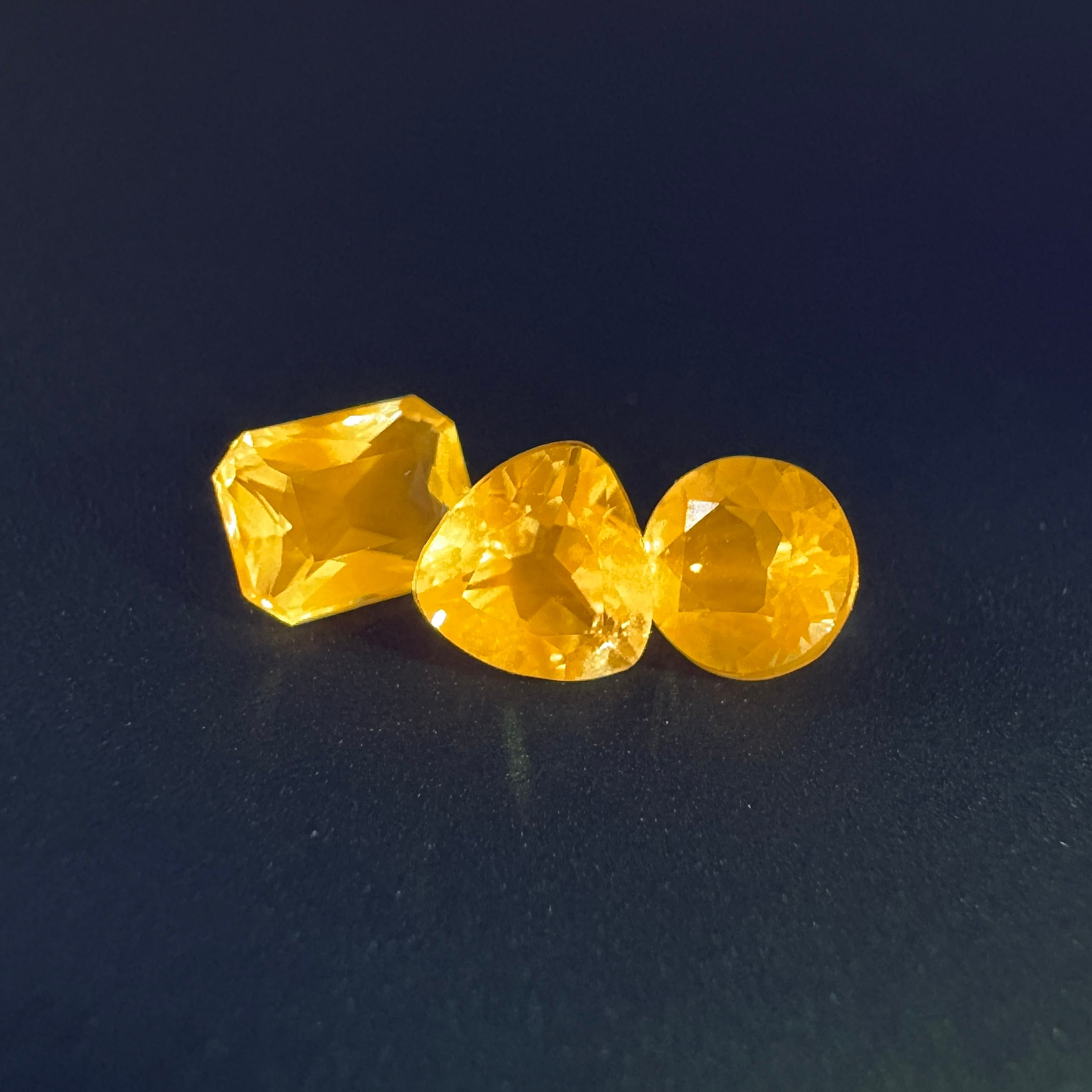 UVライトをあてると黄色に強く蛍光し、照射後に淡いブルーに変わります。だいたい1分弱でもとのカラーレスへ戻ってしまいますが、色あいとその儚さが良いです。