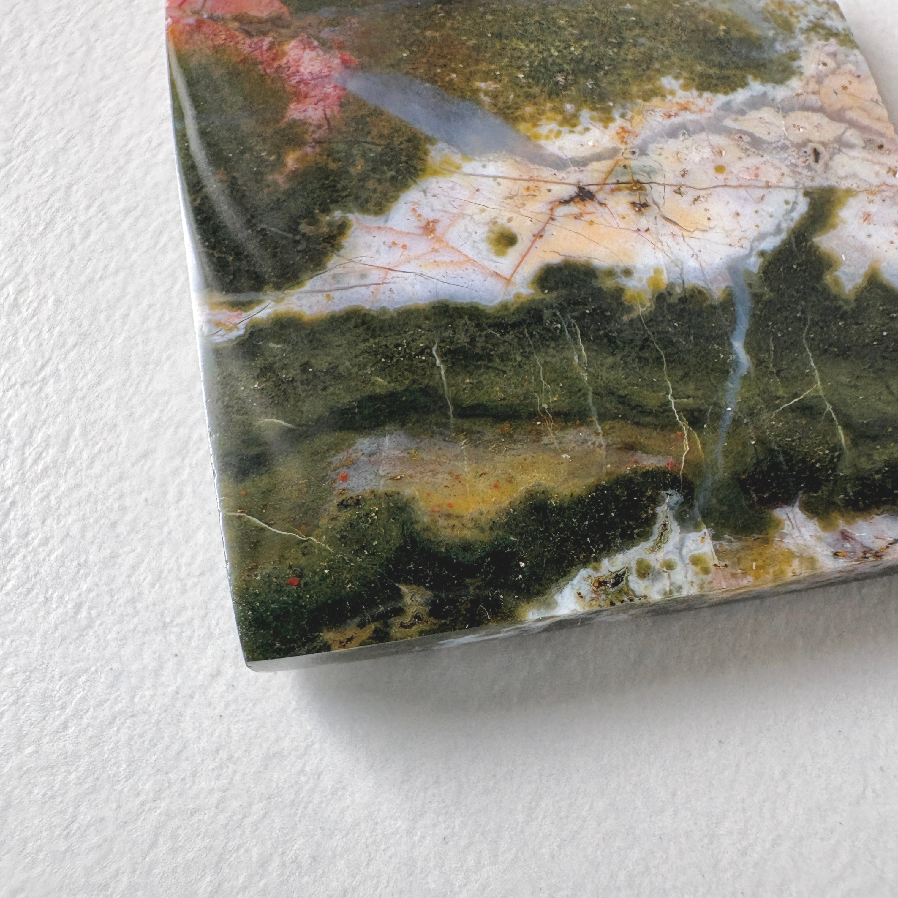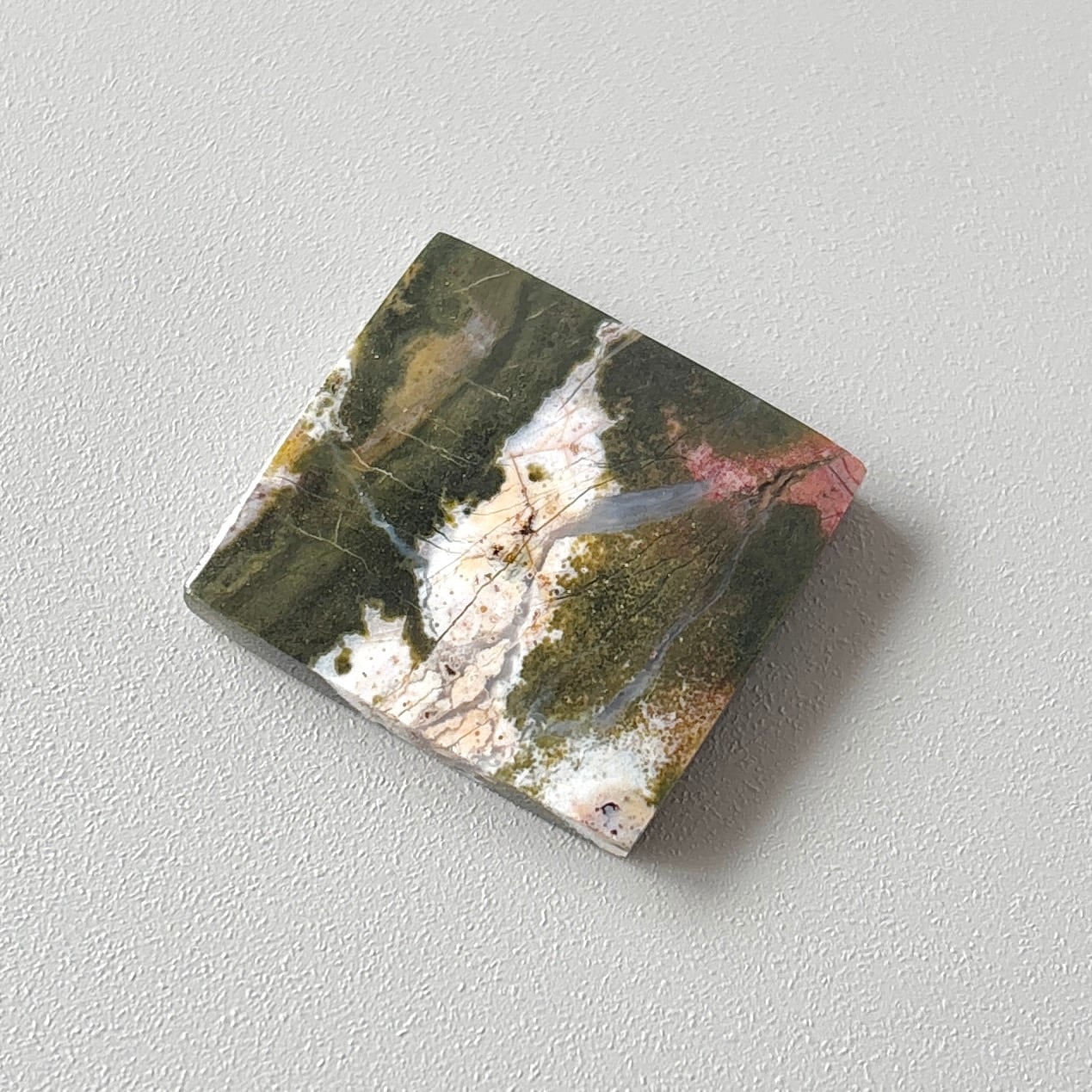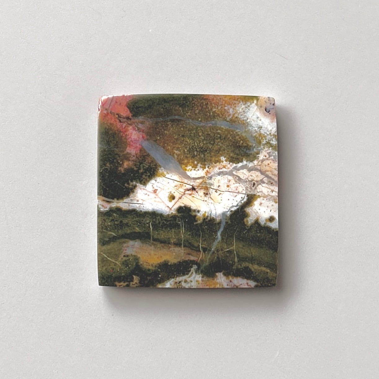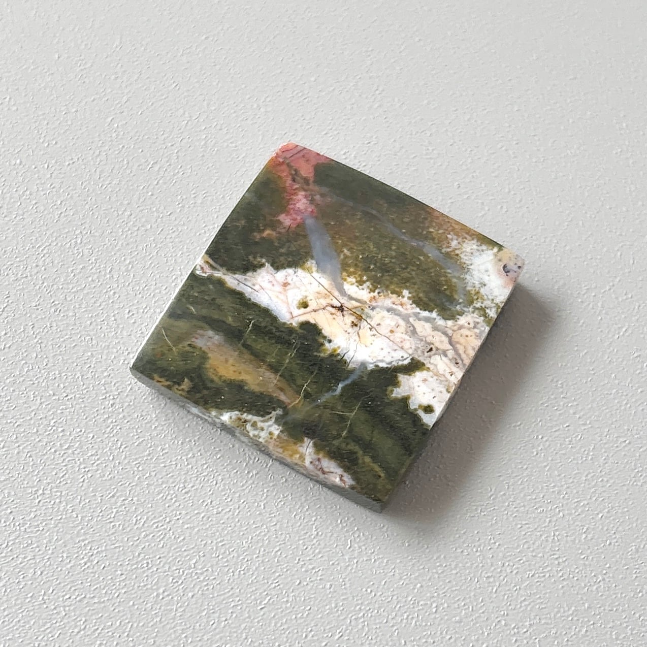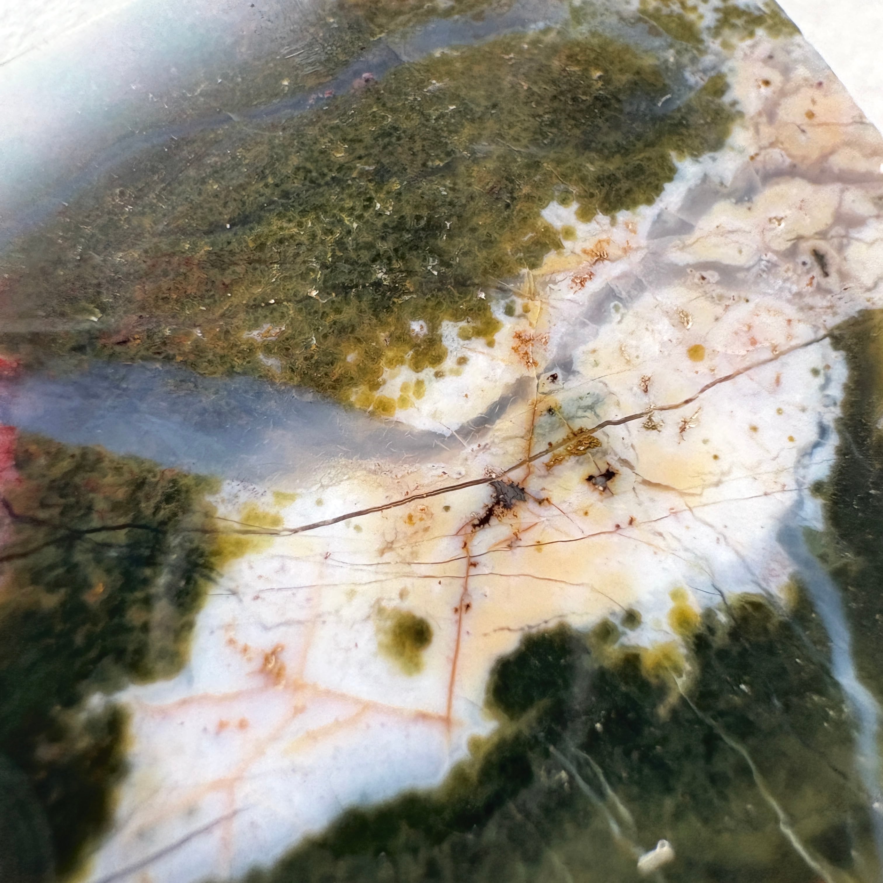 長い年月をかけてオパール化したペトリファイドウッド (植物の化石) です。風景画のようなものを選びました。