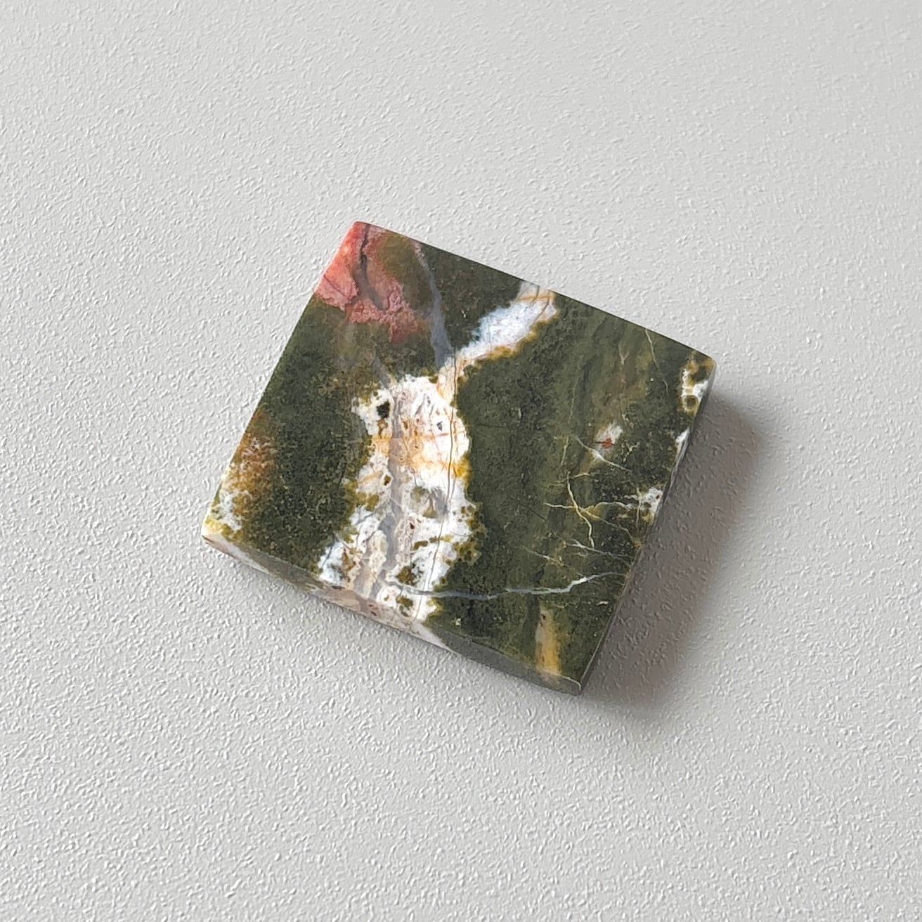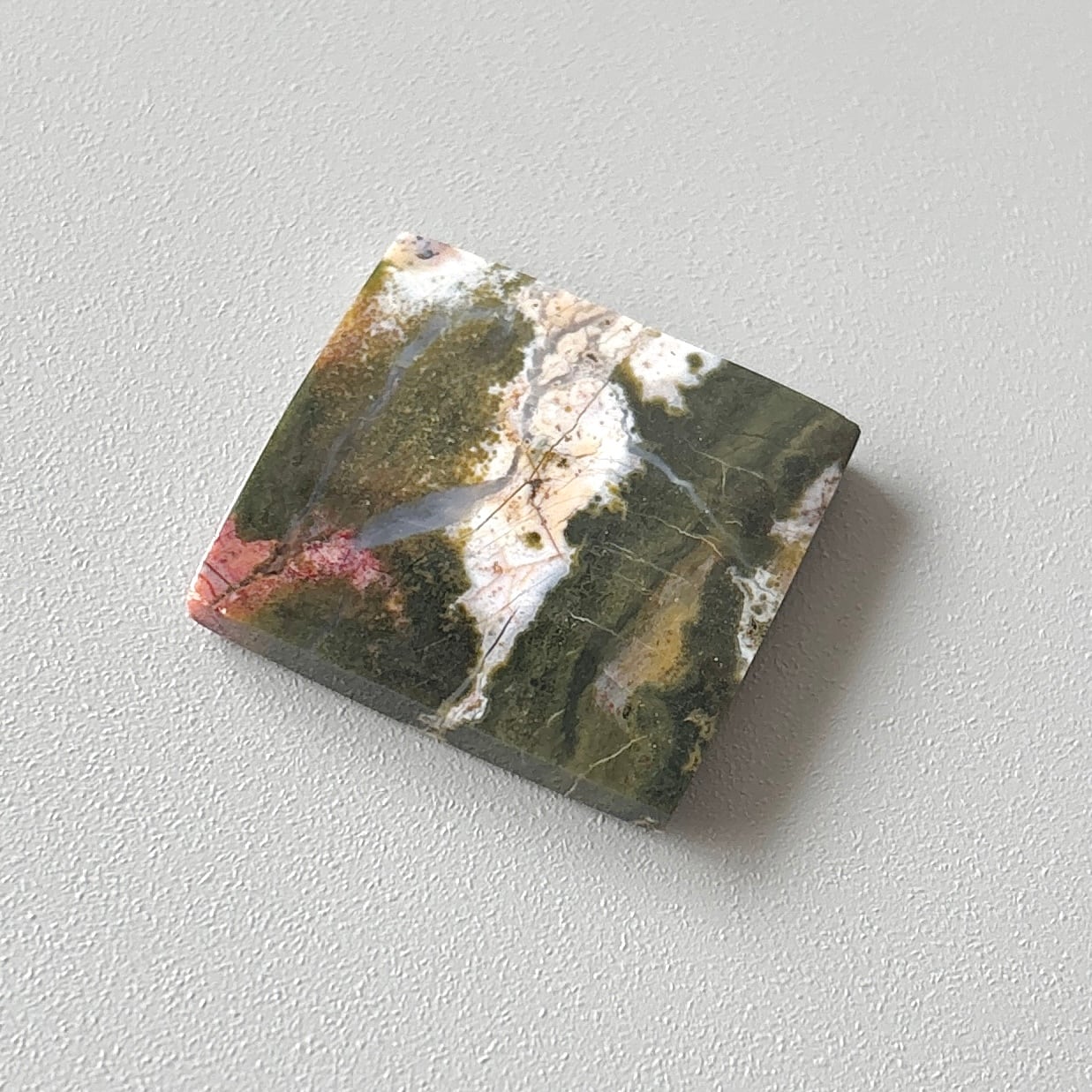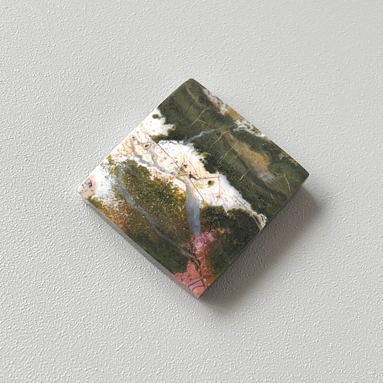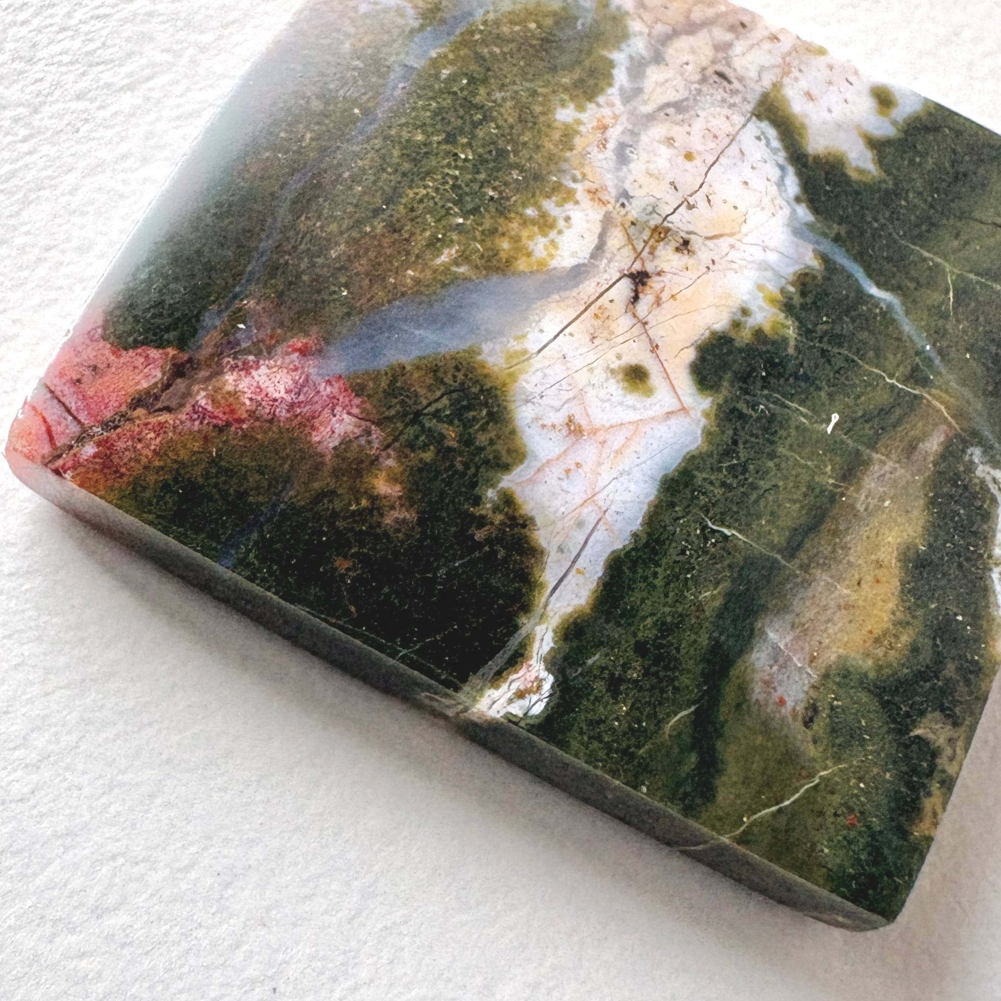長い年月をかけてオパール化したペトリファイドウッド (植物の化石) です。風景画のようなものを選びました。