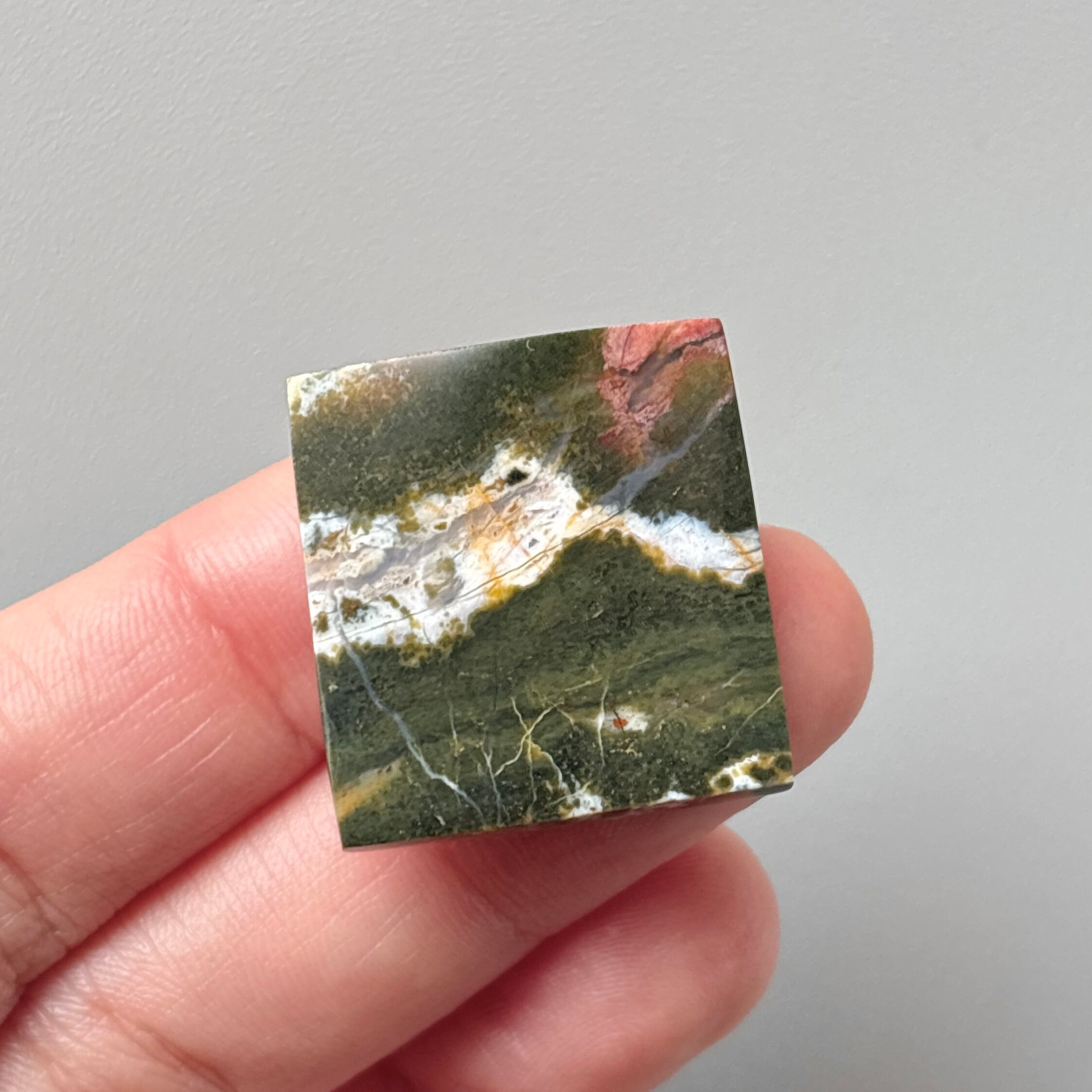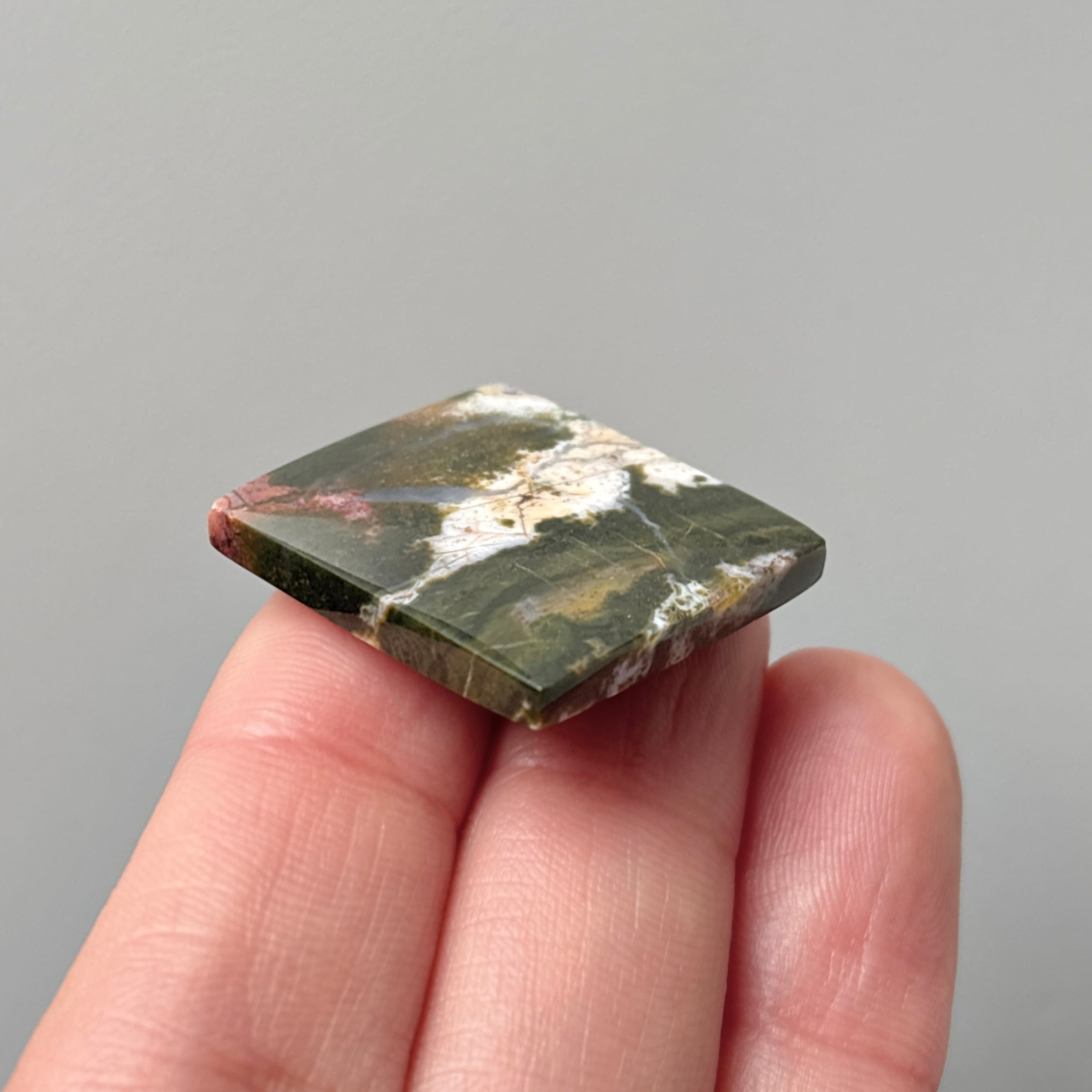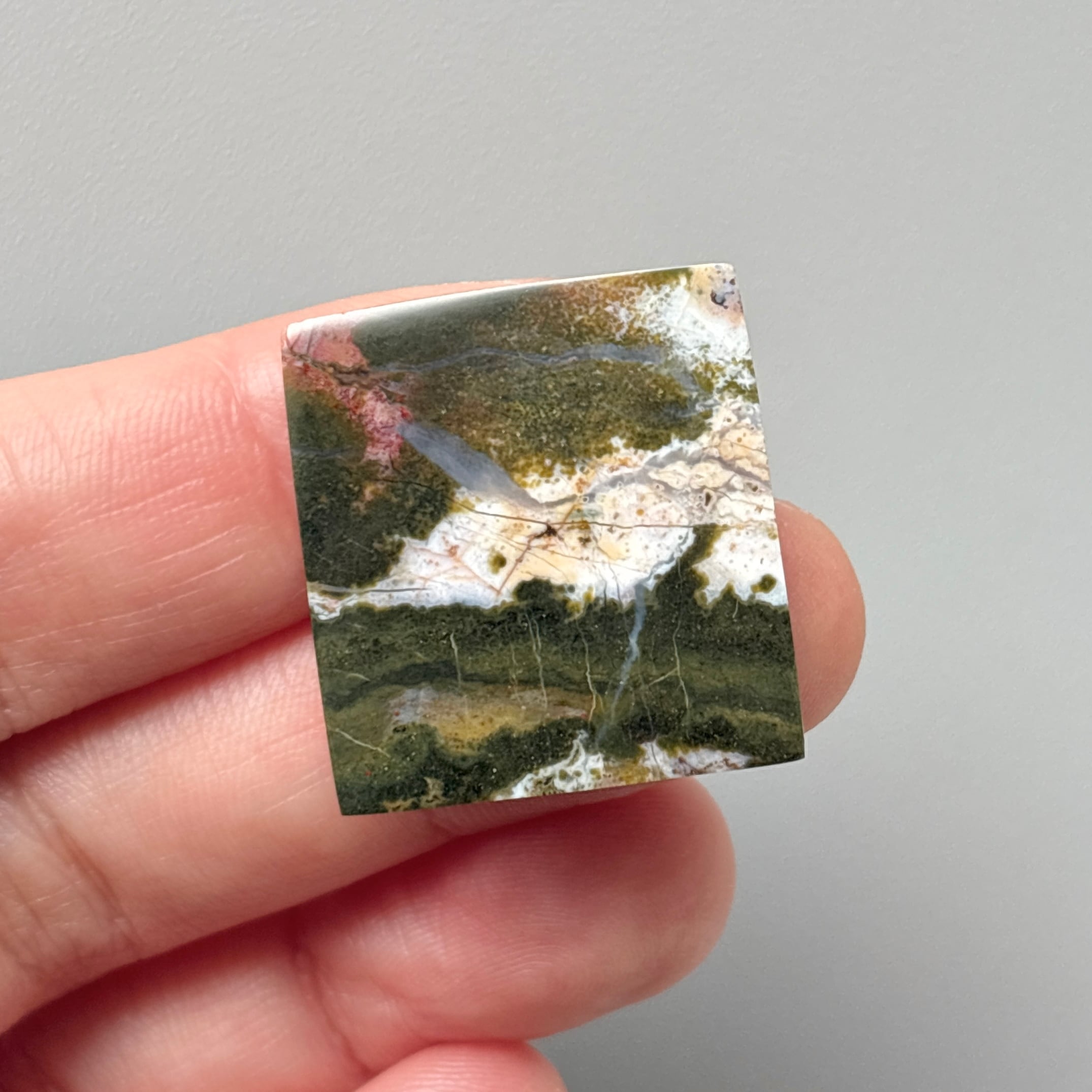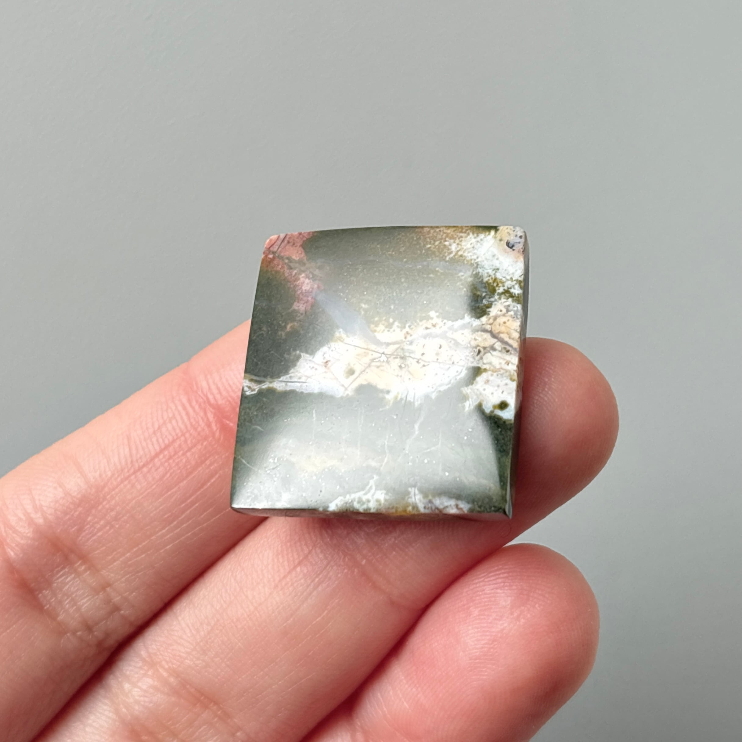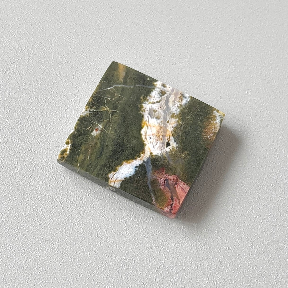 長い年月をかけてオパール化したペトリファイドウッド (植物の化石) です。風景画のようなものを選びました。