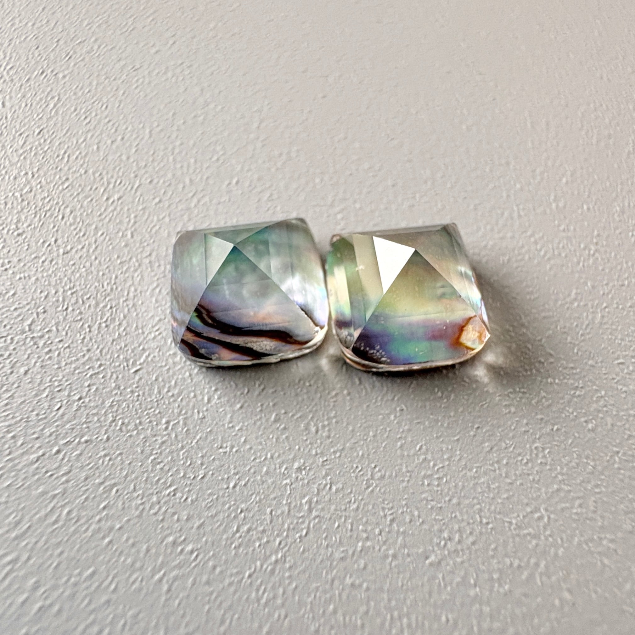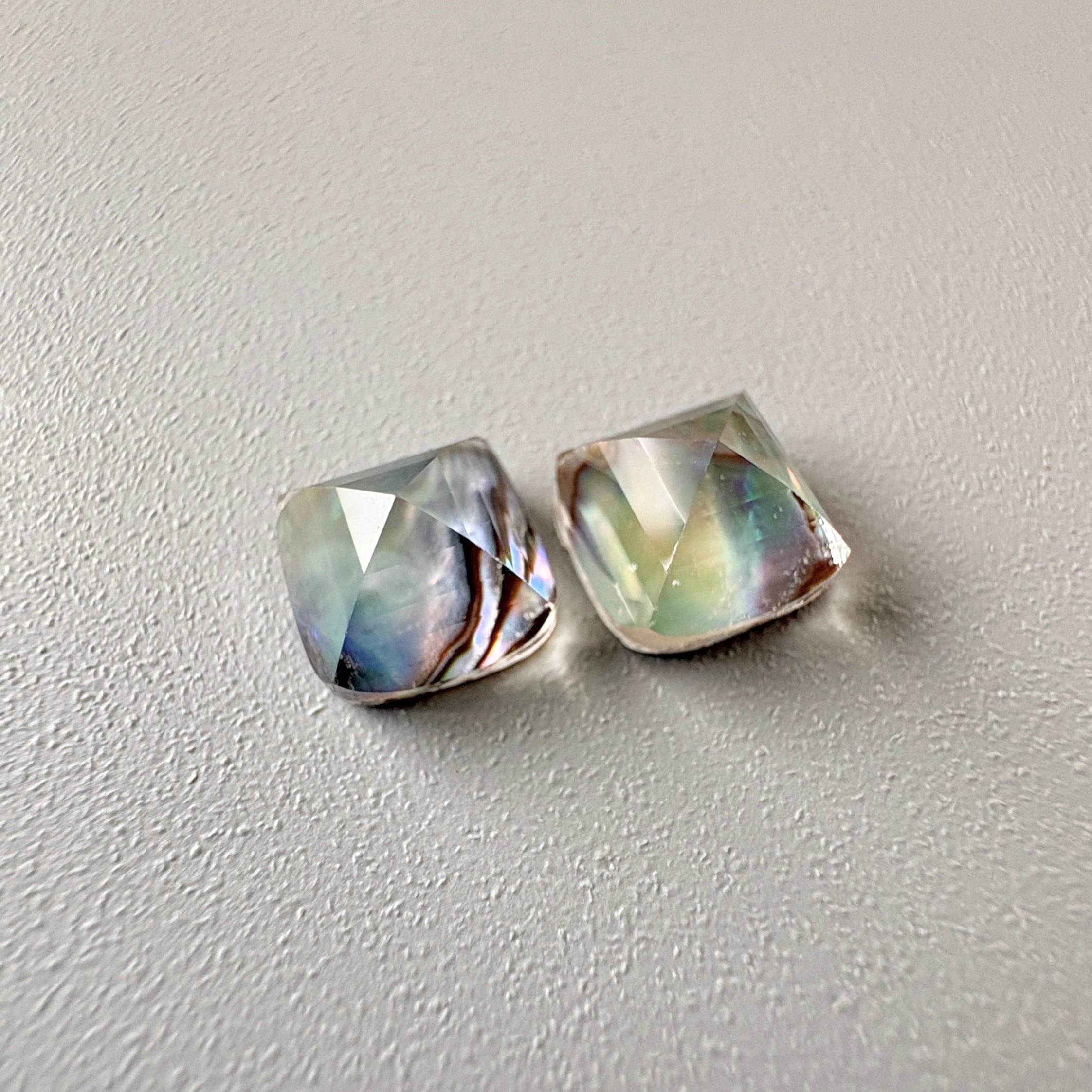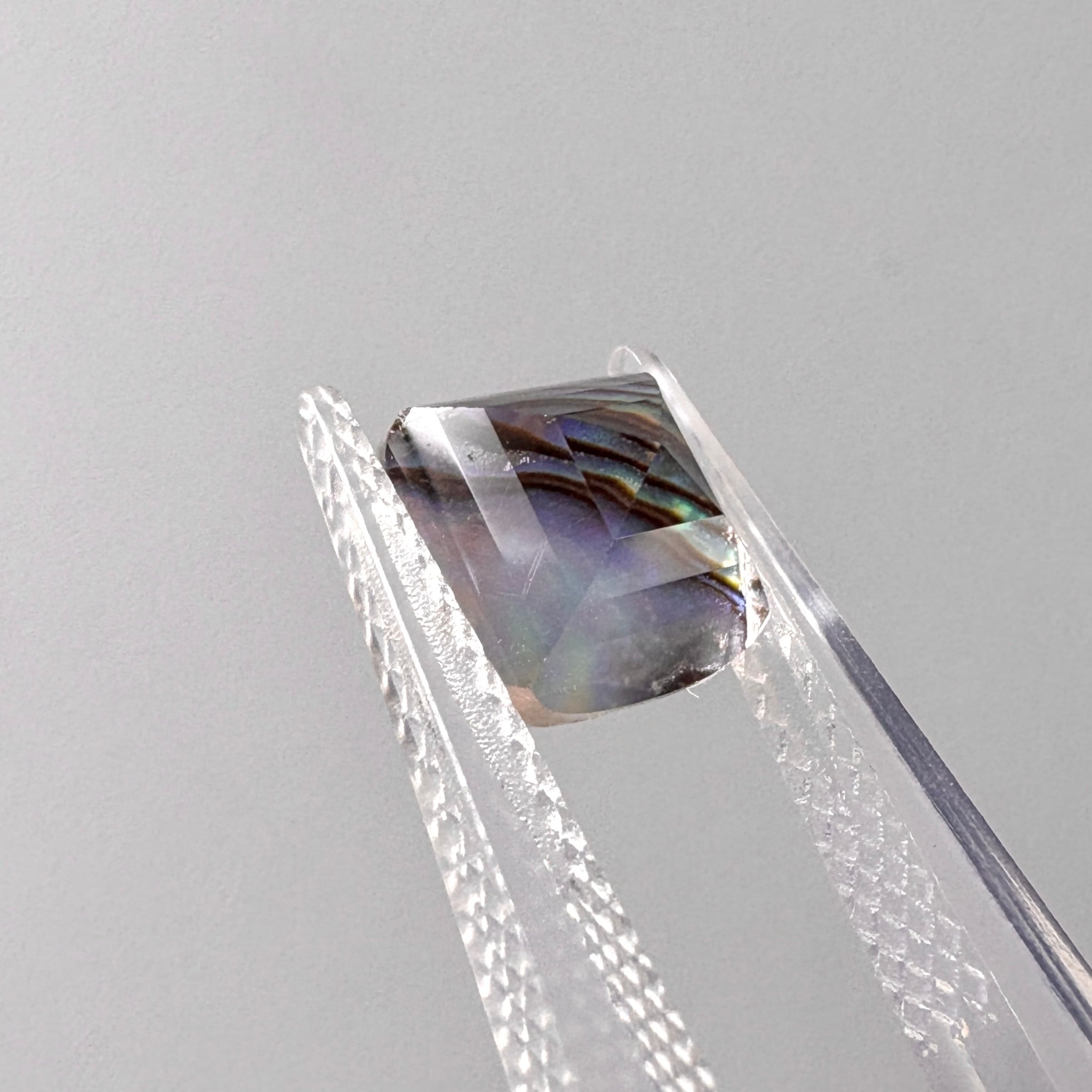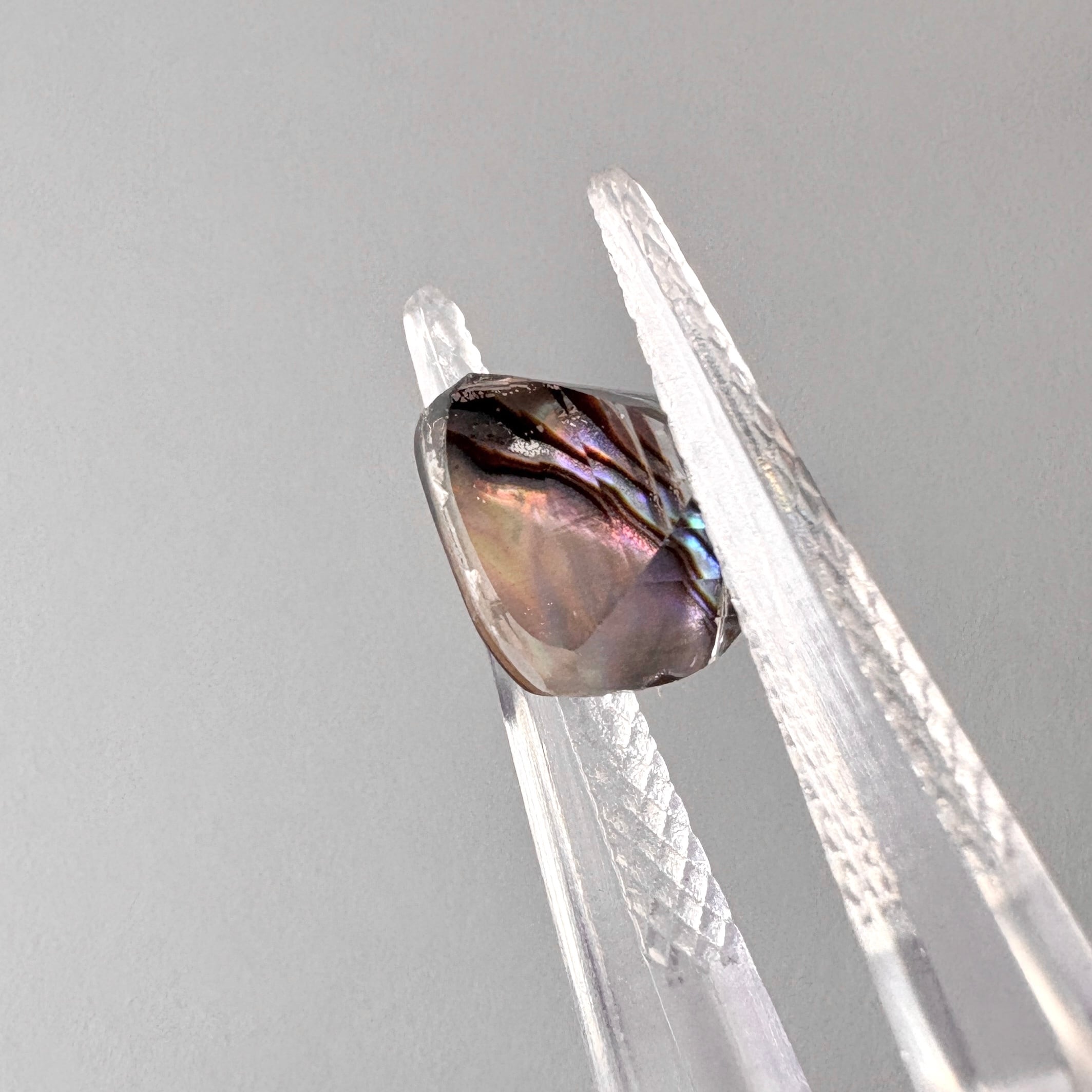 アバロンシェル (アワビの貝殻) と水晶のダブレットです。