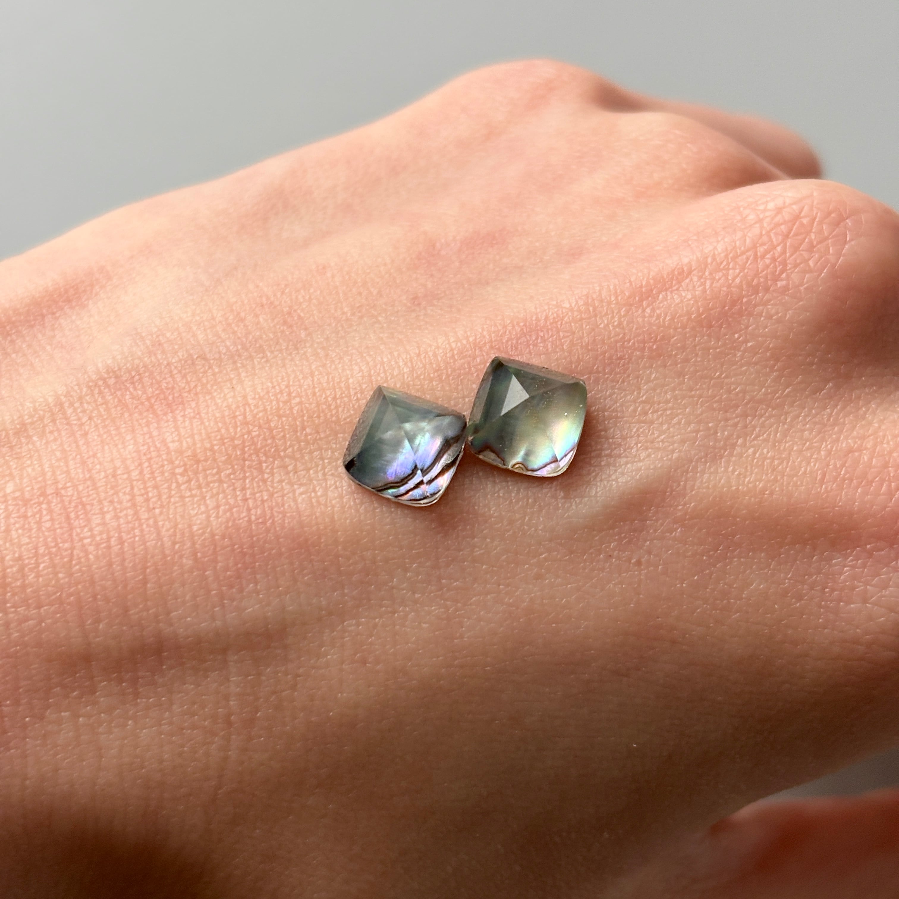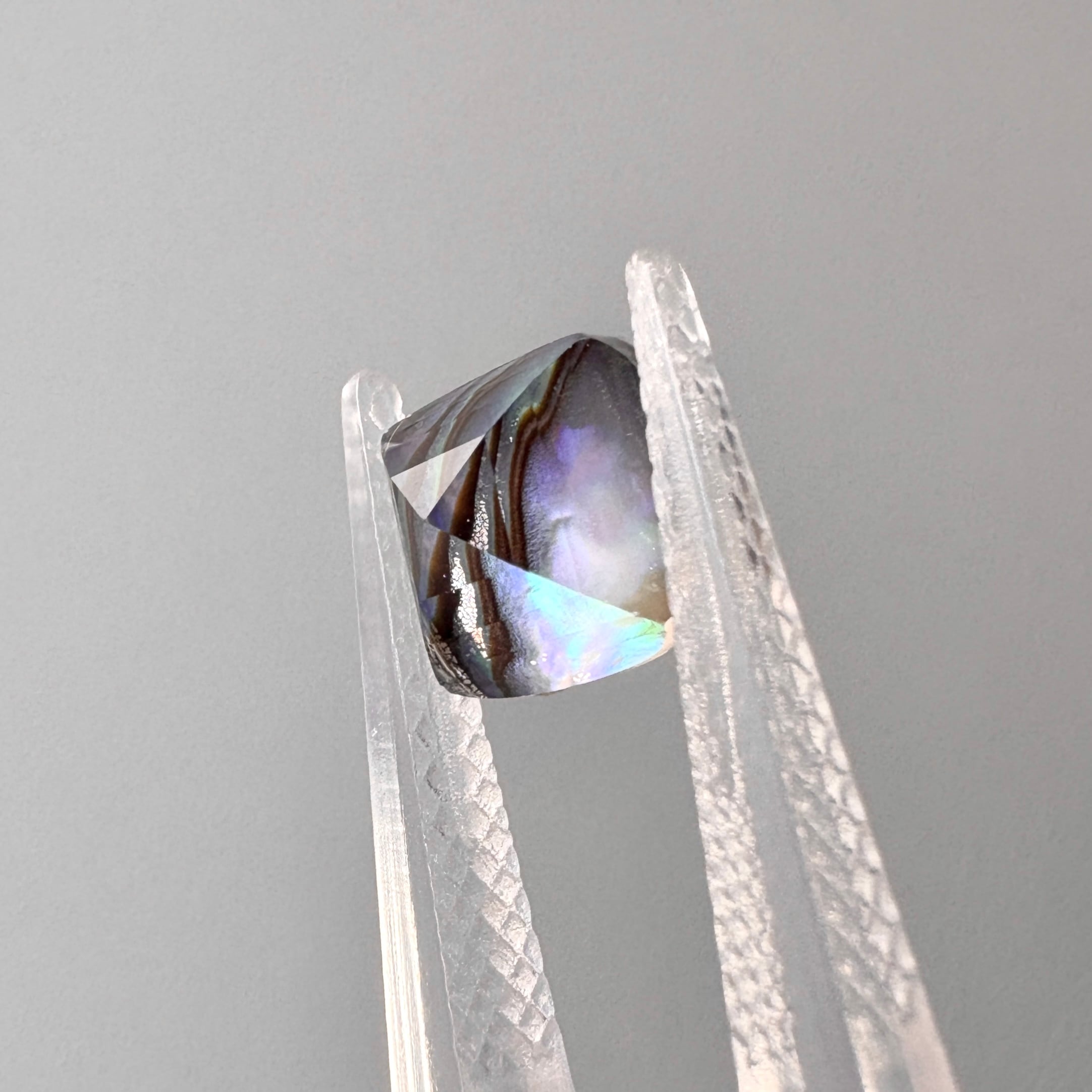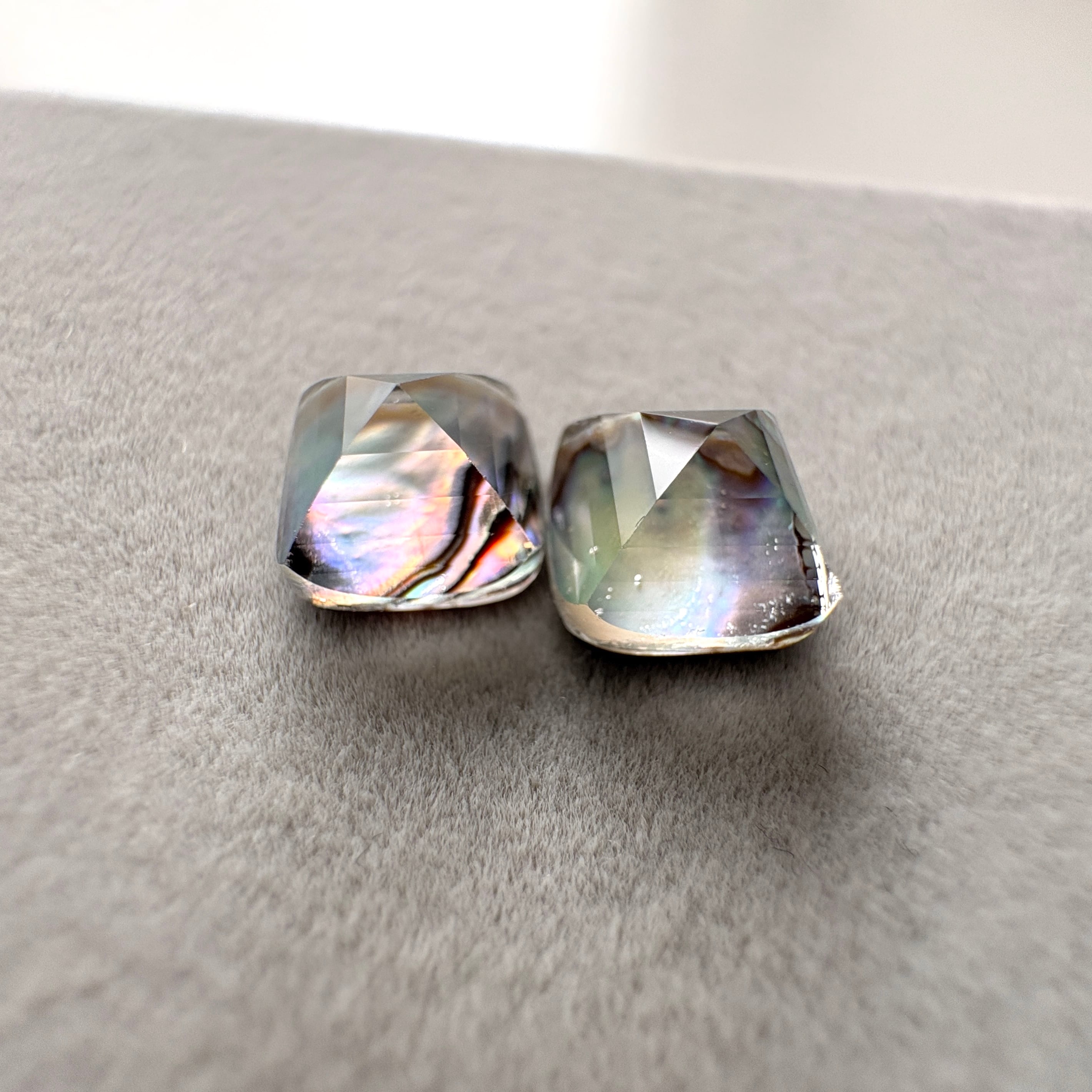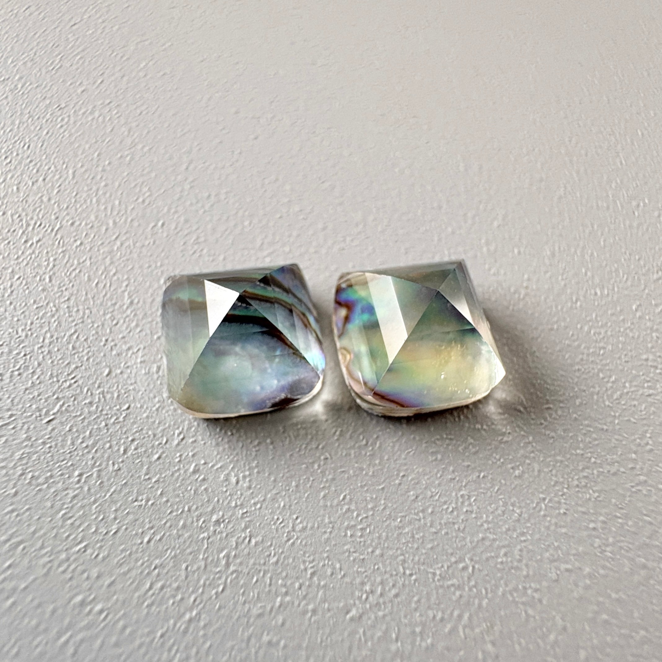 アバロンシェル (アワビの貝殻) と水晶のダブレットです。