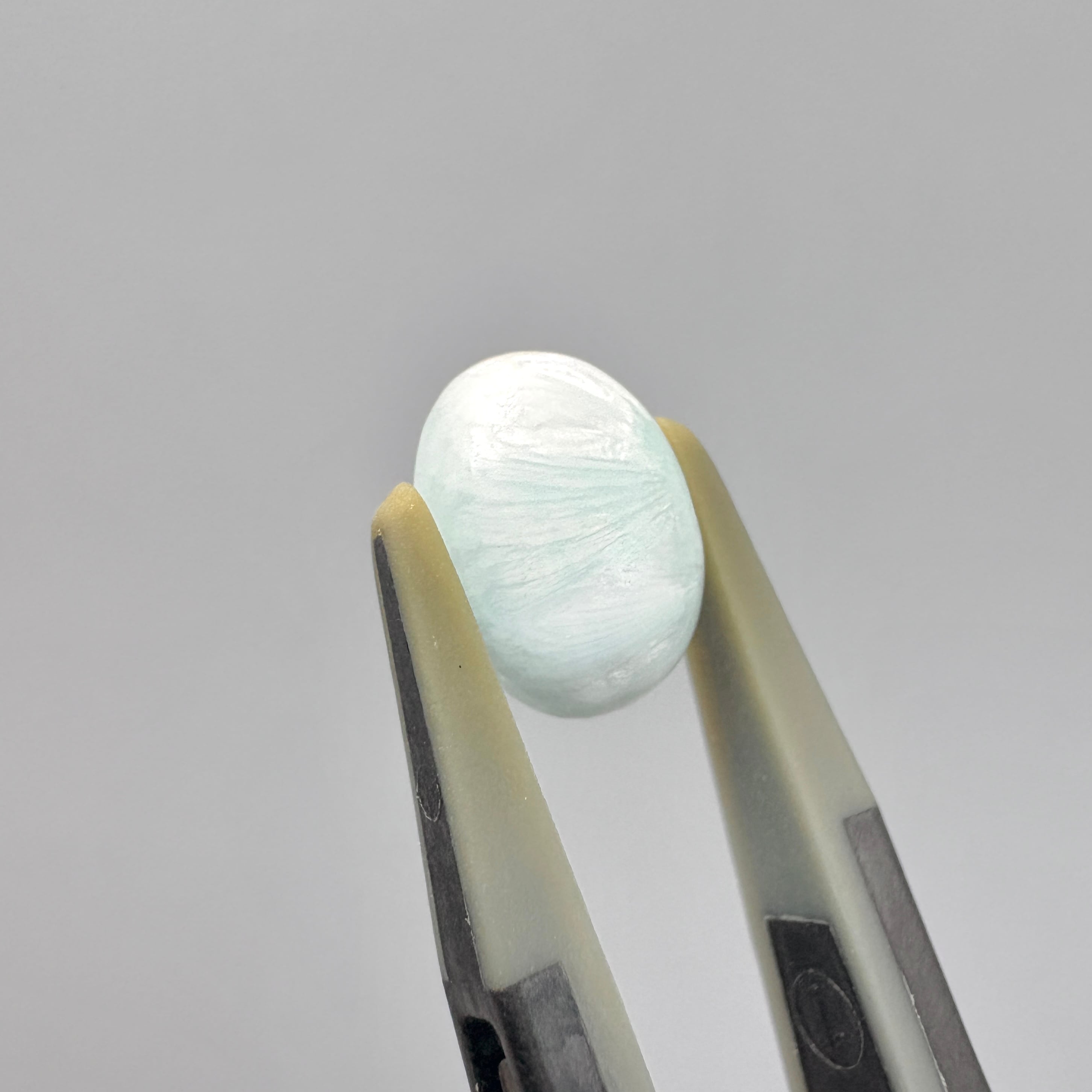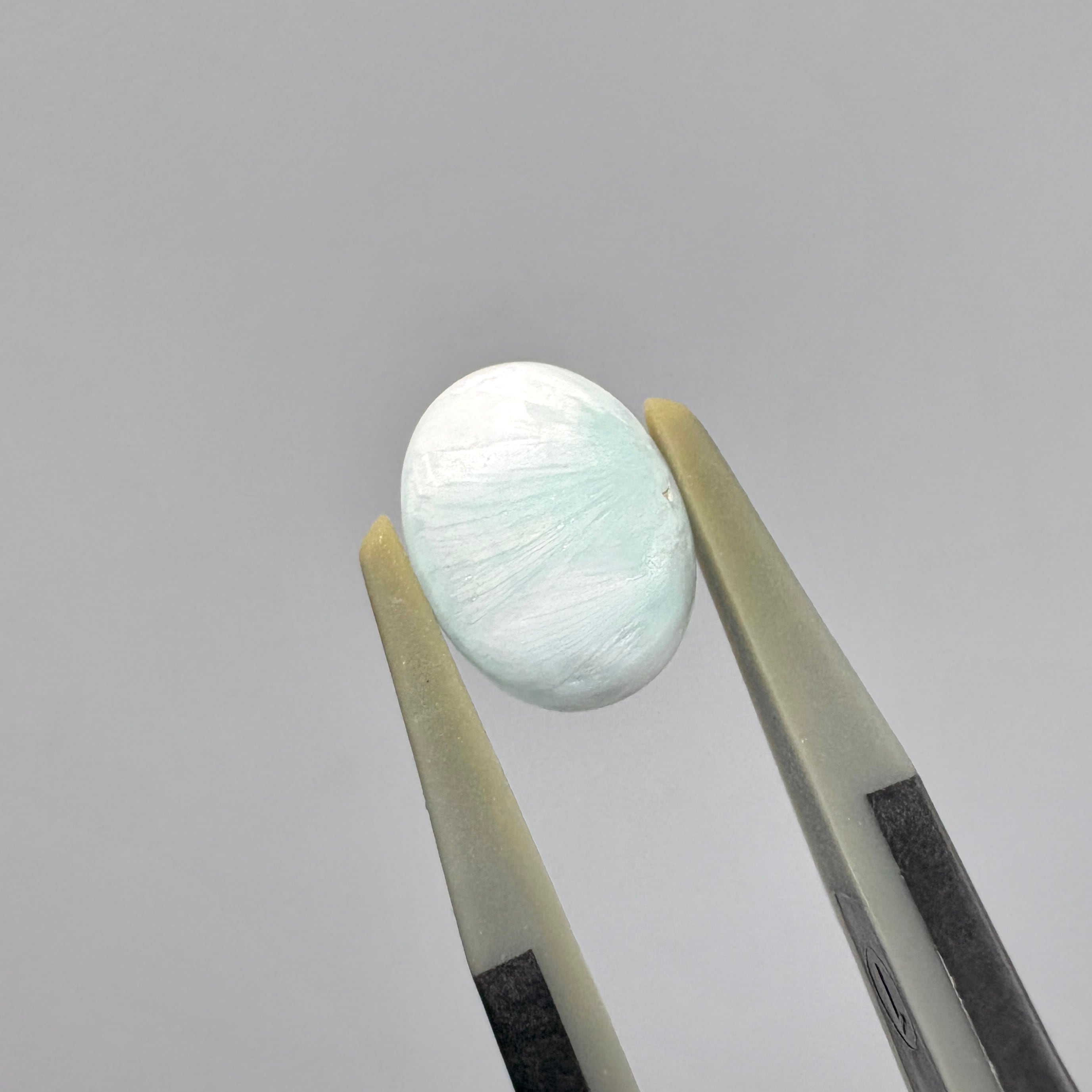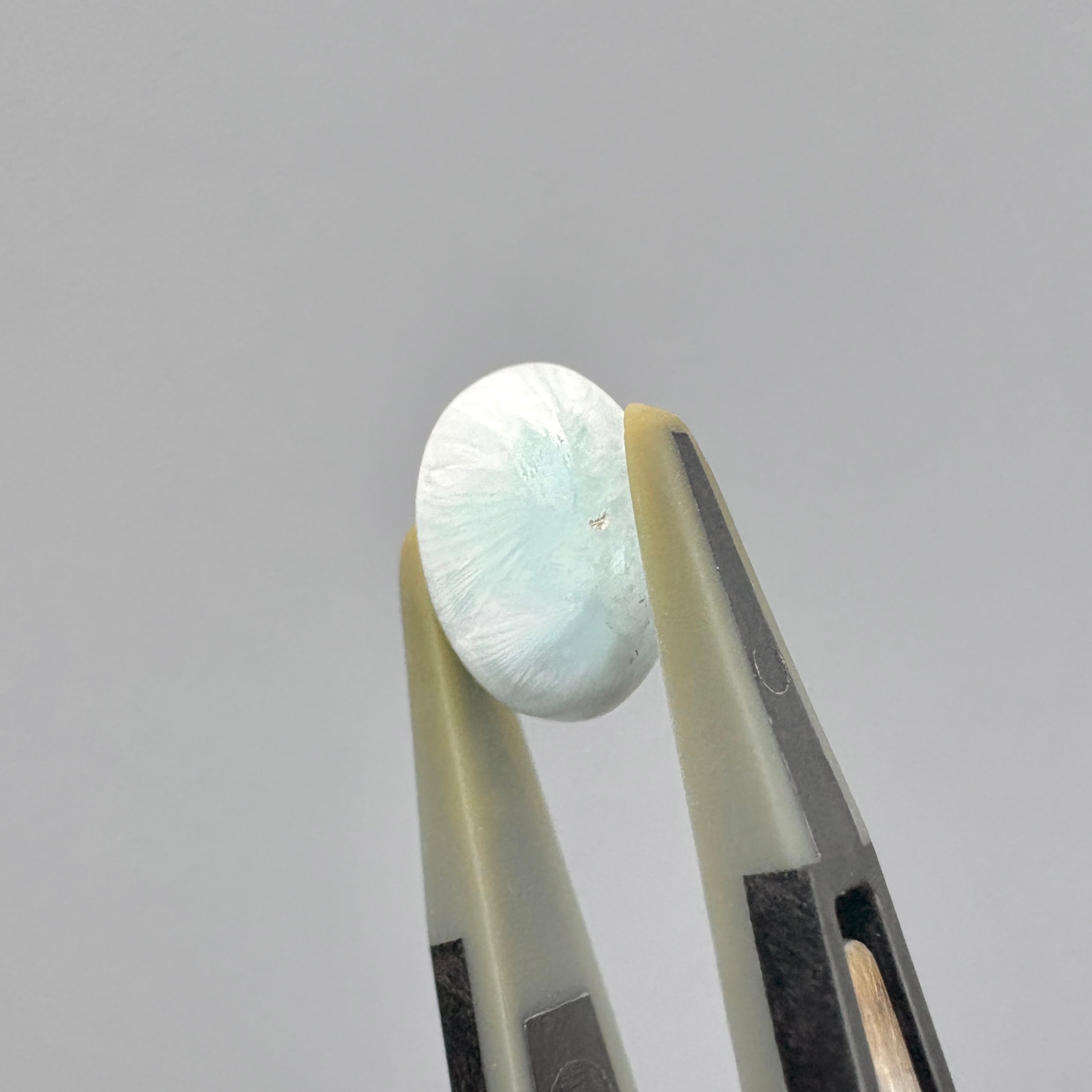 白とアイスブルーの爽やかな色合いに、シャリっとした質感のスミソナイトです。