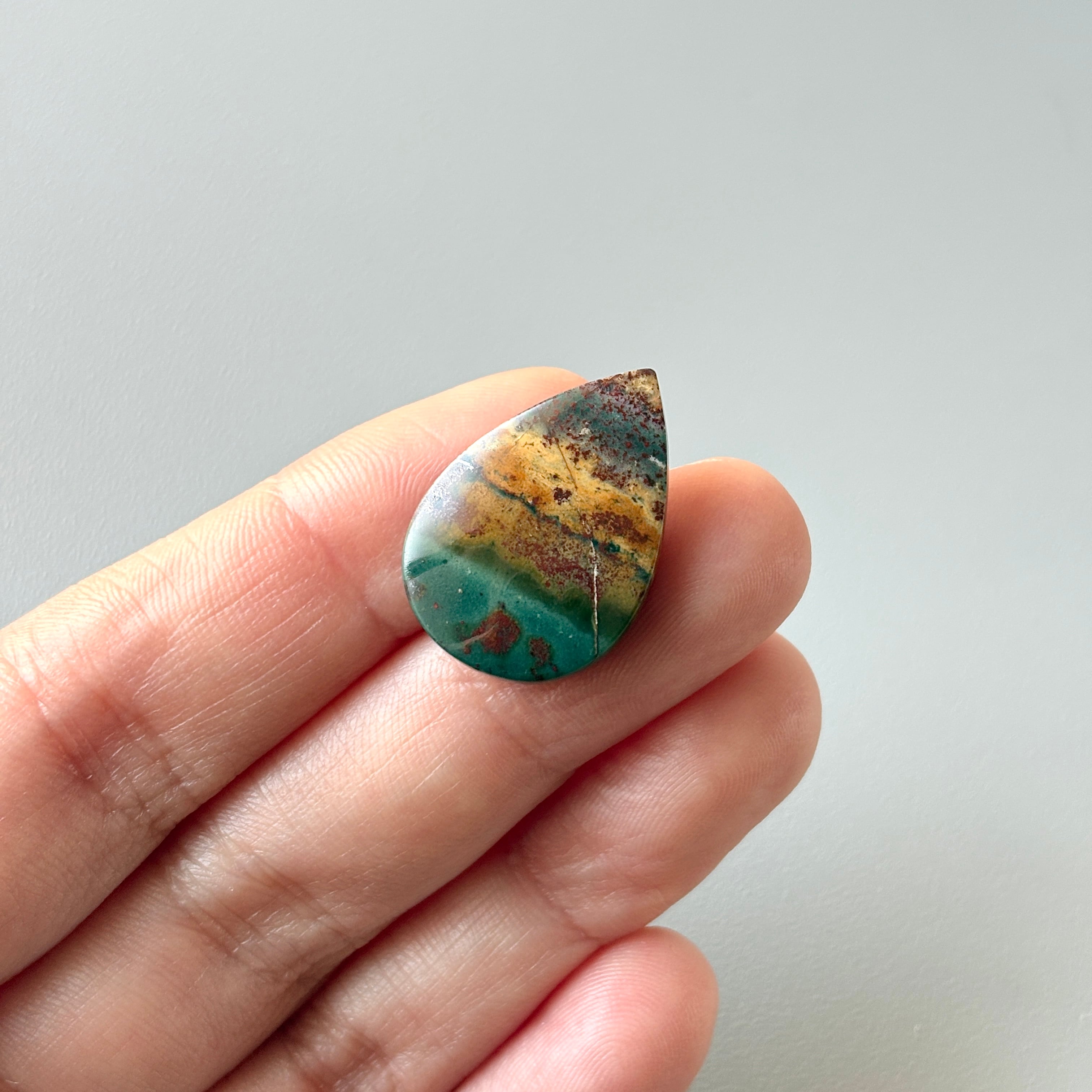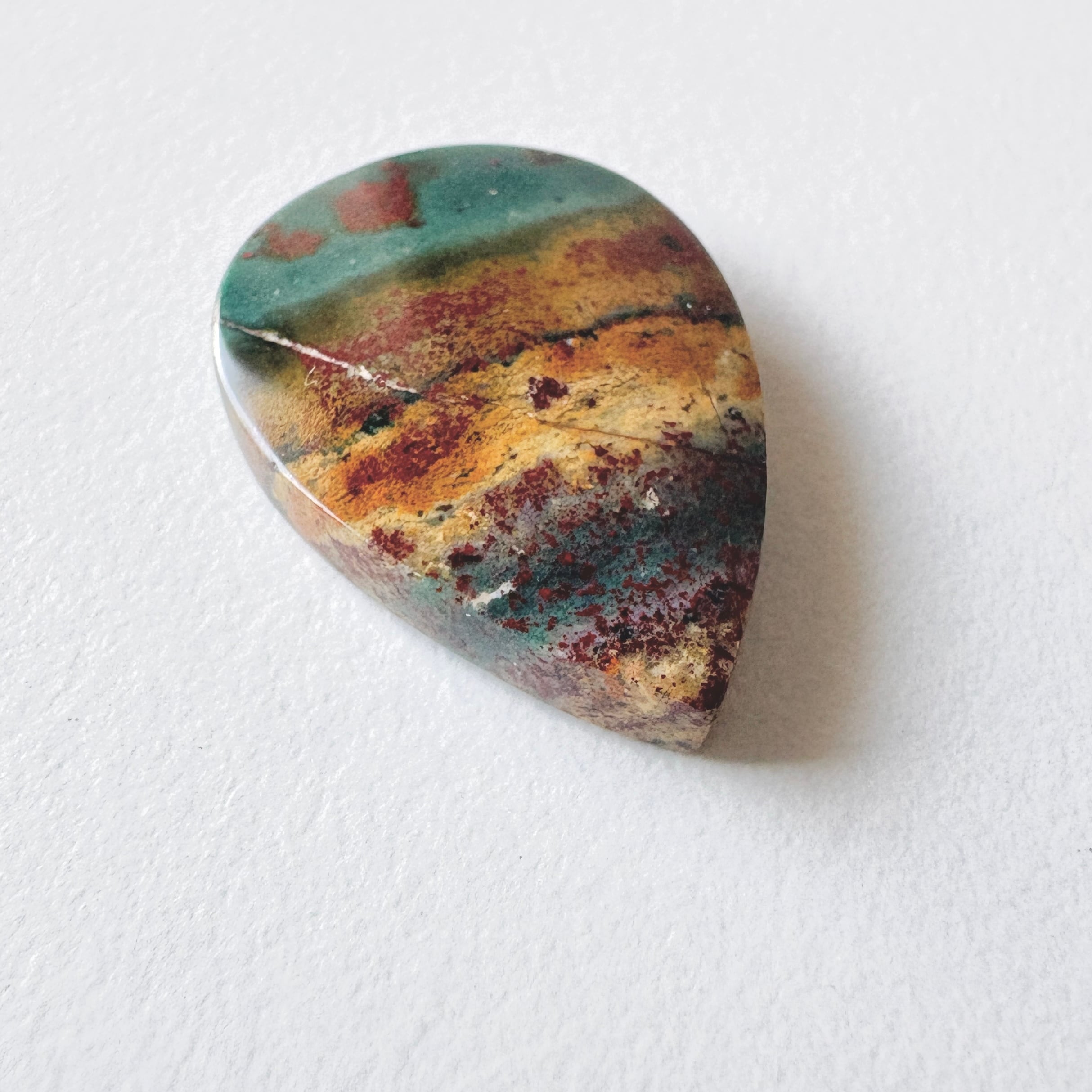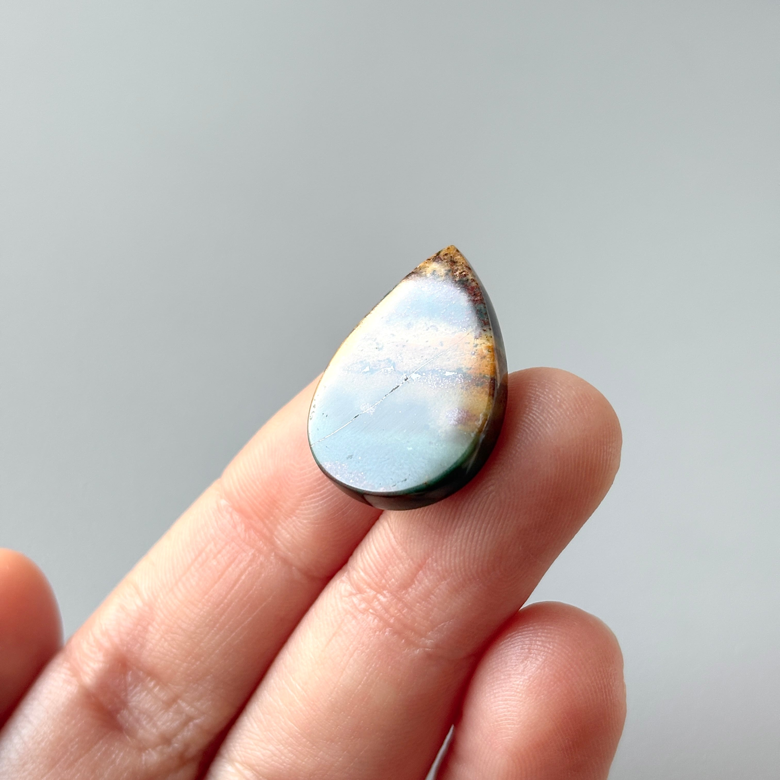 長い年月をかけてオパール化したペトリファイドウッド (植物の化石) です。風景画のようなものを選びました。
