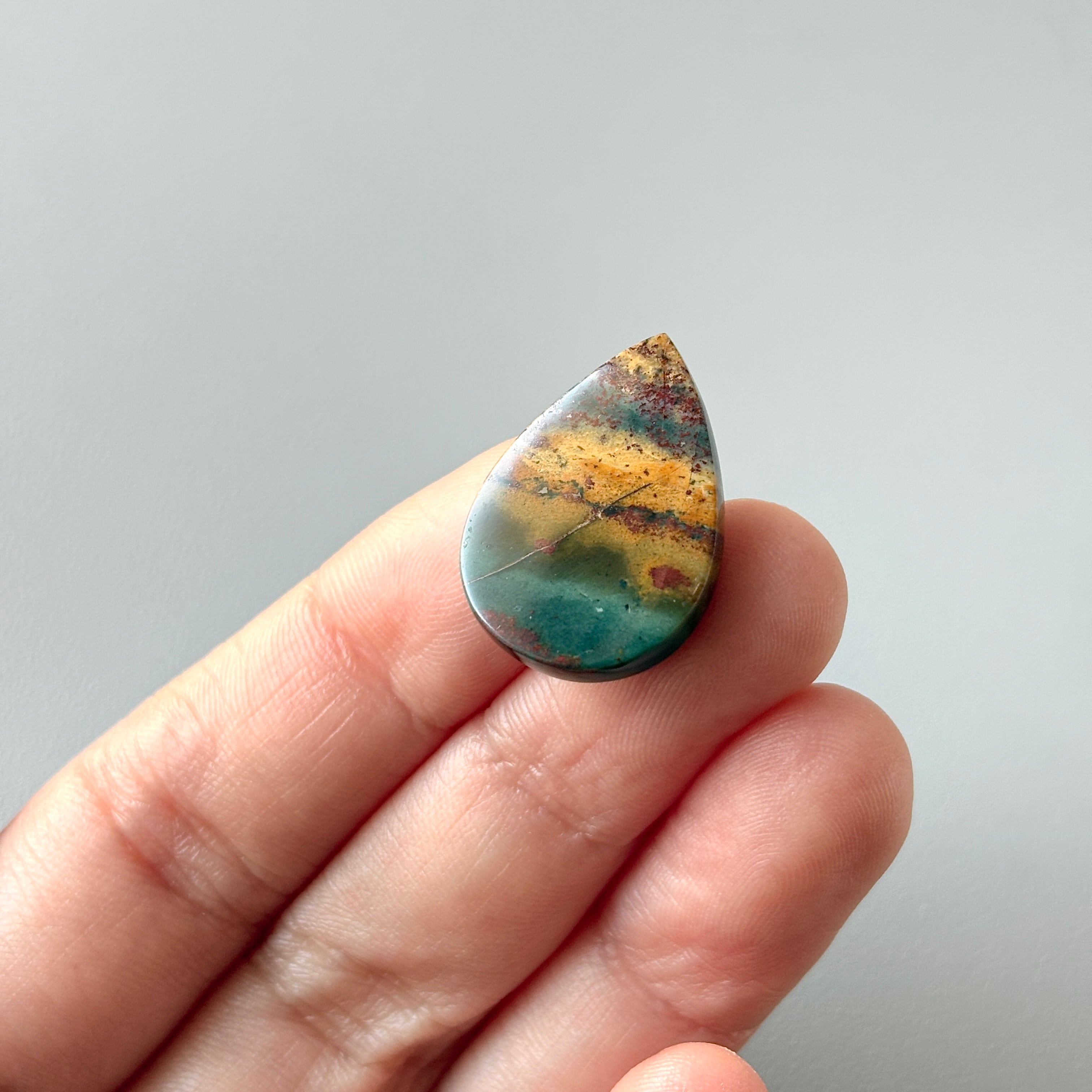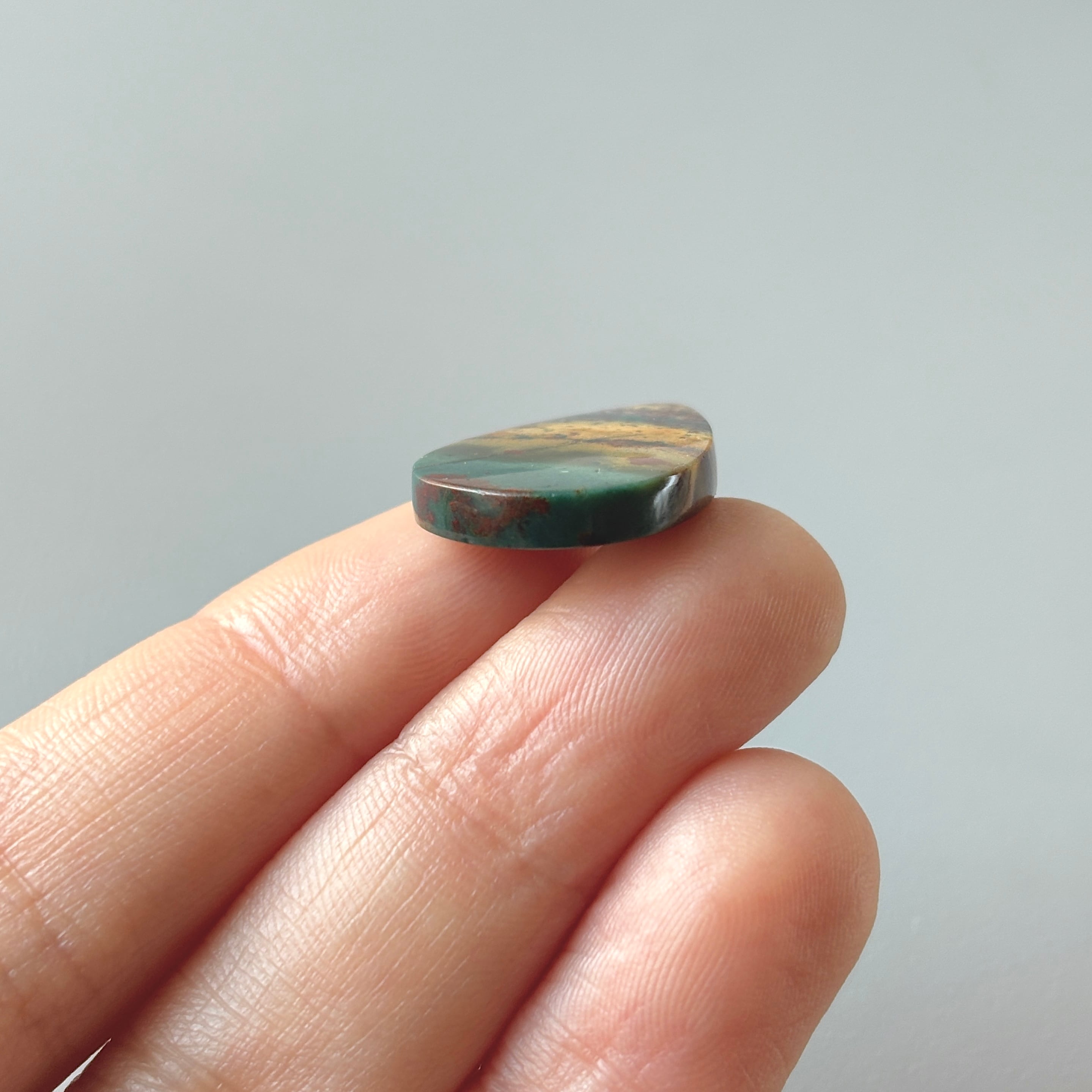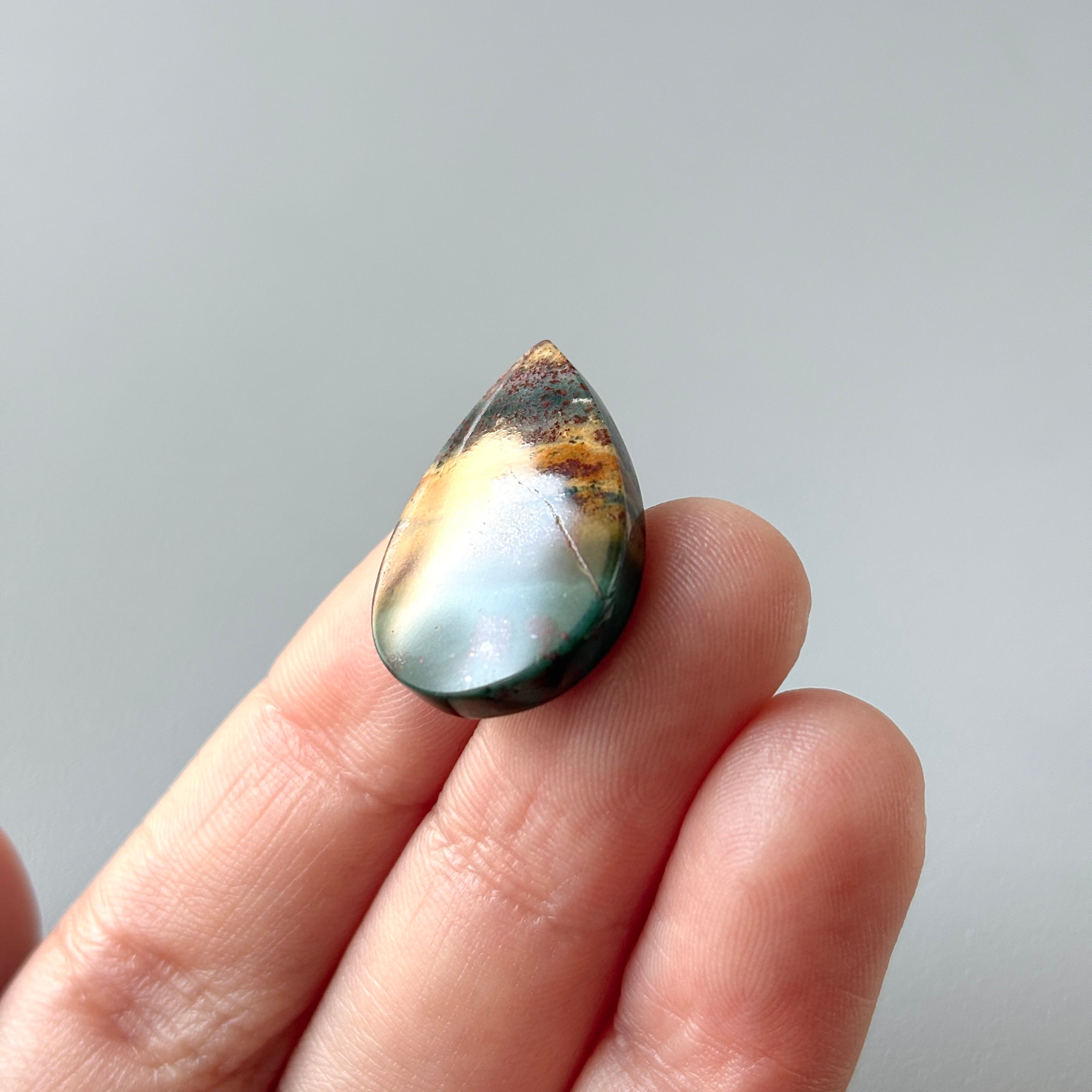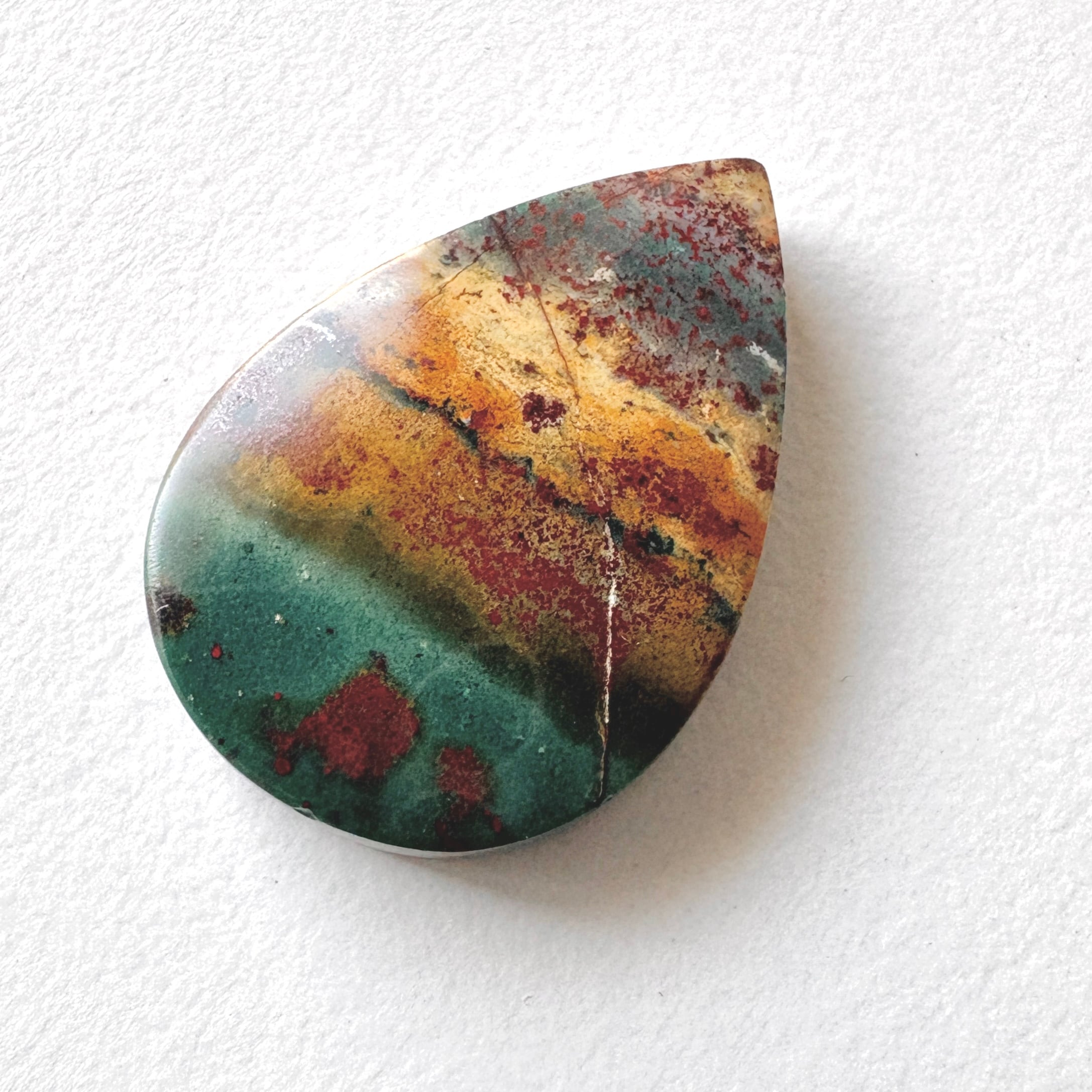 長い年月をかけてオパール化したペトリファイドウッド (植物の化石) です。風景画のようなものを選びました。