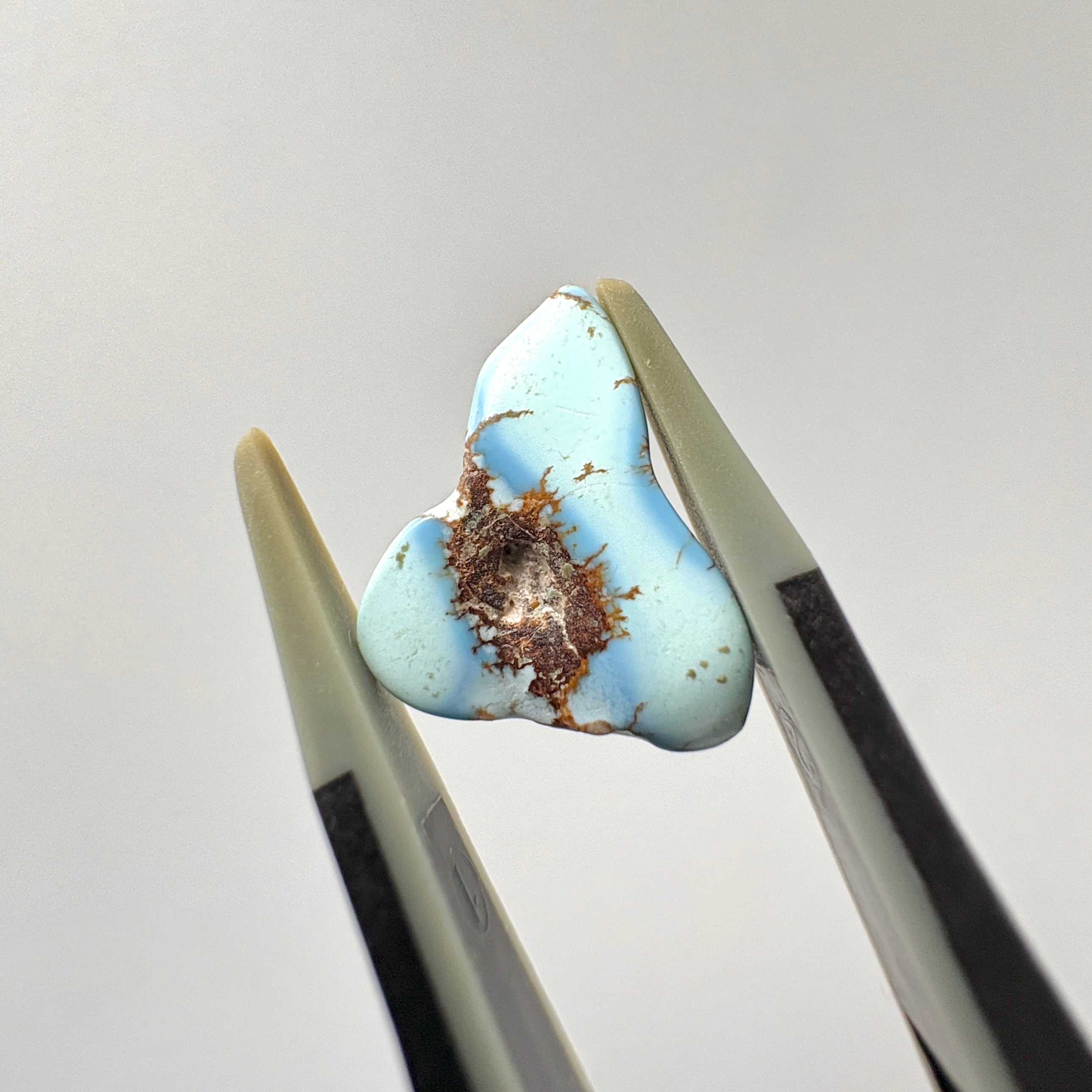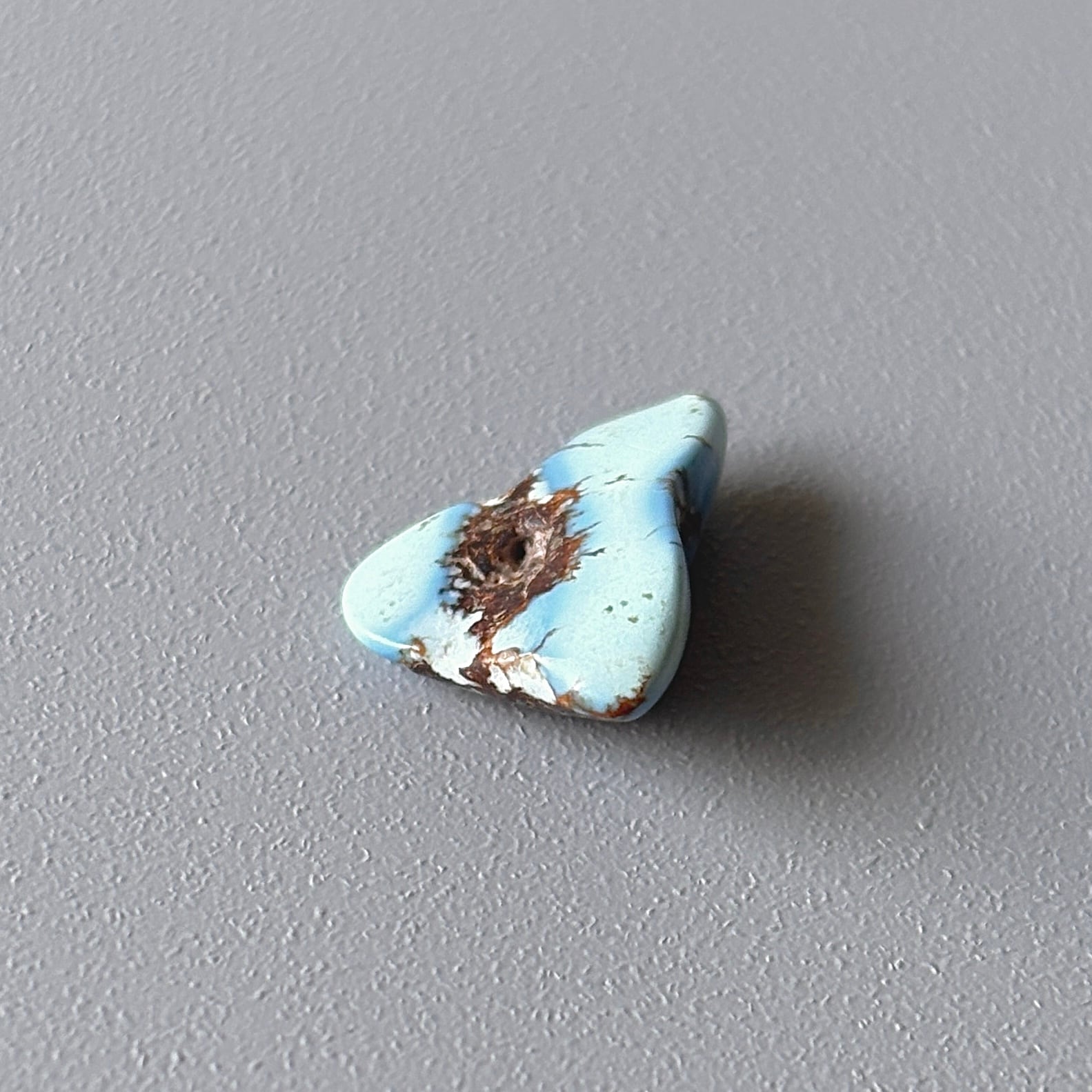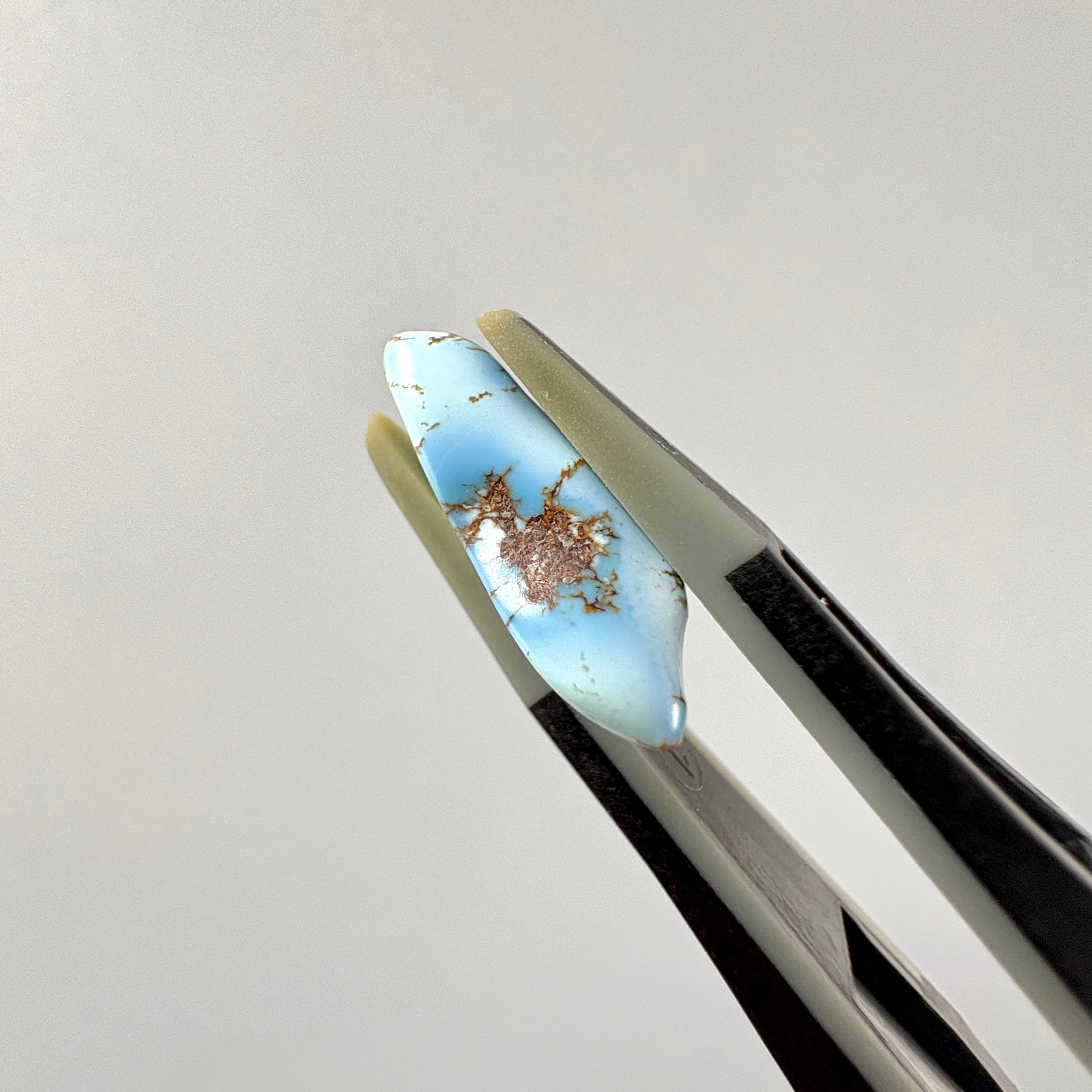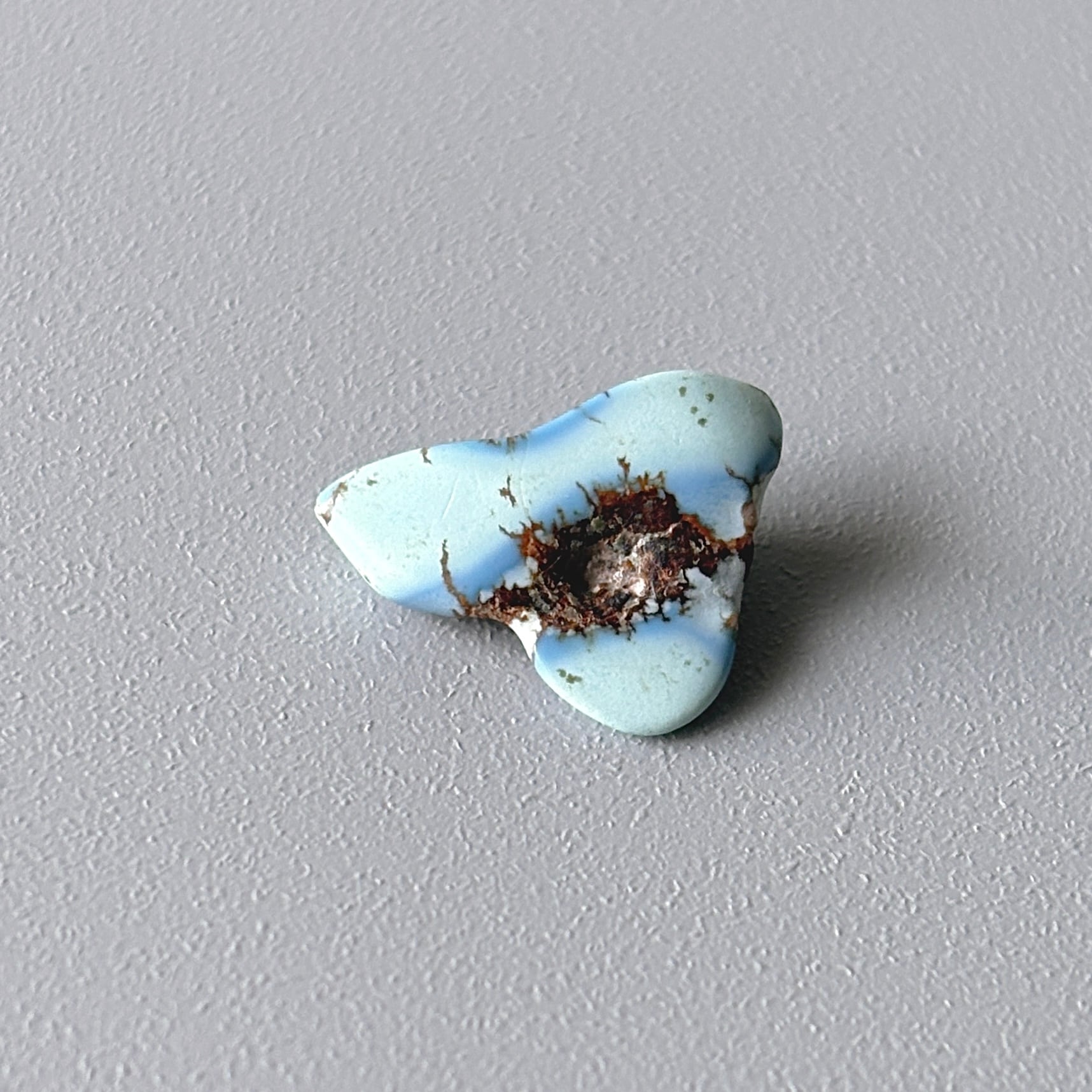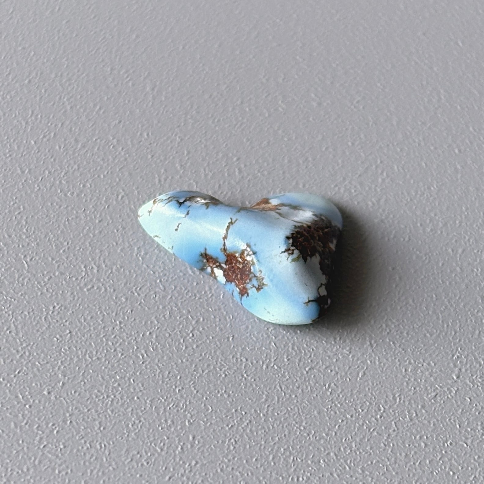 明るく優しいブルーやラベンダーブルーが特徴のゴールデンヒルターコイズ。やや赤みのある母岩がその繊細さを引き立てます。